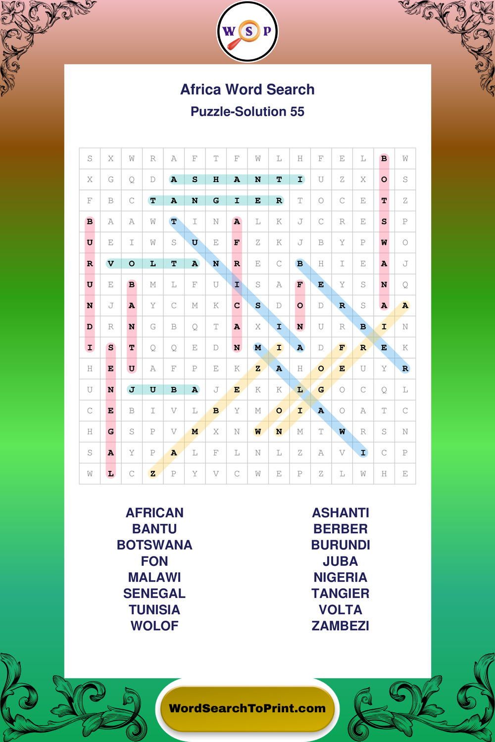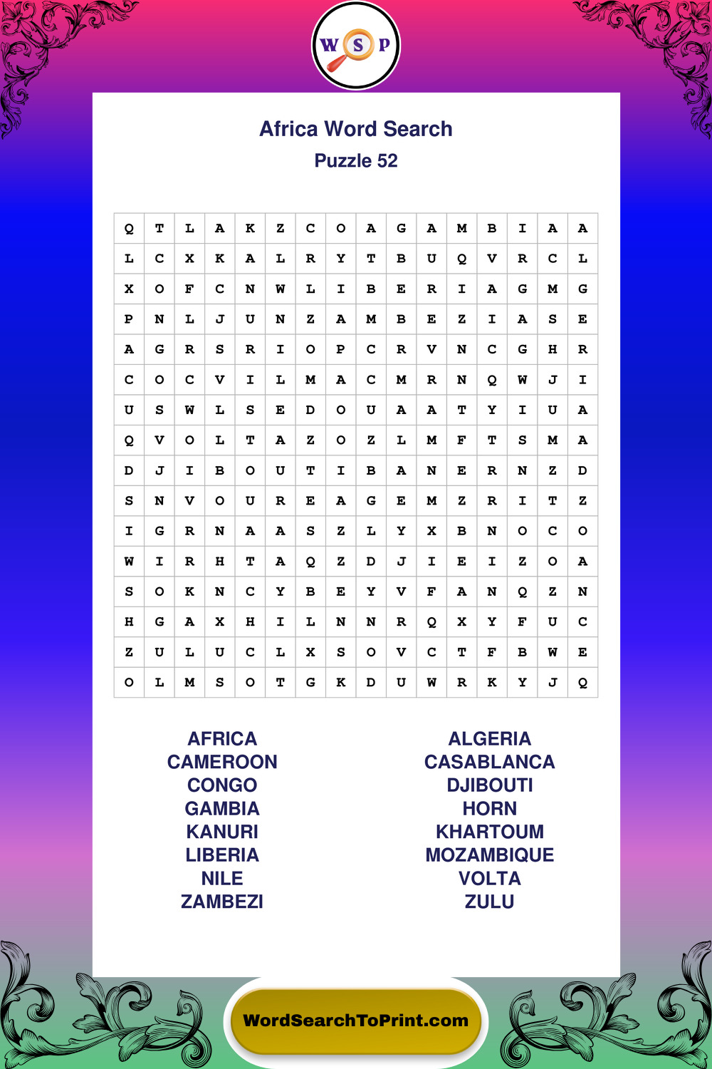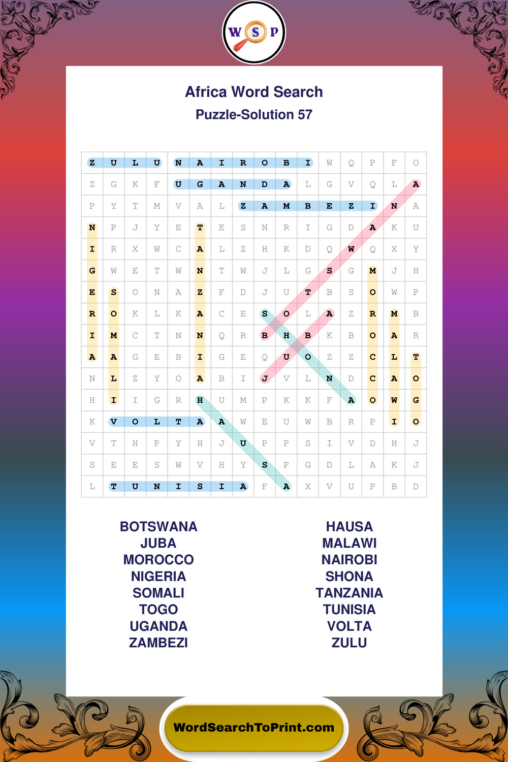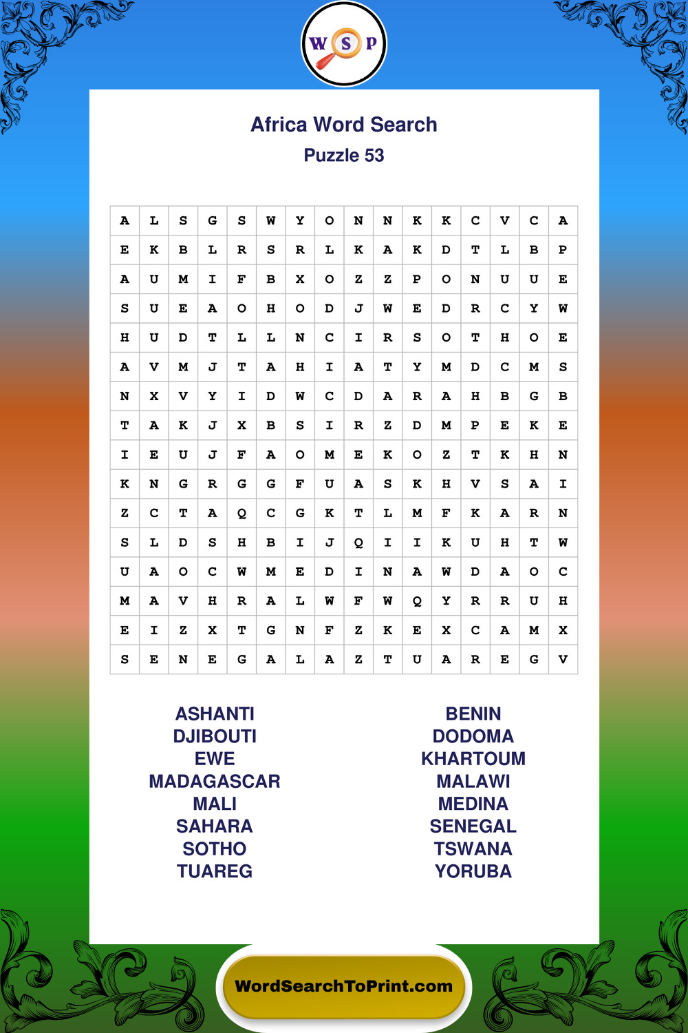 Printable Africa Wordsearch Puzzles