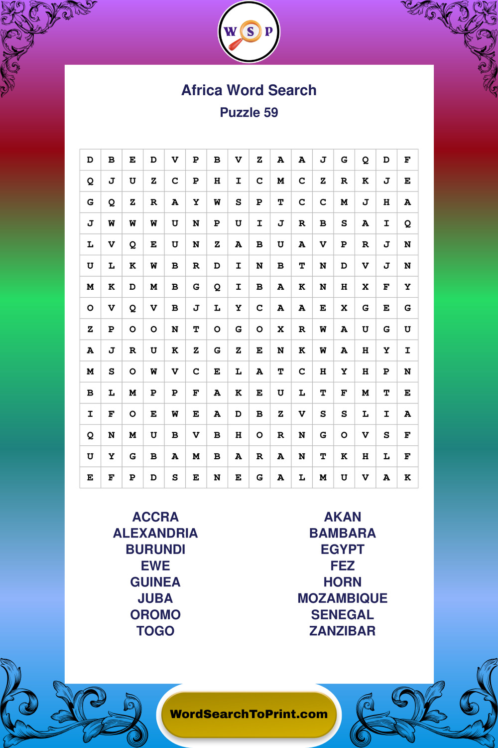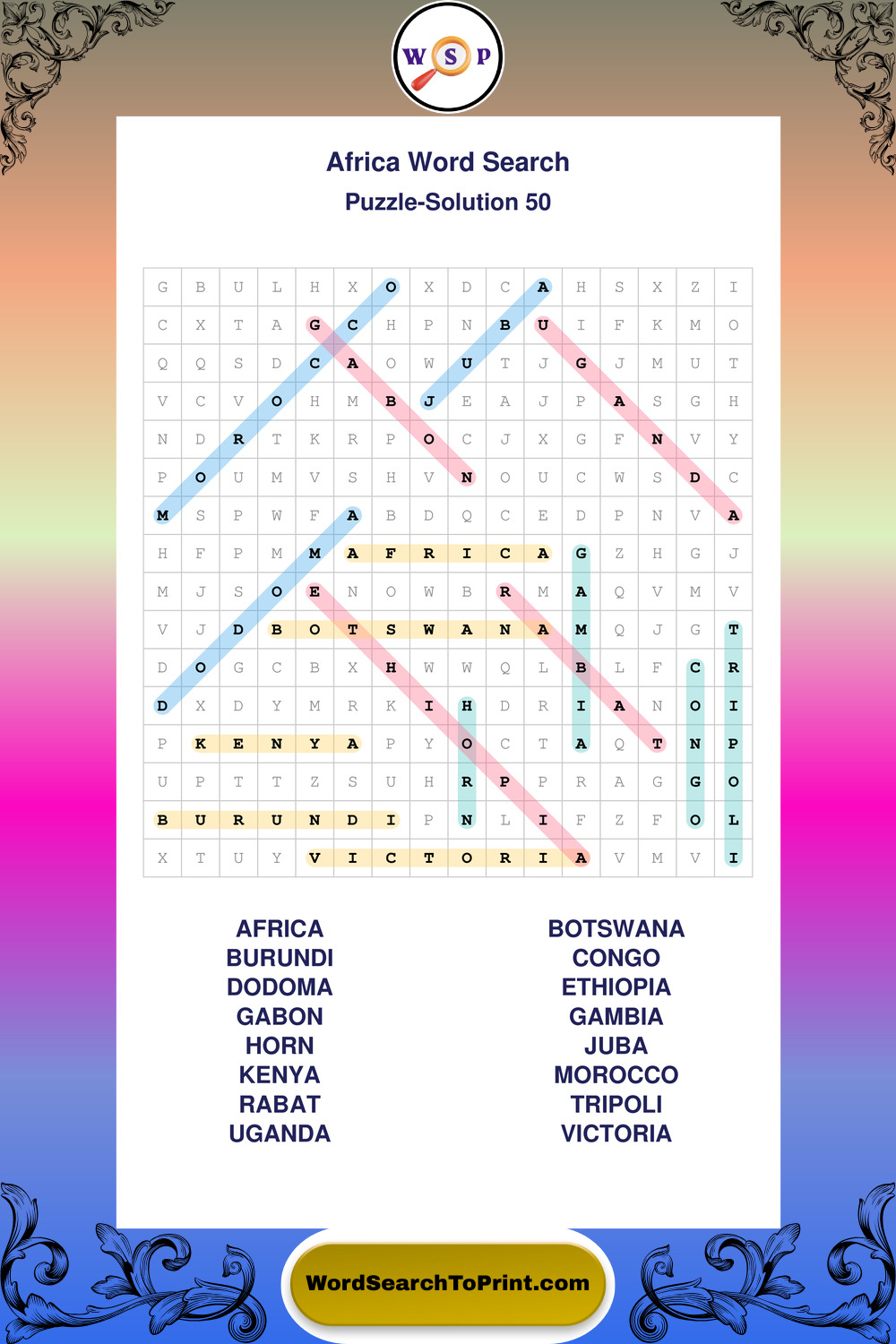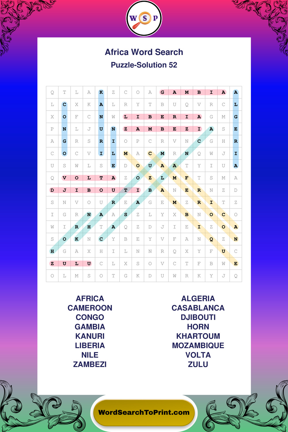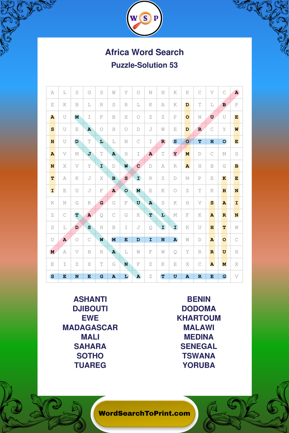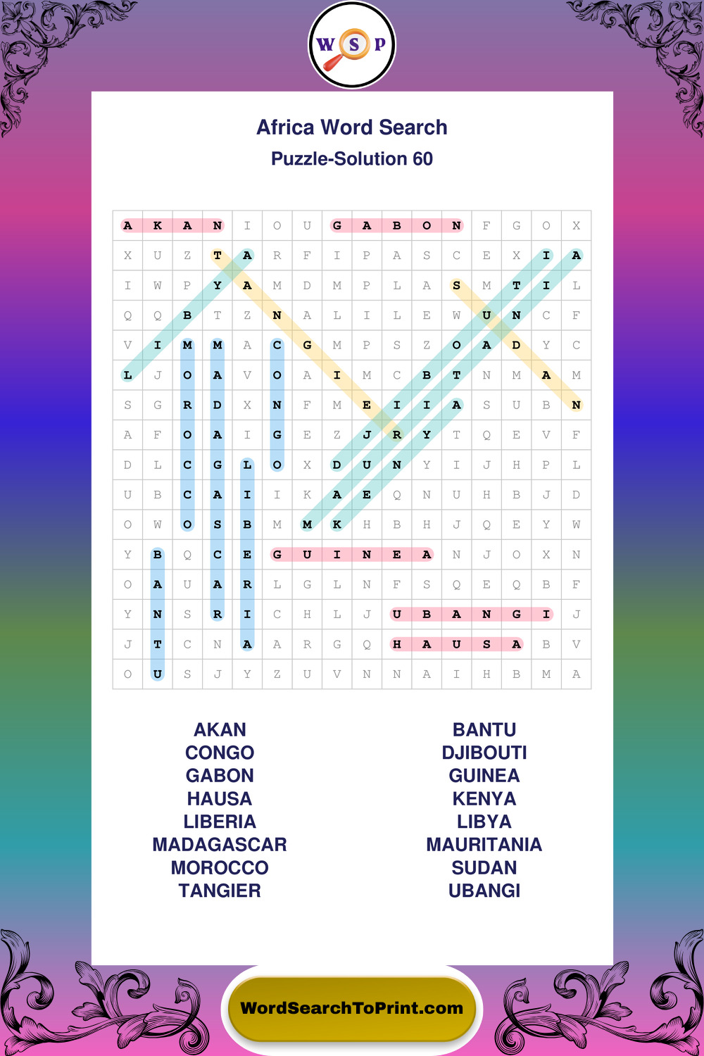 Printable Africa Wordsearch Puzzles