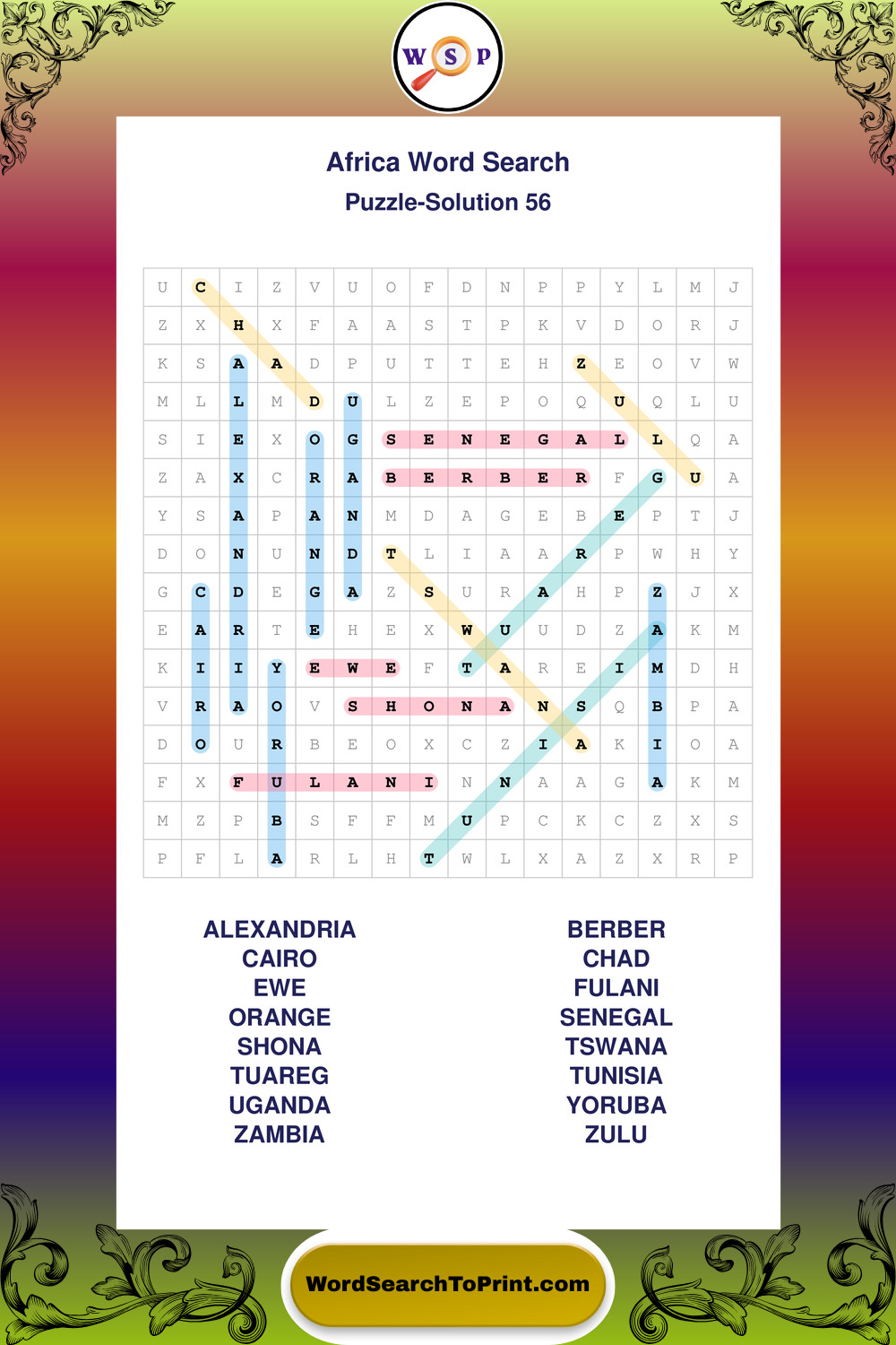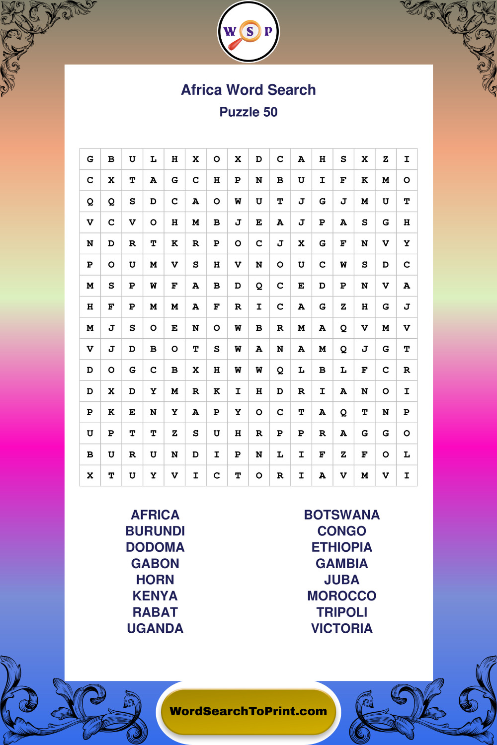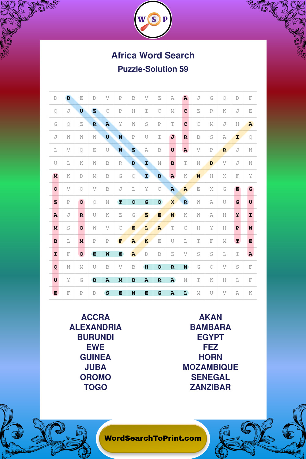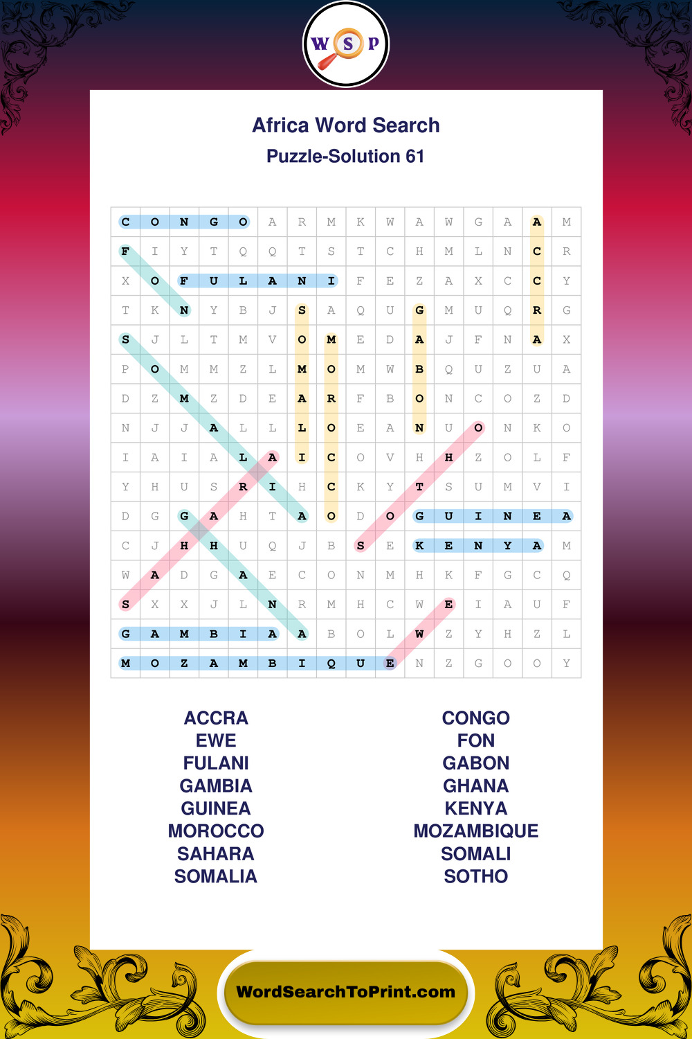 Printable Africa Wordsearch Puzzles