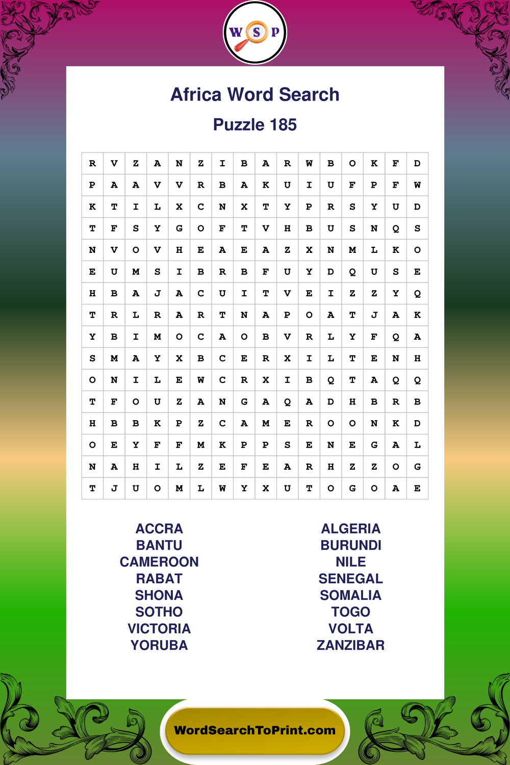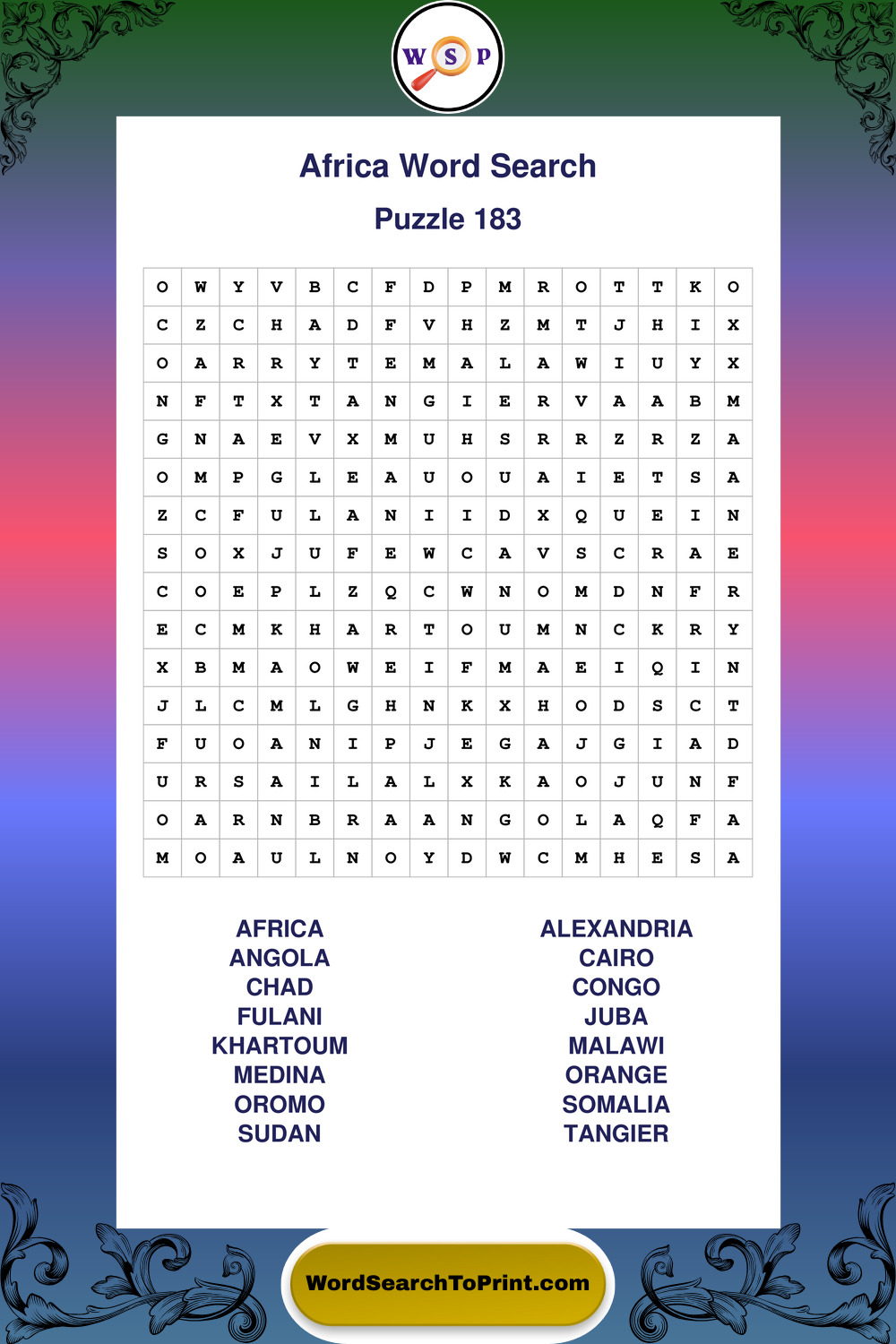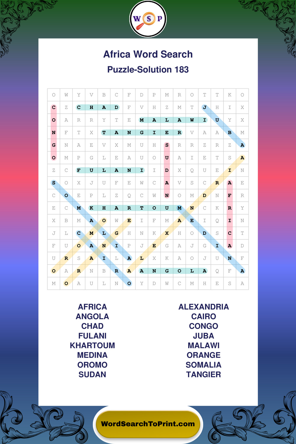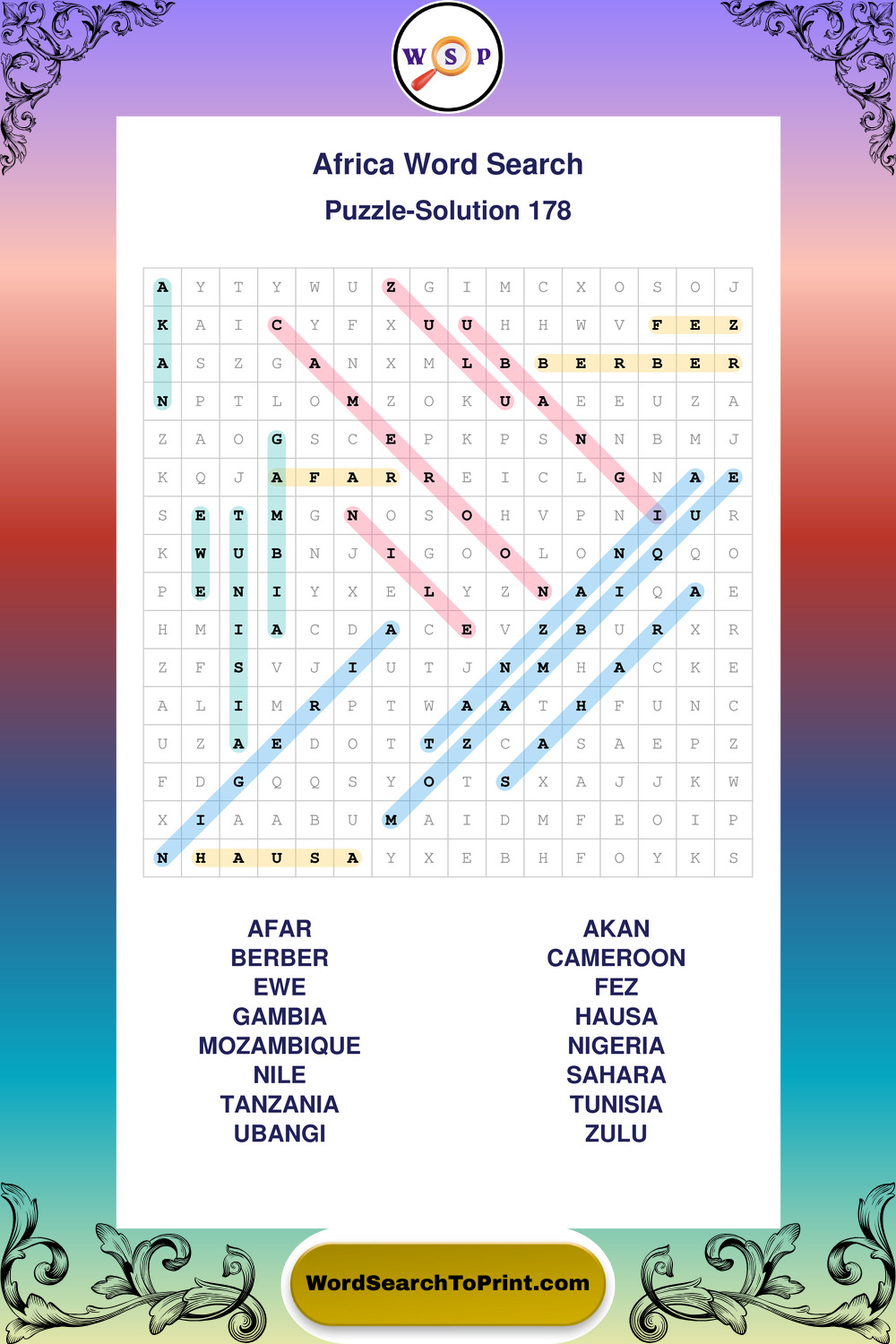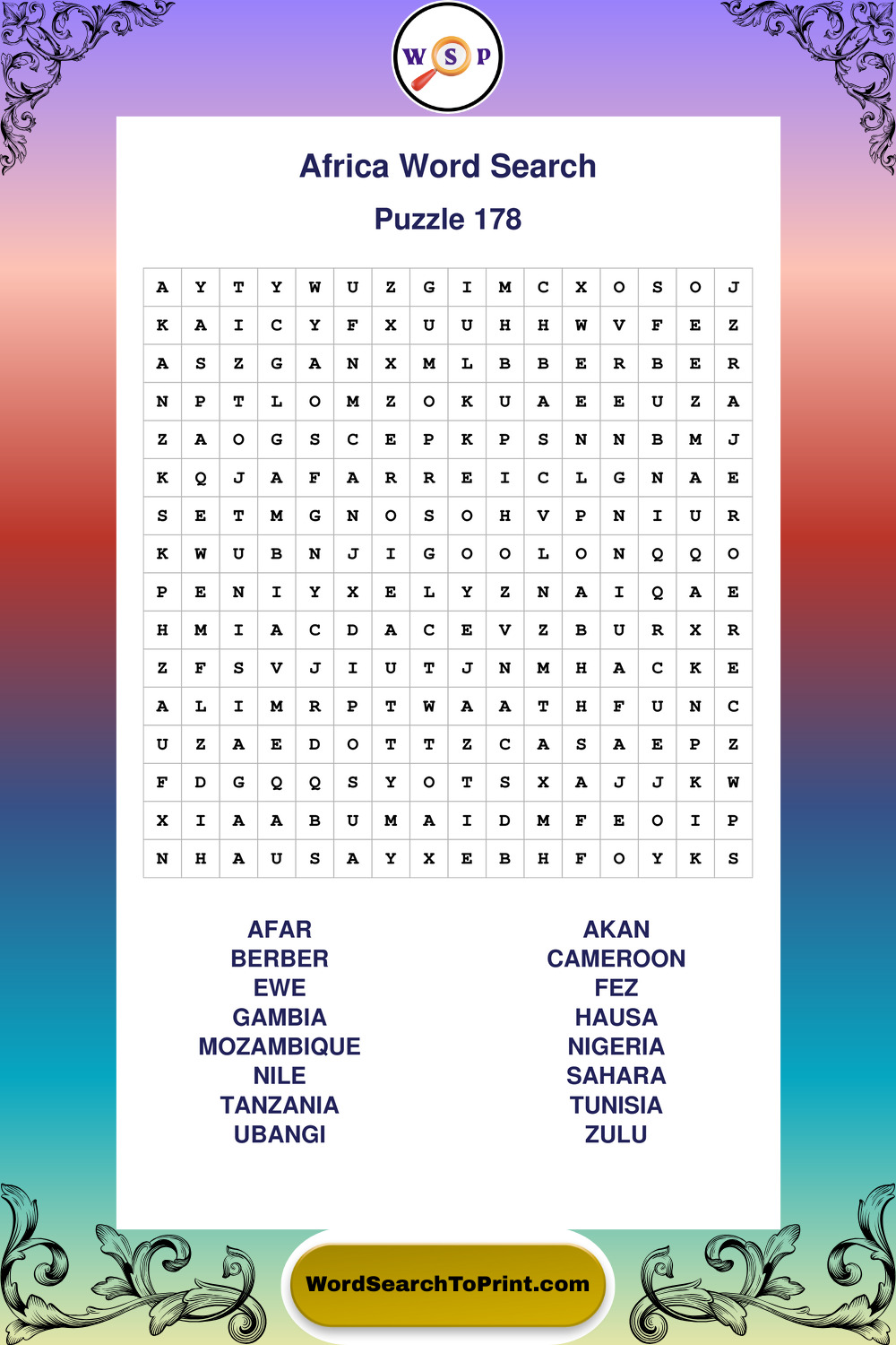 Printable Africa Wordsearch Puzzles