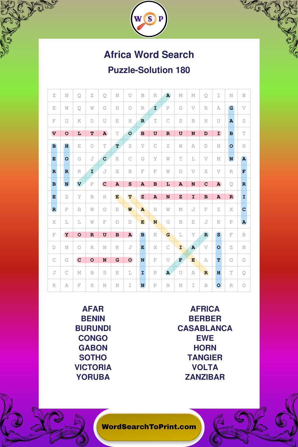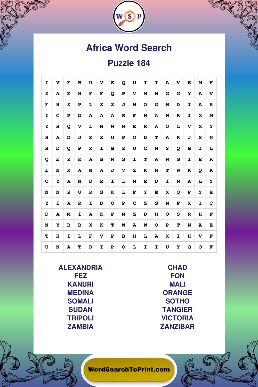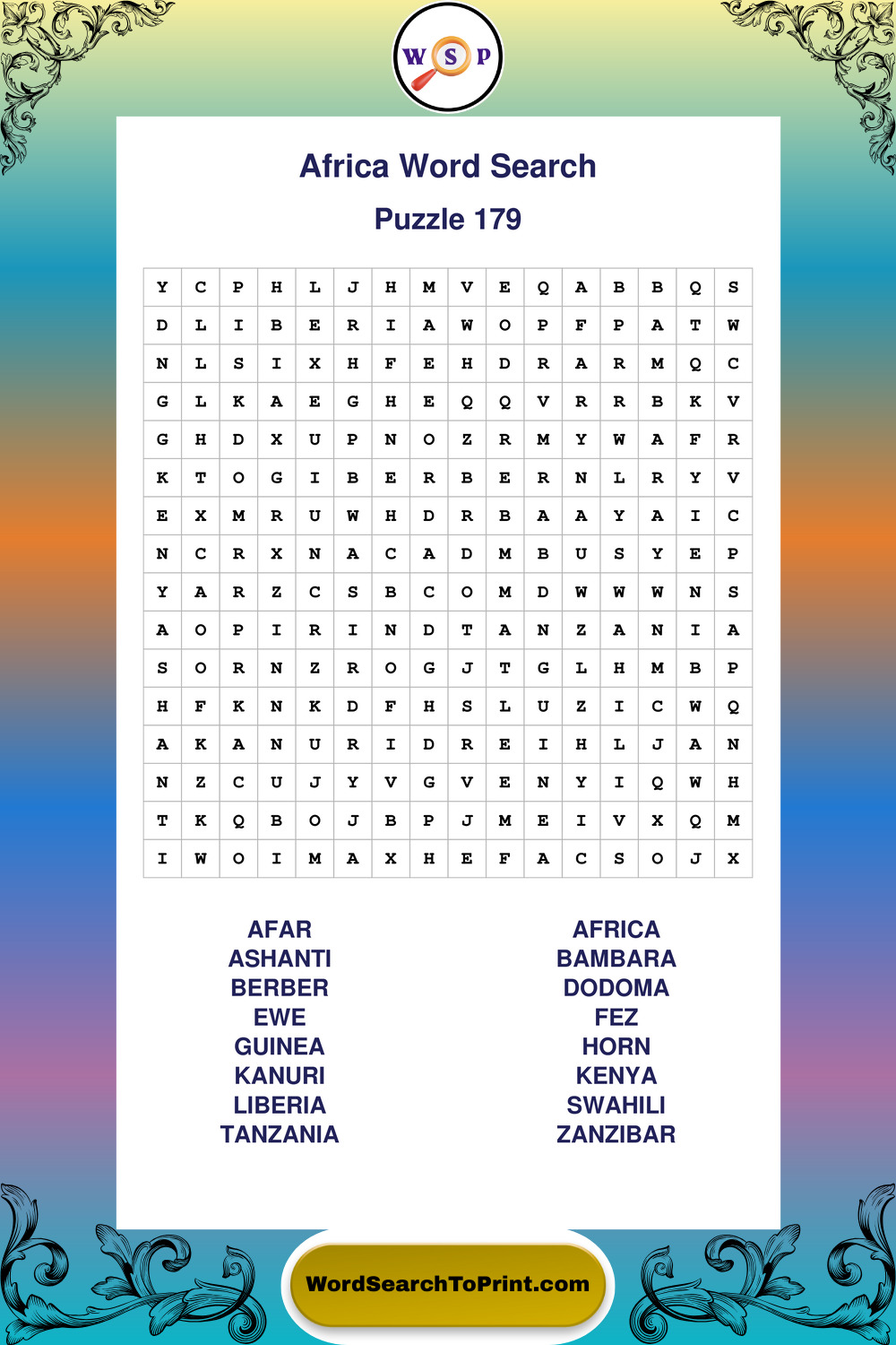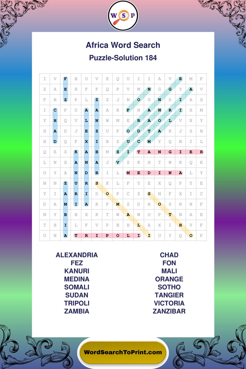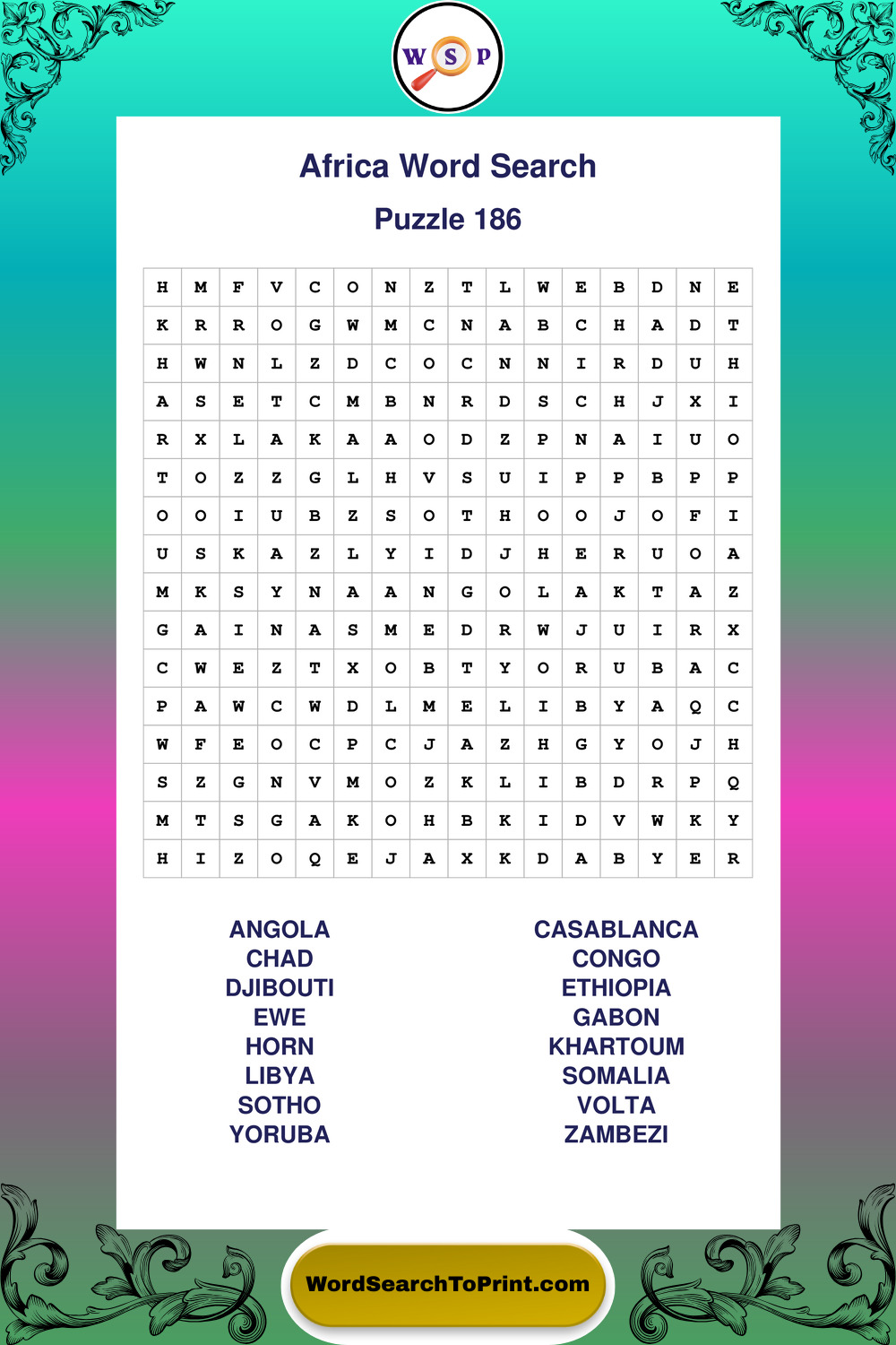 Printable Africa Wordsearch Puzzles