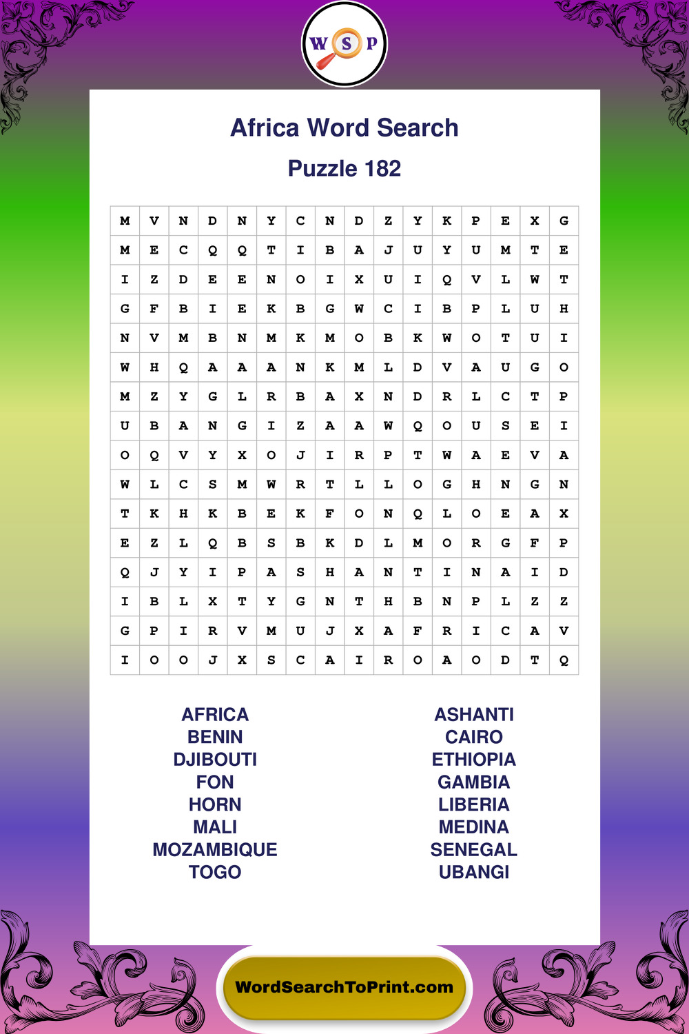Find easy-to-read large print Africa wordsearches designed for peaceful focus and simple, enjoyable solving.