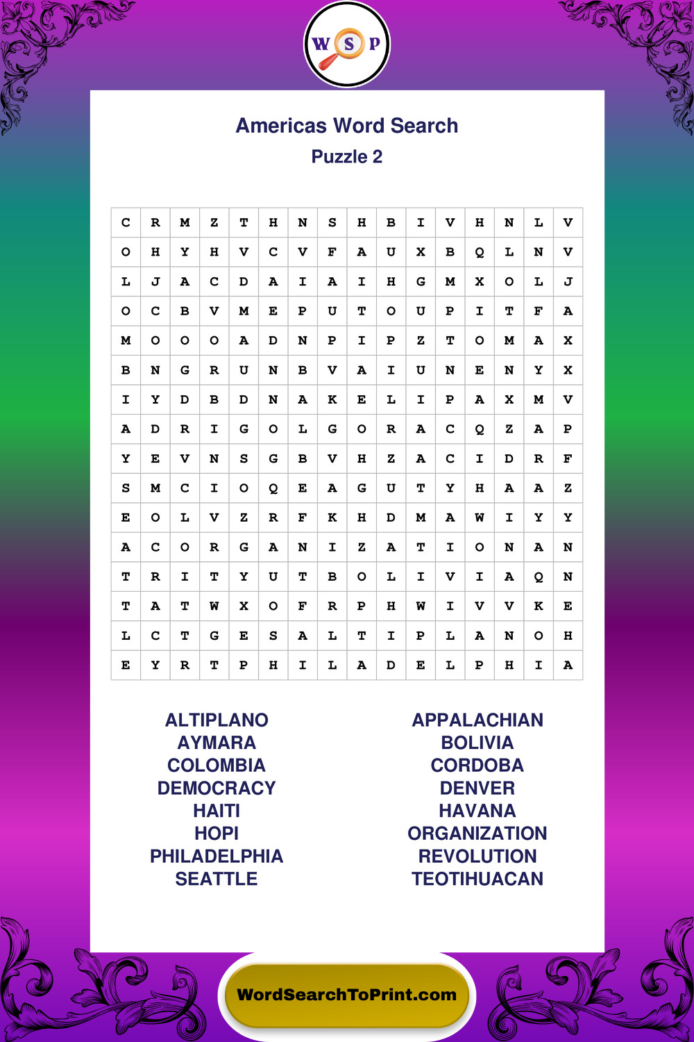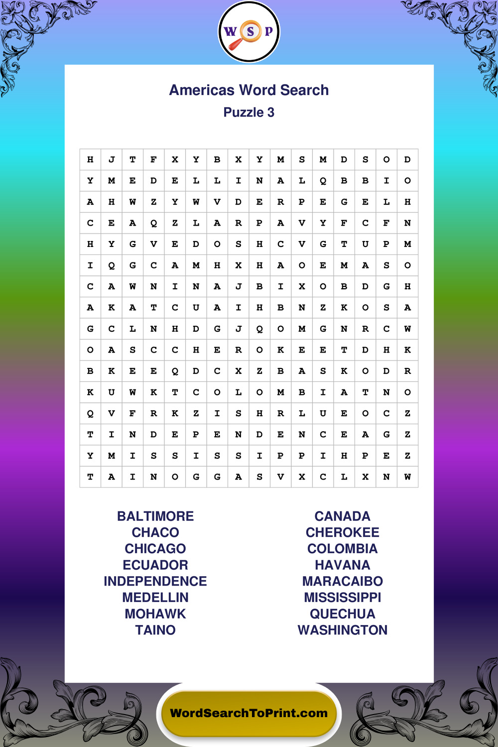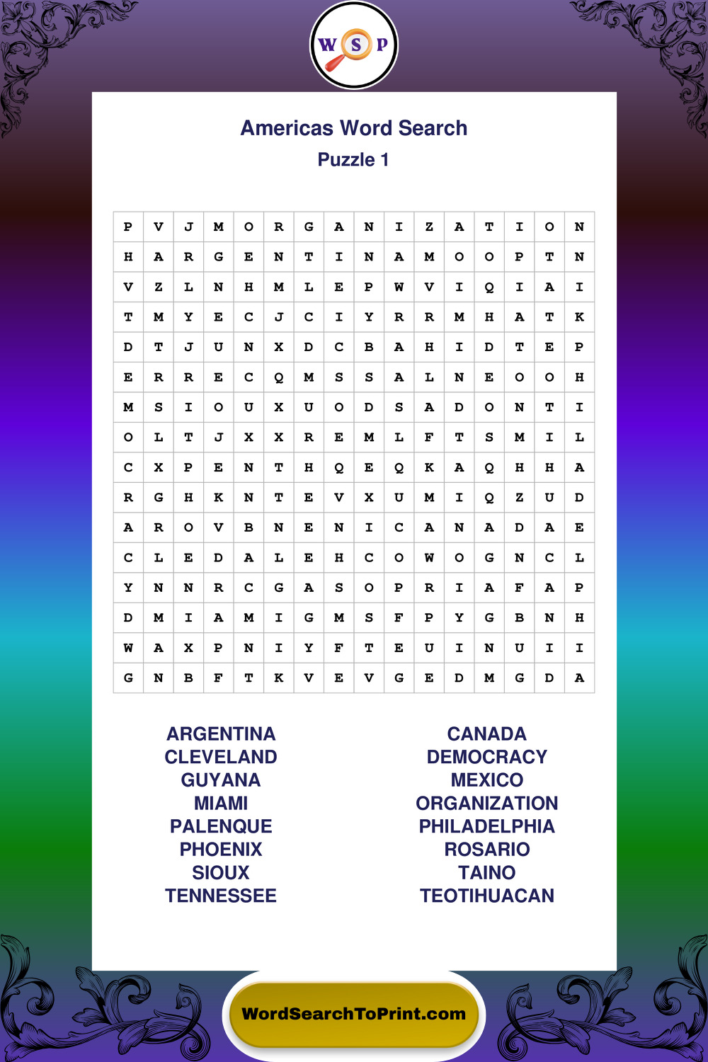 Printable Americas Wordsearch Puzzles