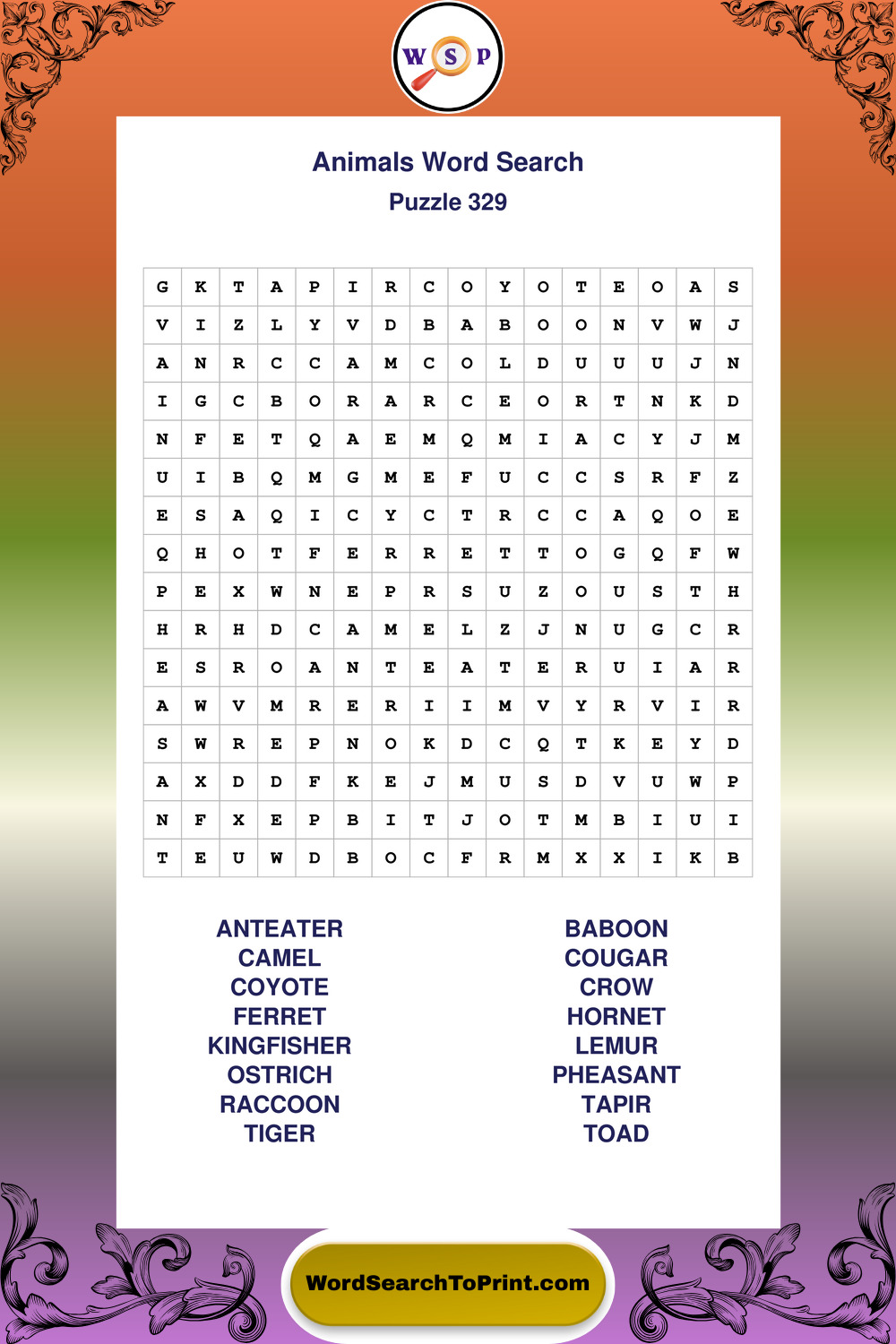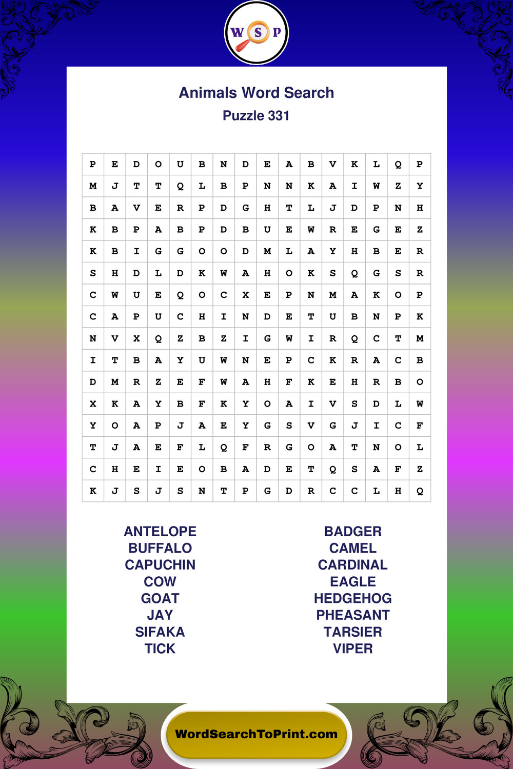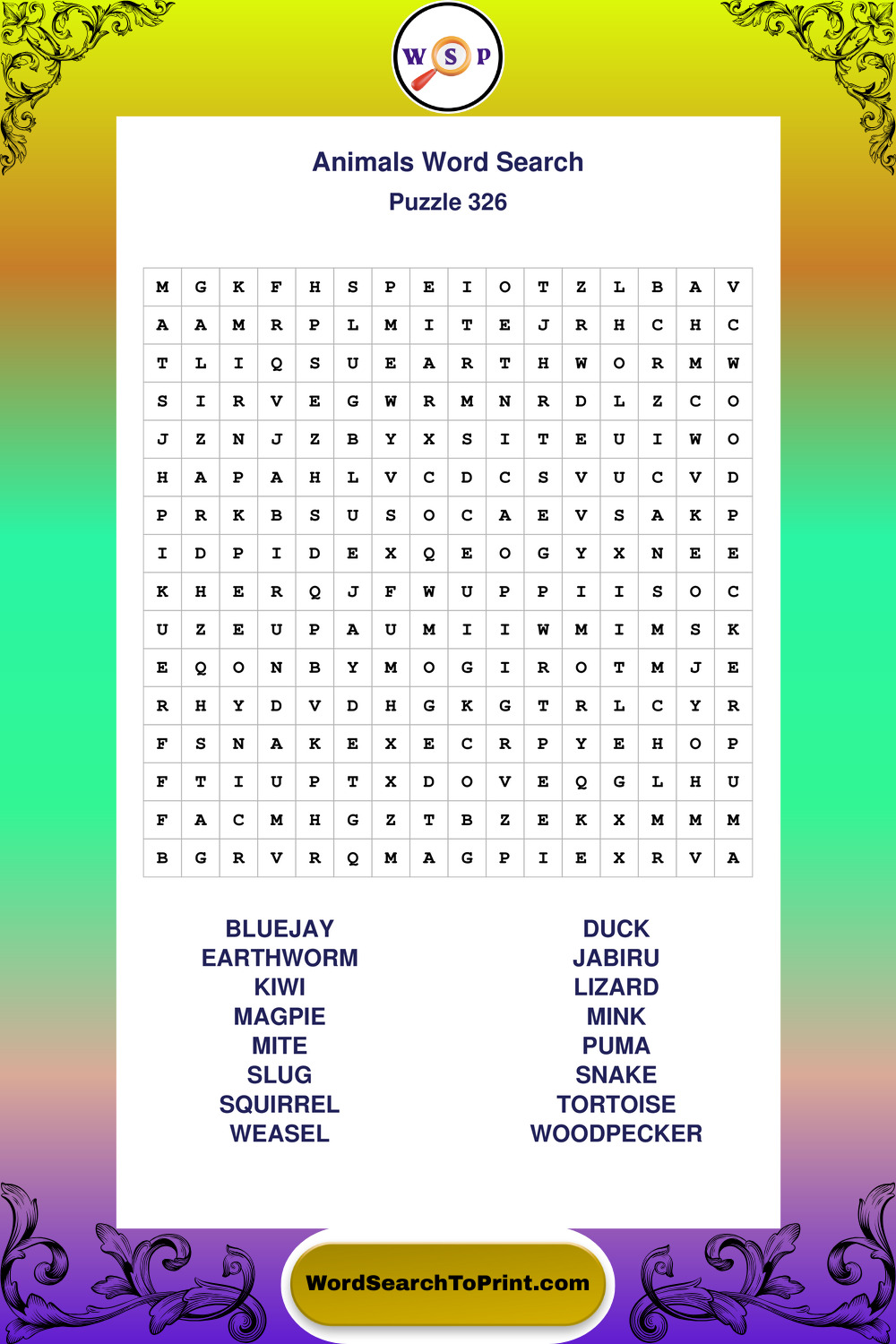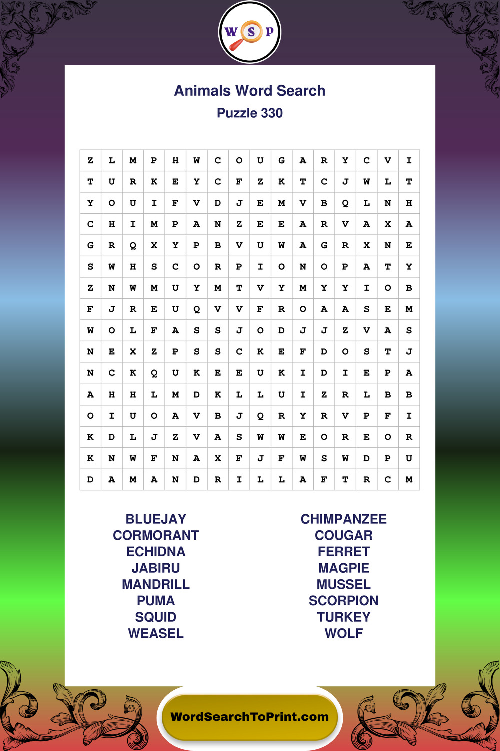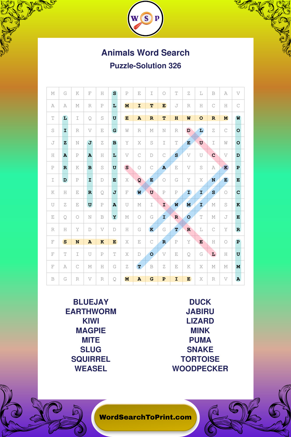 Who Are These Animals Word Search Puzzles For?