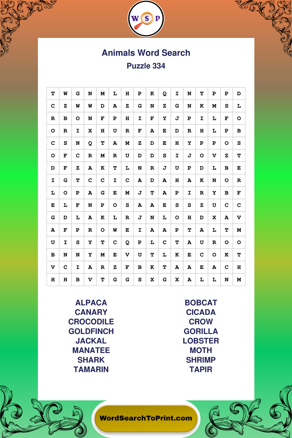 Printable Animals Wordsearch Puzzles