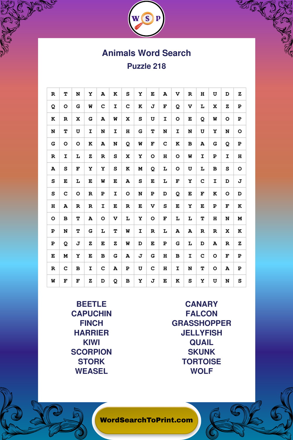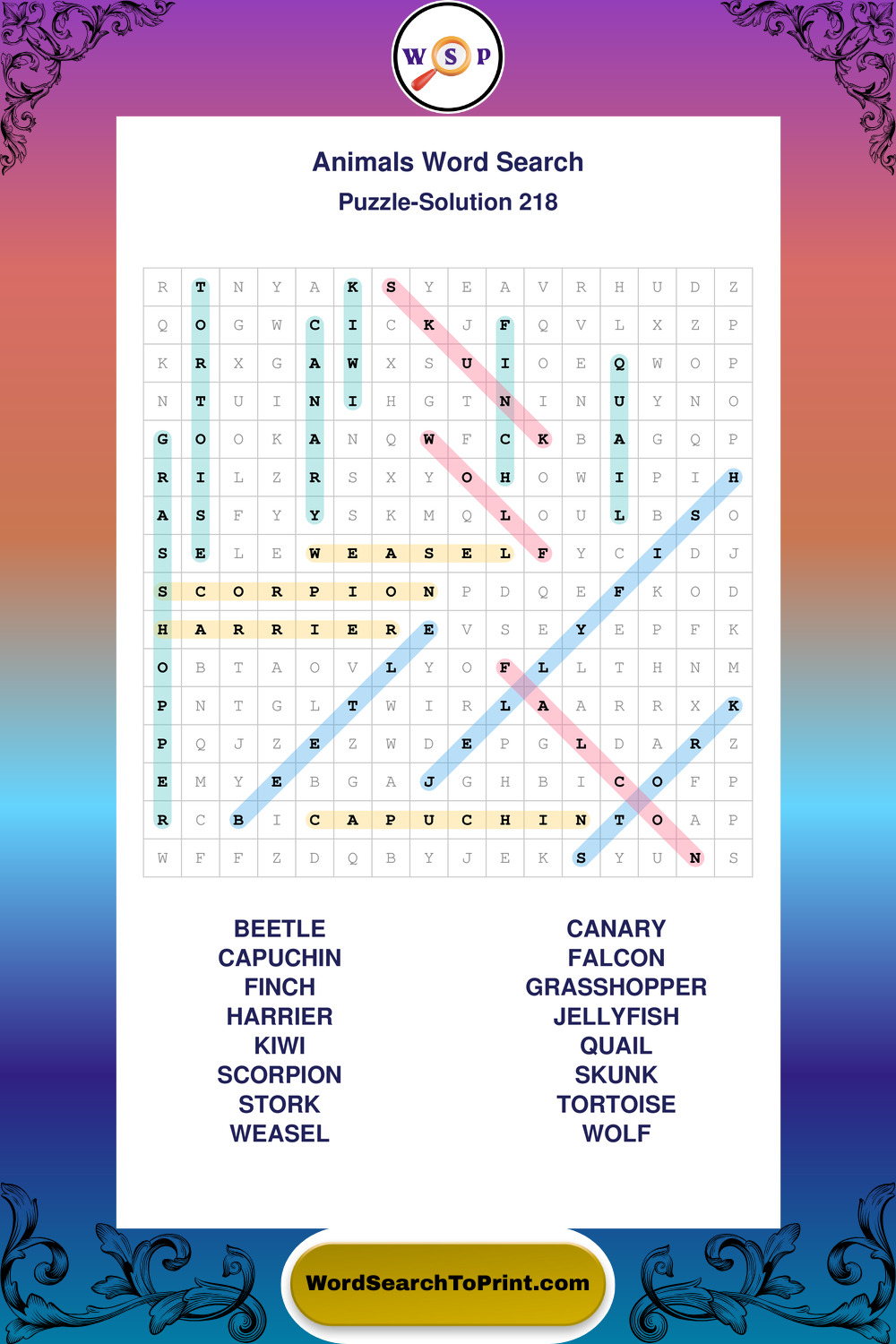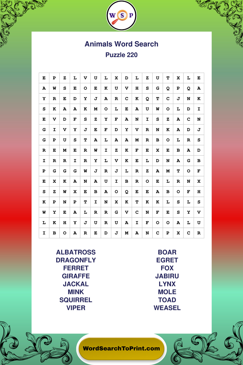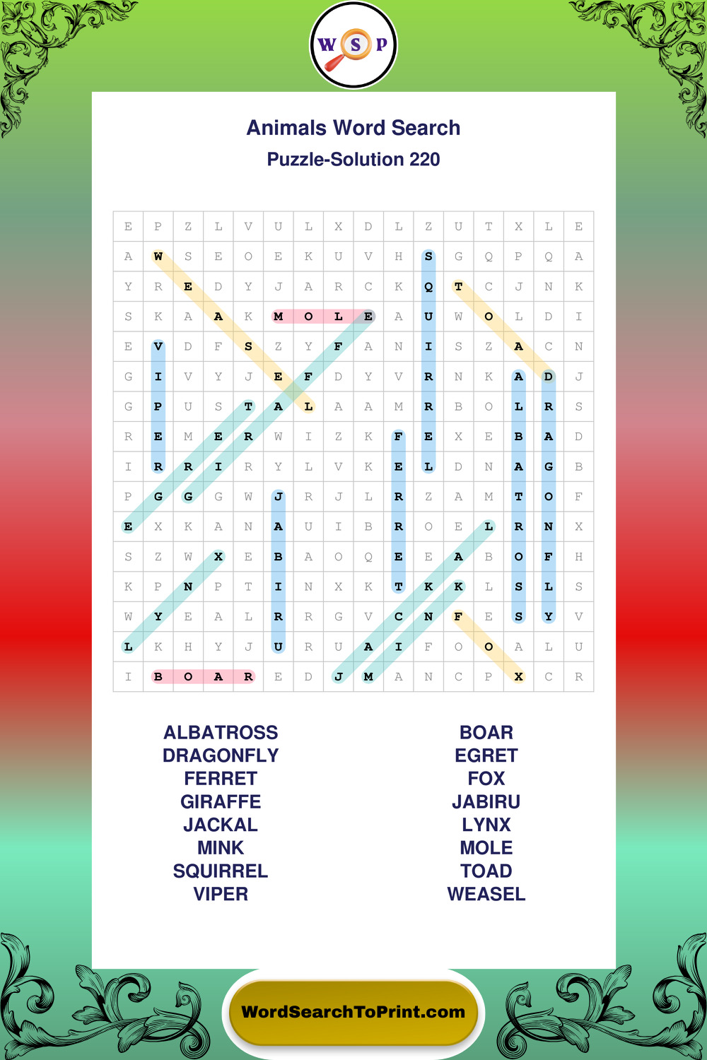 Who Are These Animals Word Search Puzzles For?