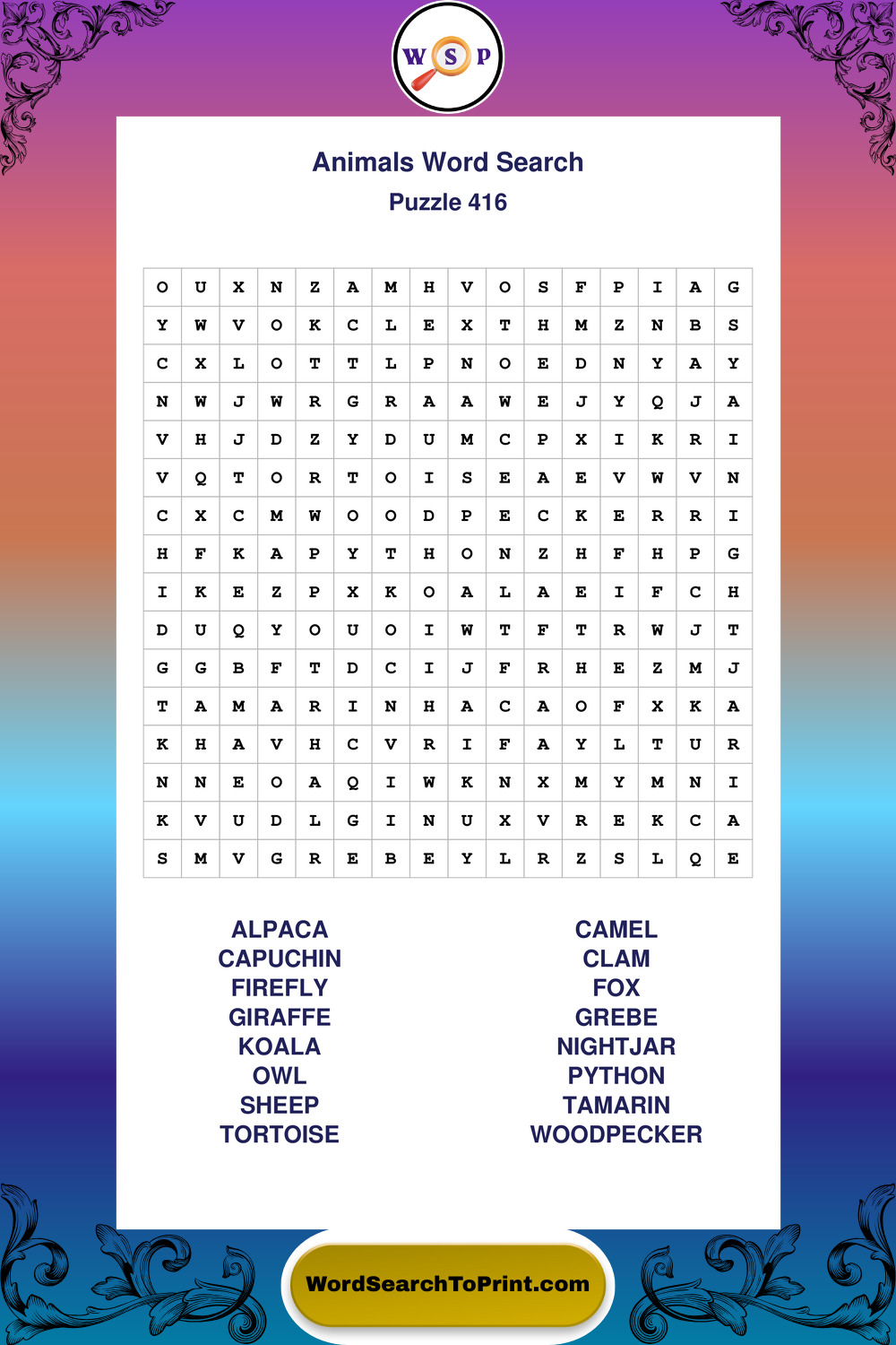 These printable large print Animals wordsearches offer a comfortable way to stay mentally active without pressure.