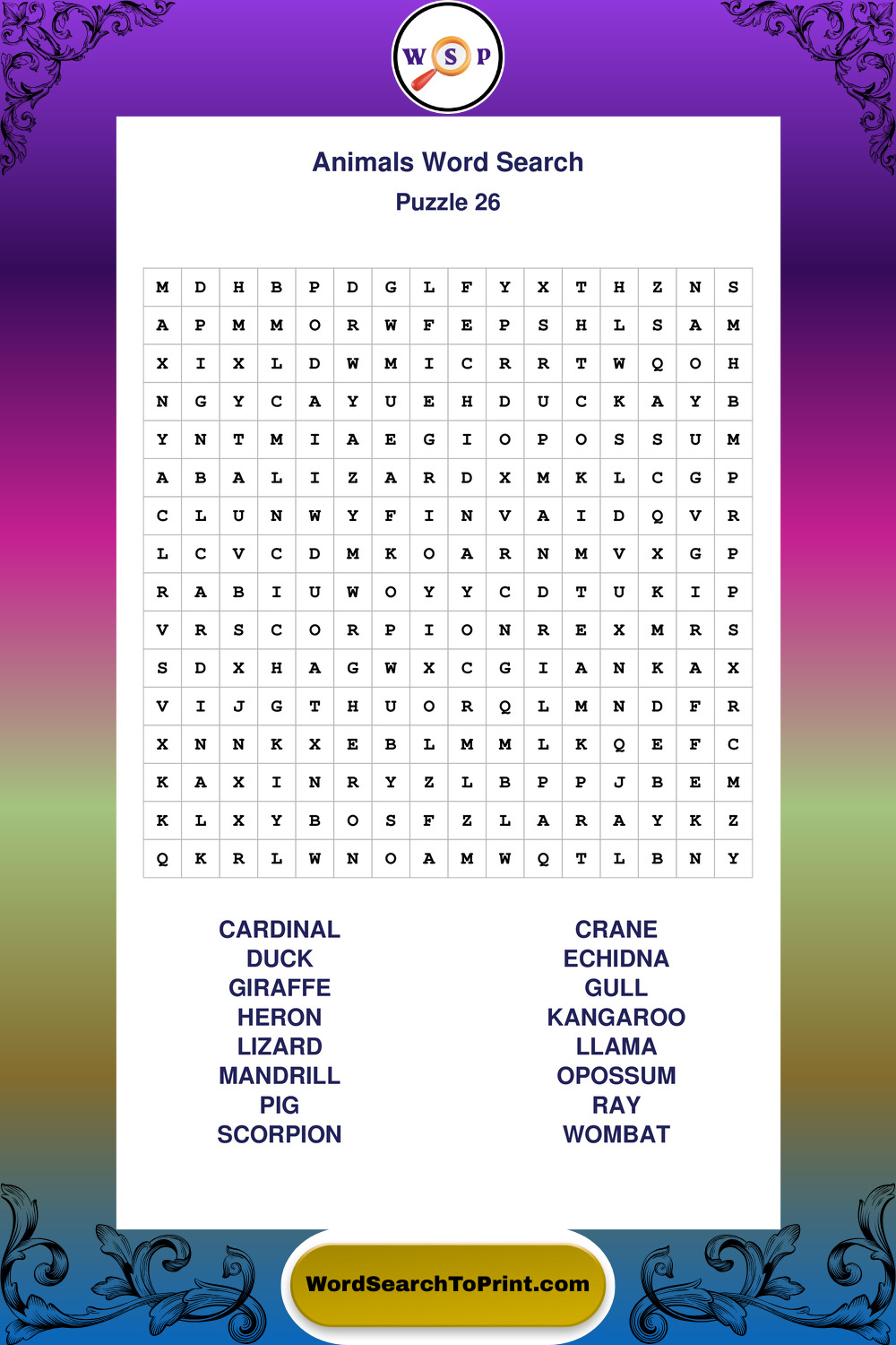 These printable large print Animals wordsearches offer a comfortable way to stay mentally active without pressure.