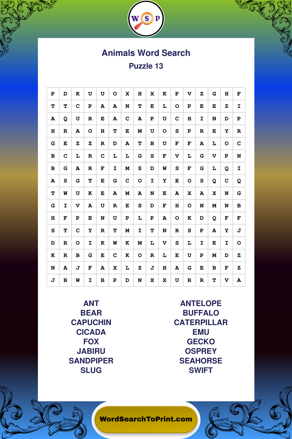 These printable large print Animals wordsearches offer a comfortable way to stay mentally active without pressure.