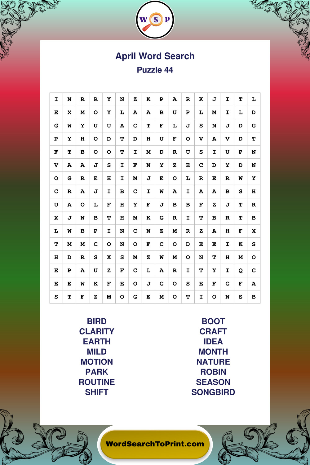 April Wordsearches