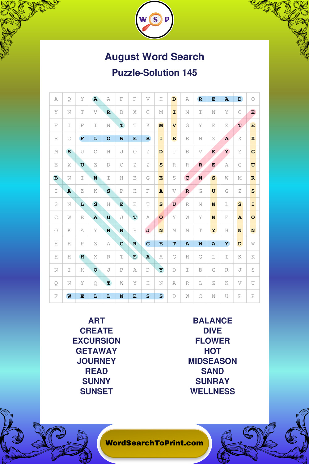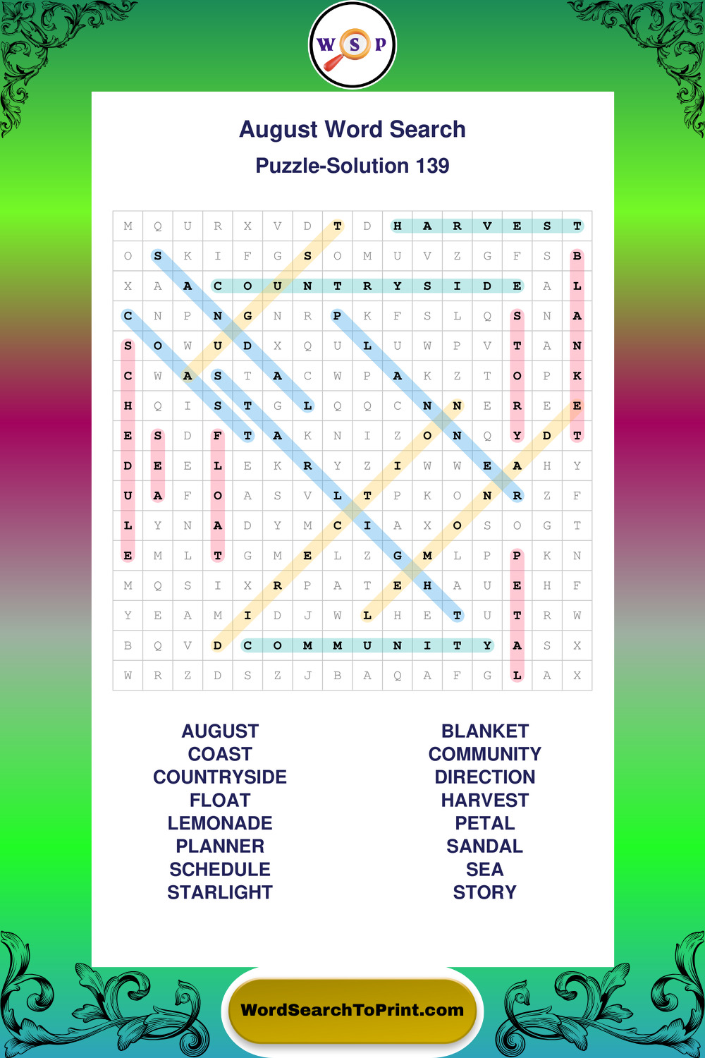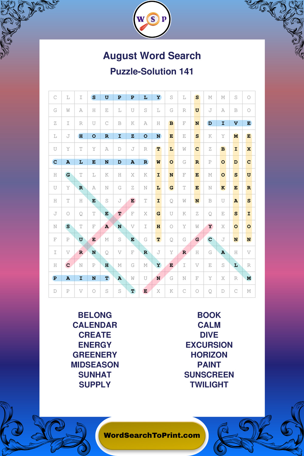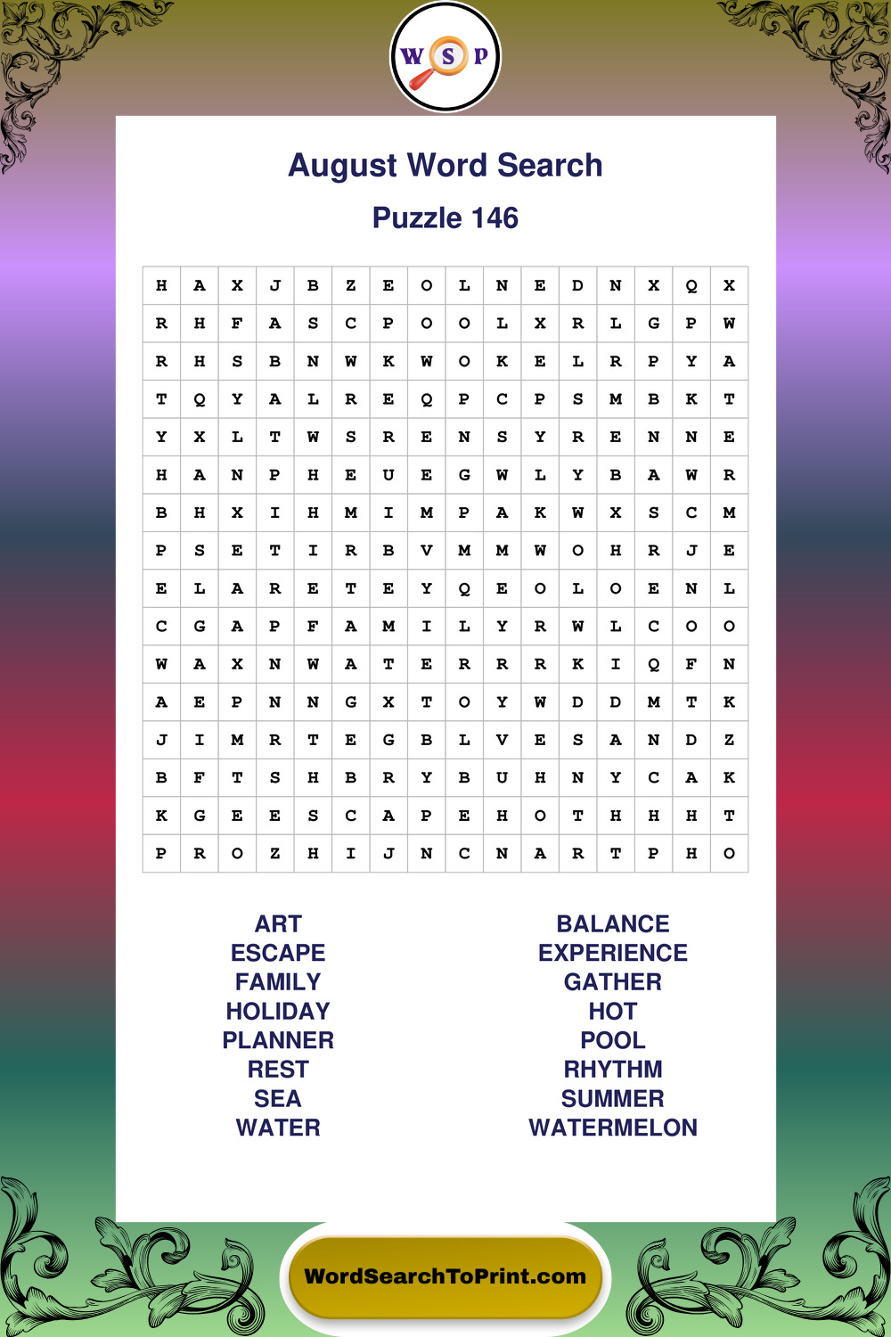 Printable August Wordsearch Puzzles