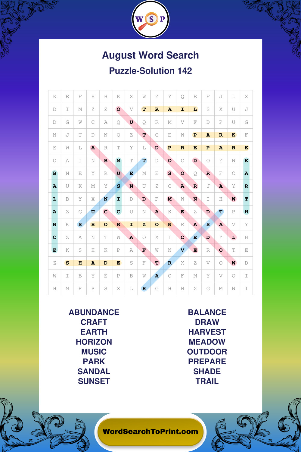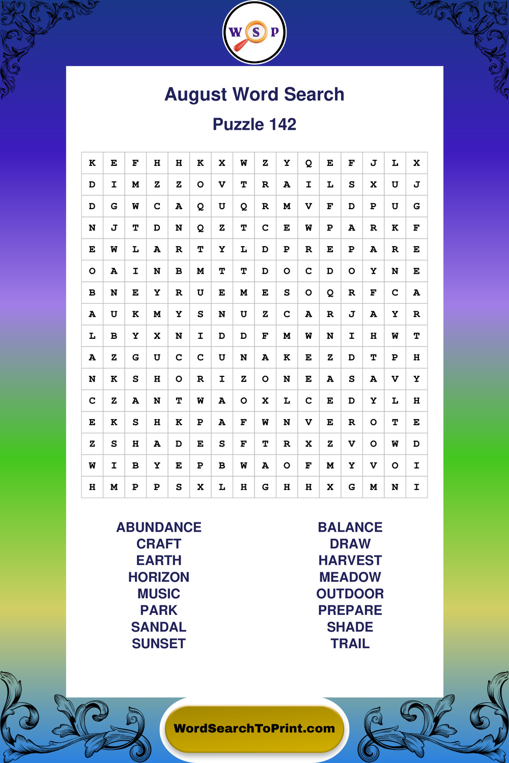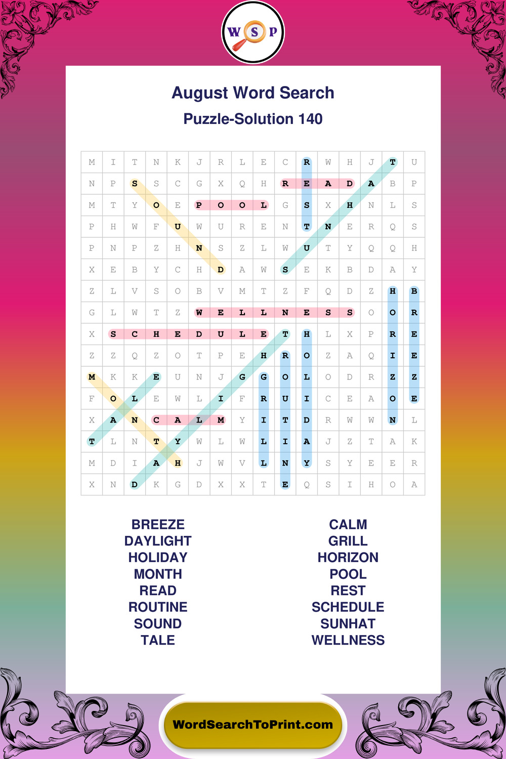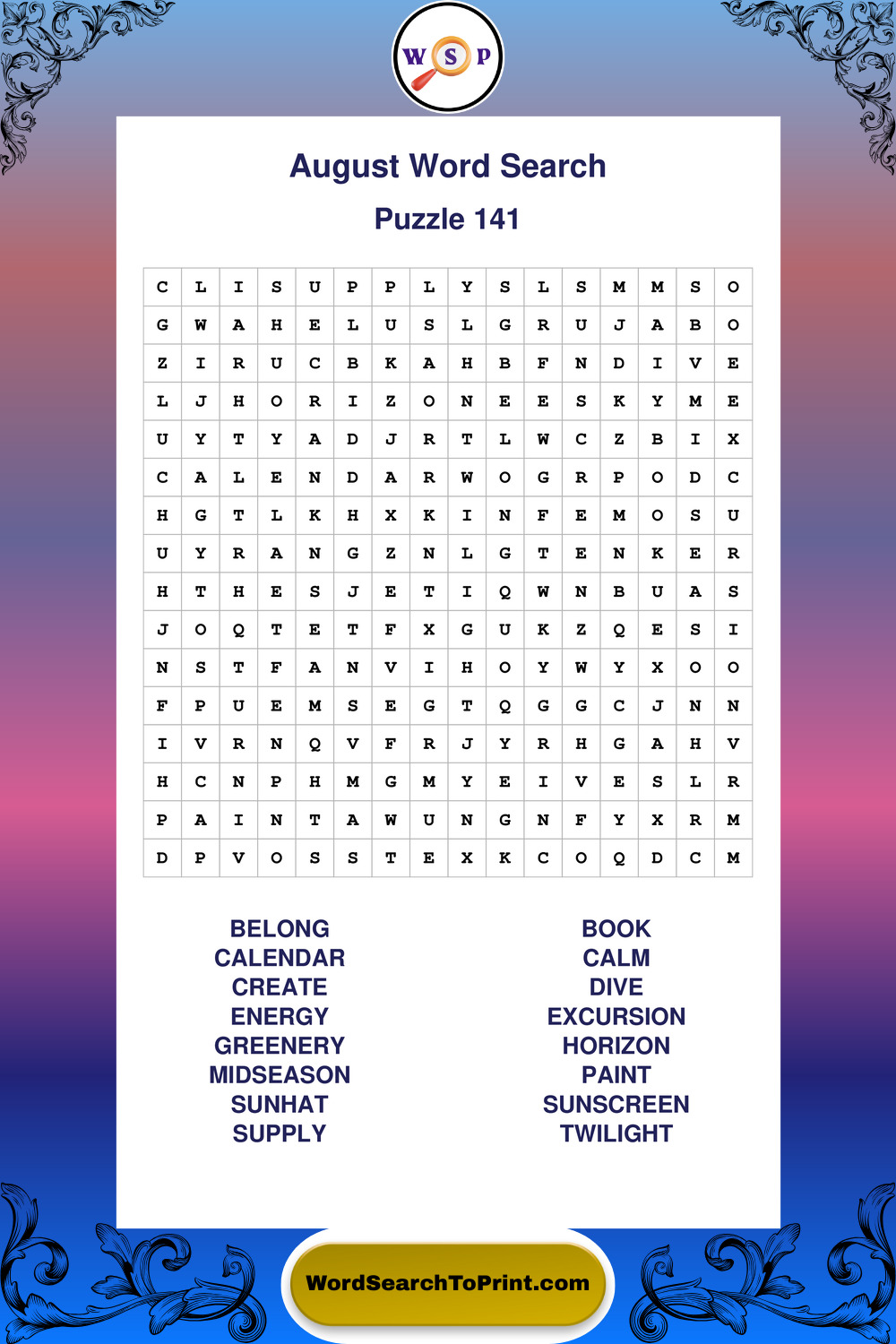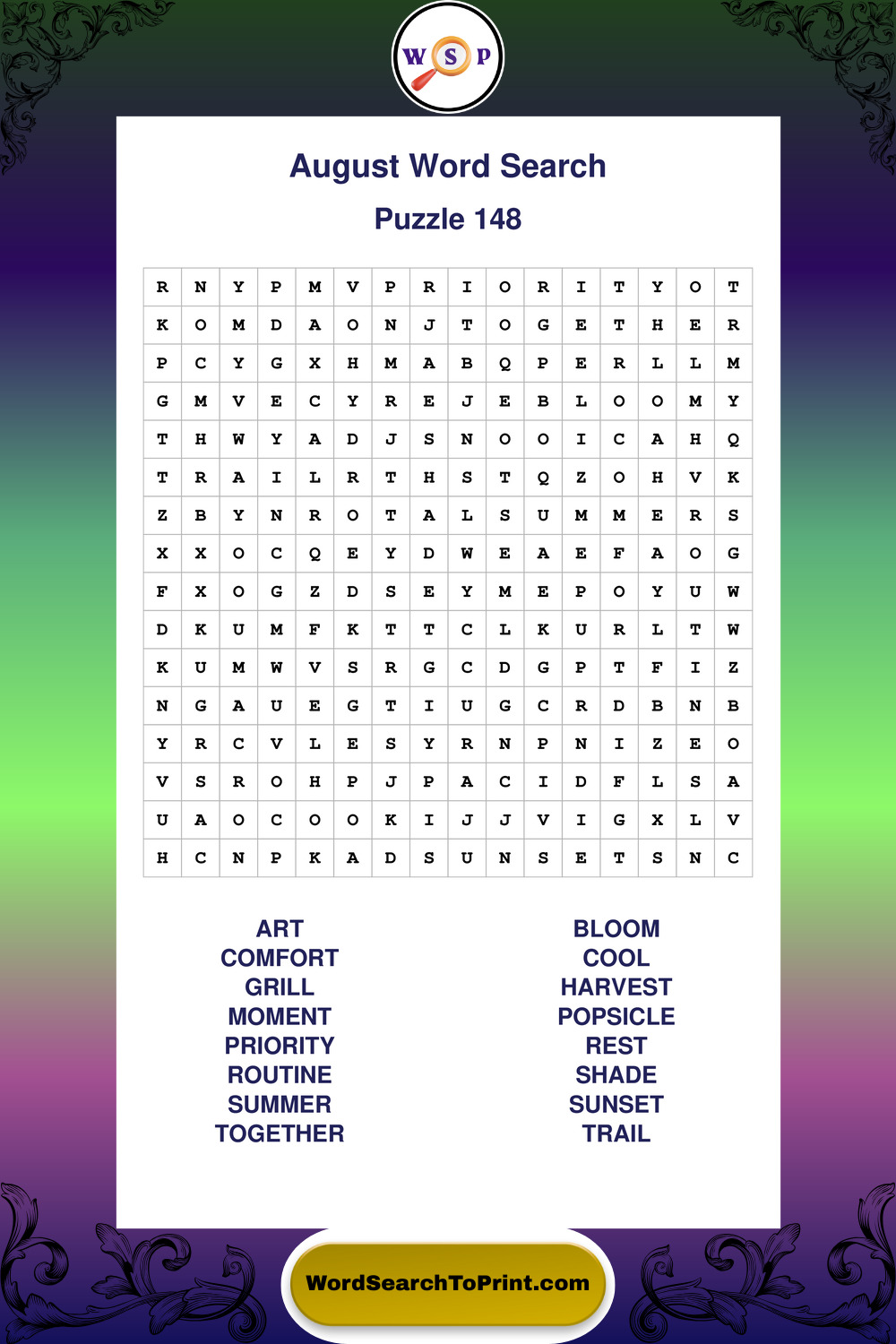 Printable August Wordsearch Puzzles