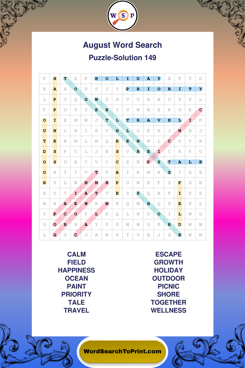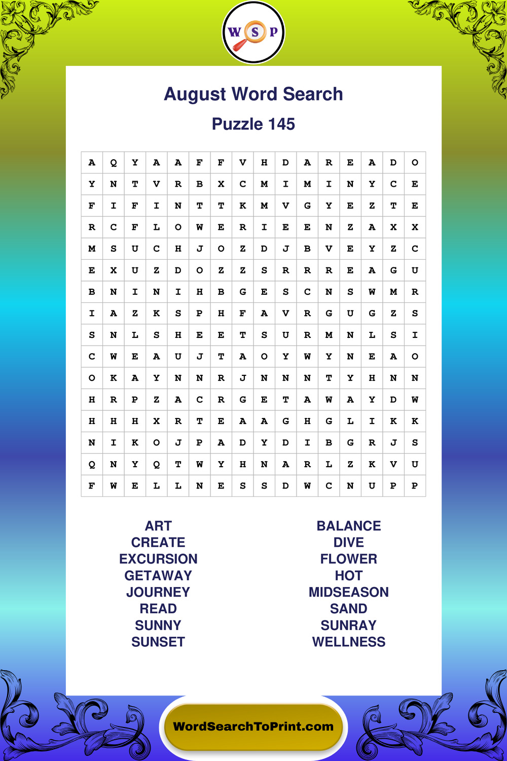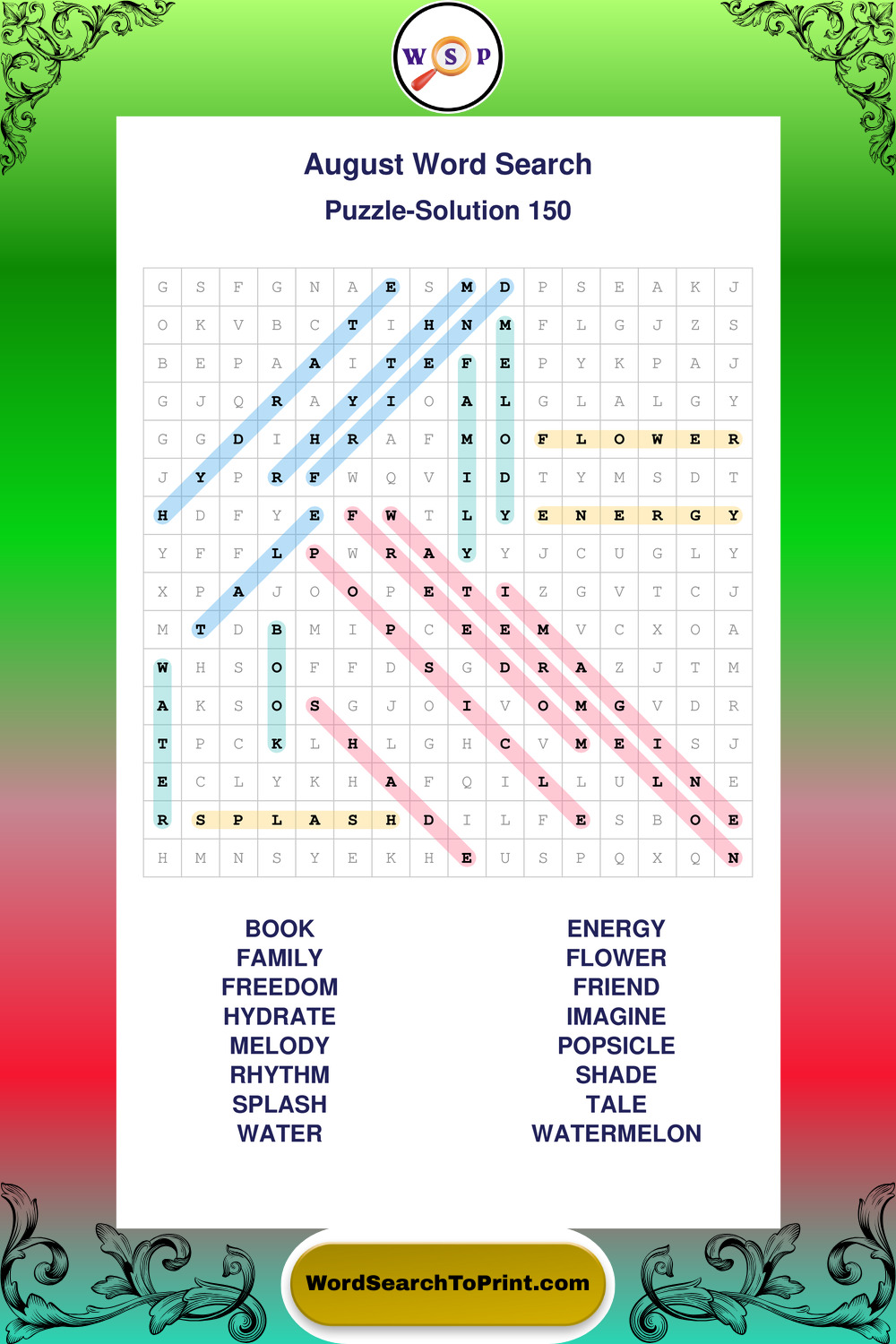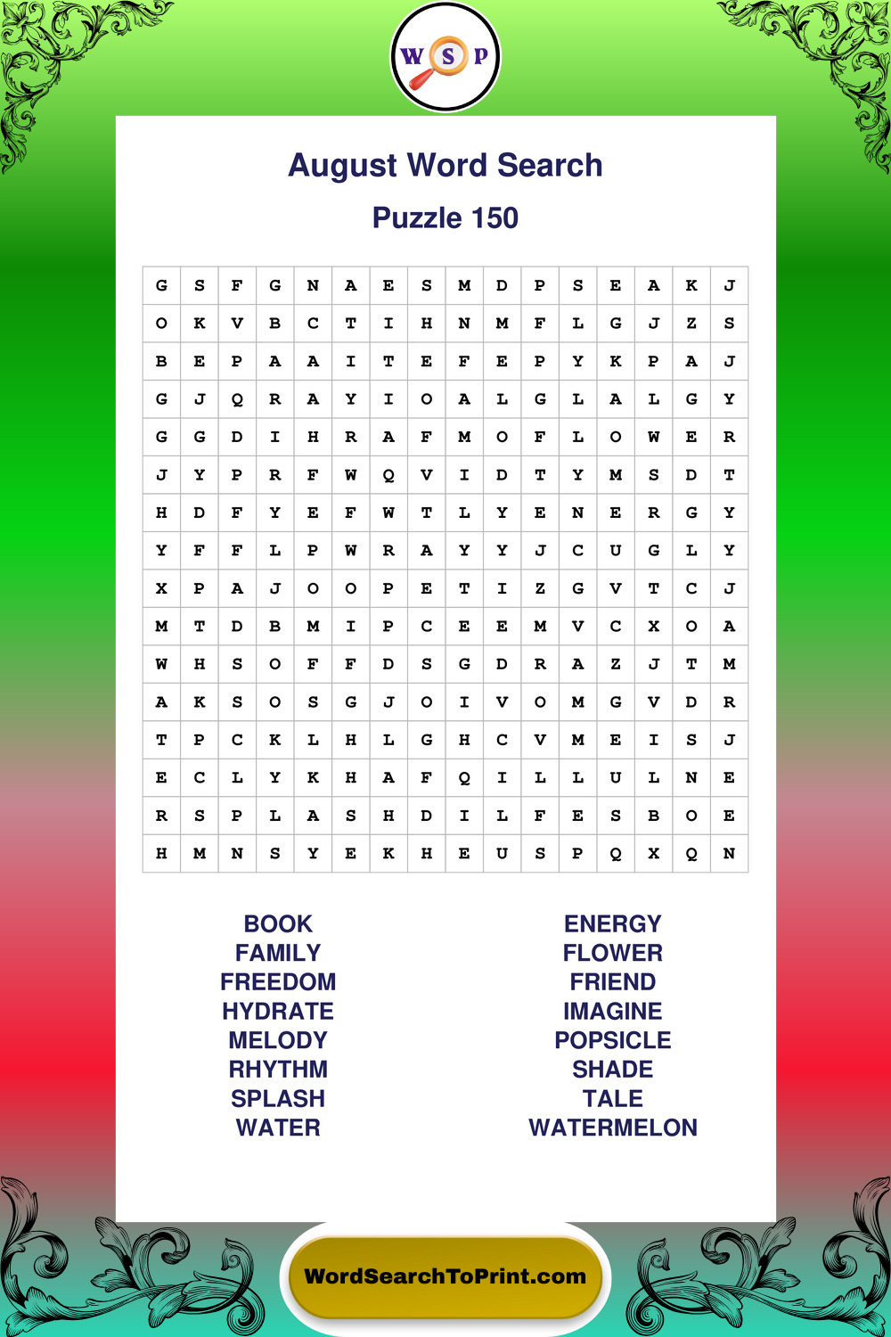 Printable August Wordsearch Puzzles