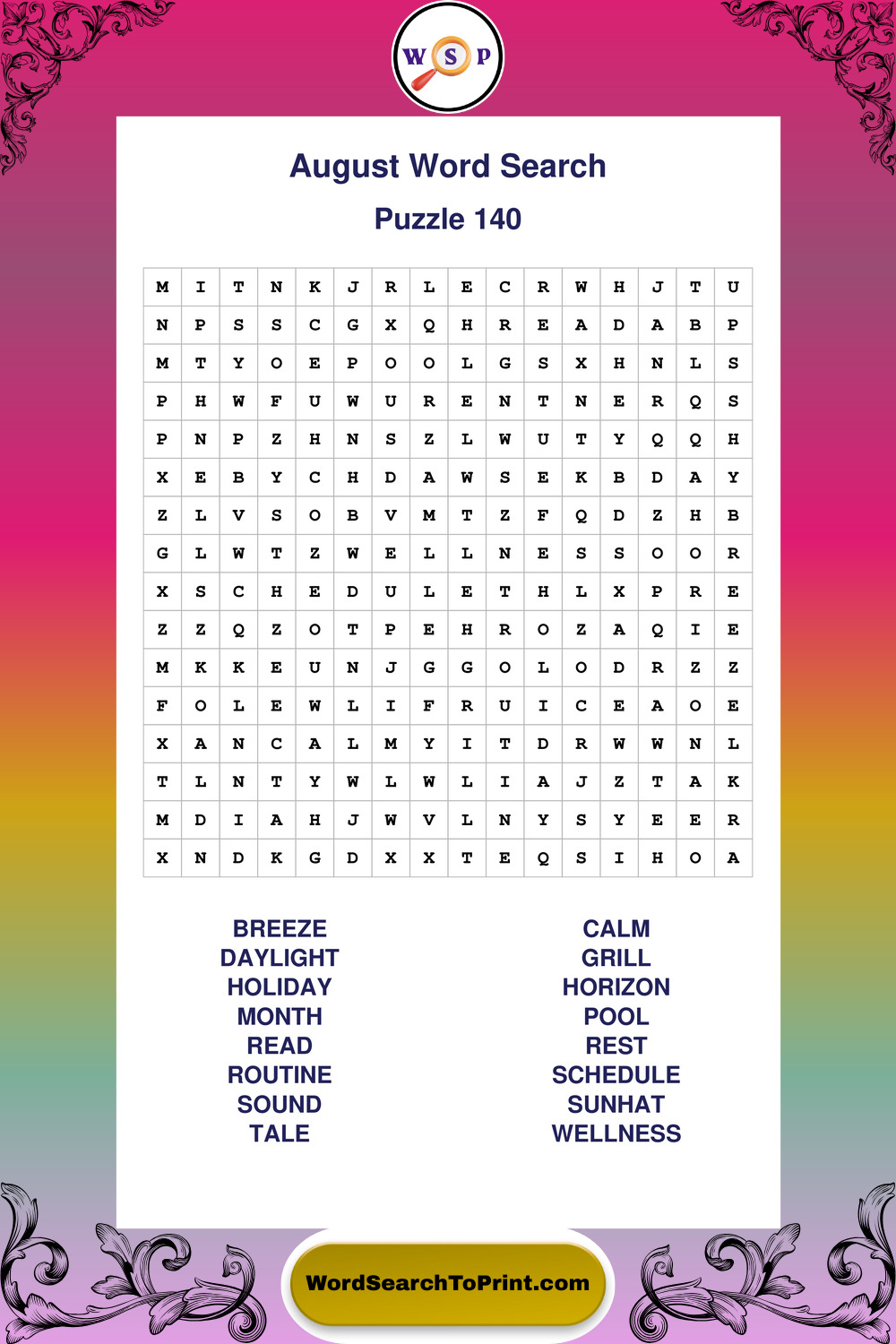 August Wordsearches