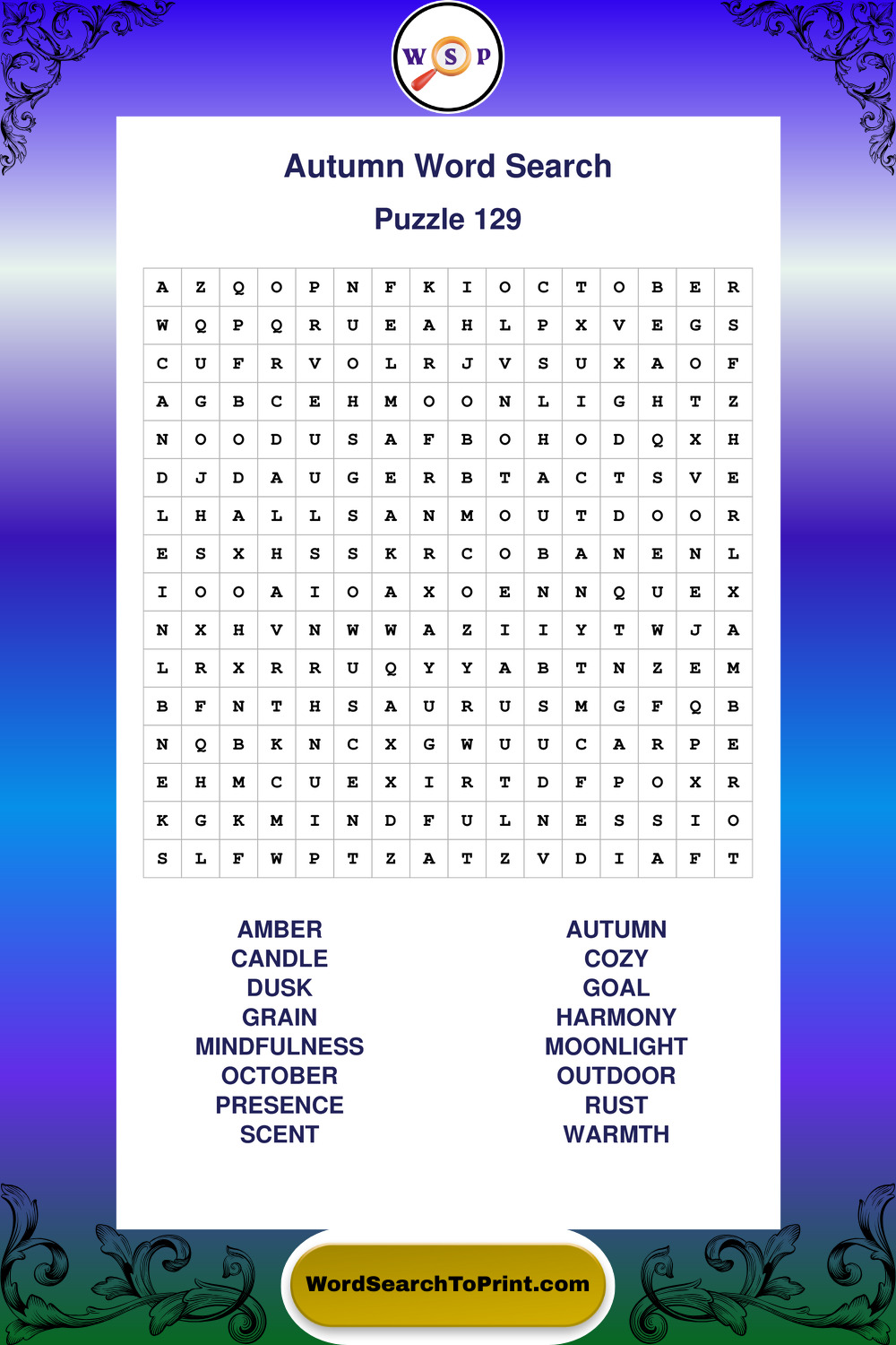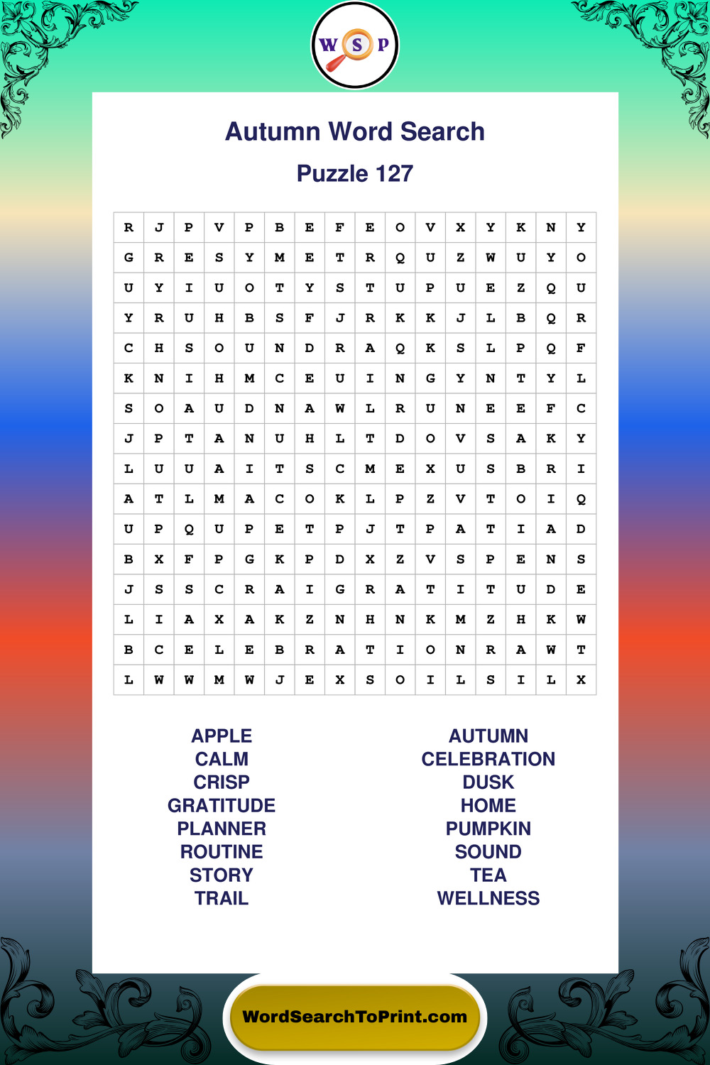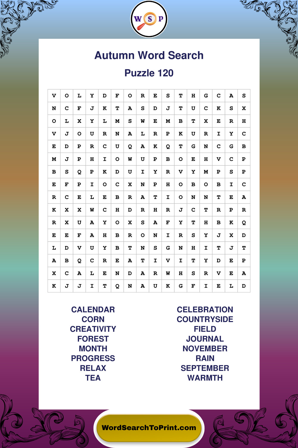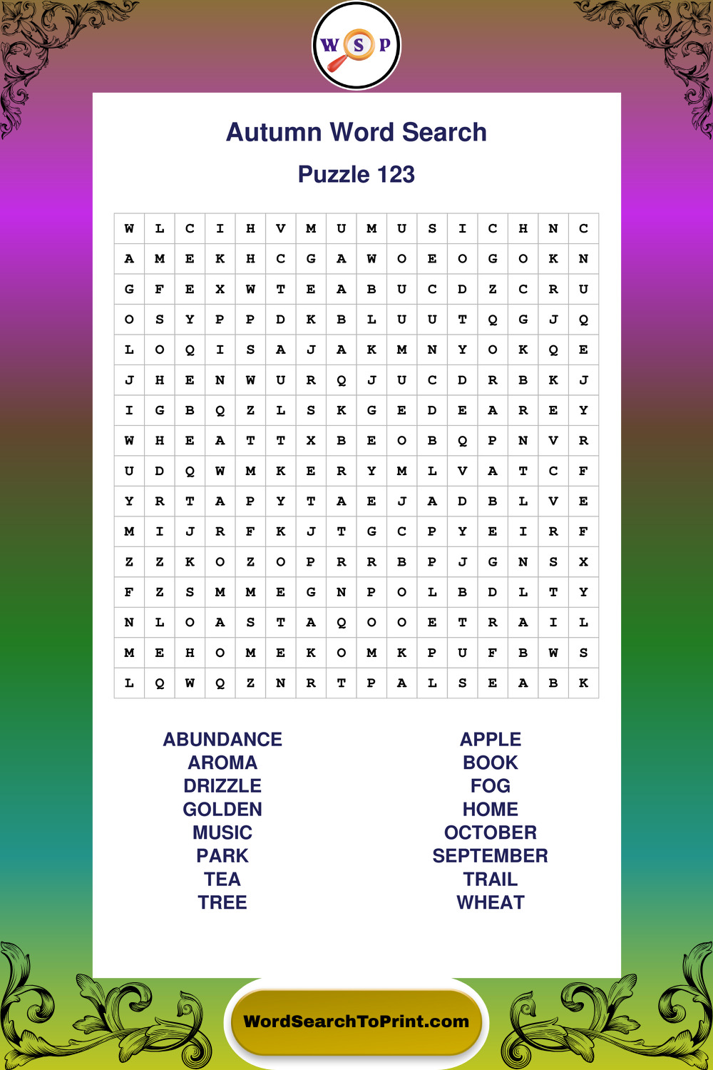 Printable Autumn Wordsearch Puzzles