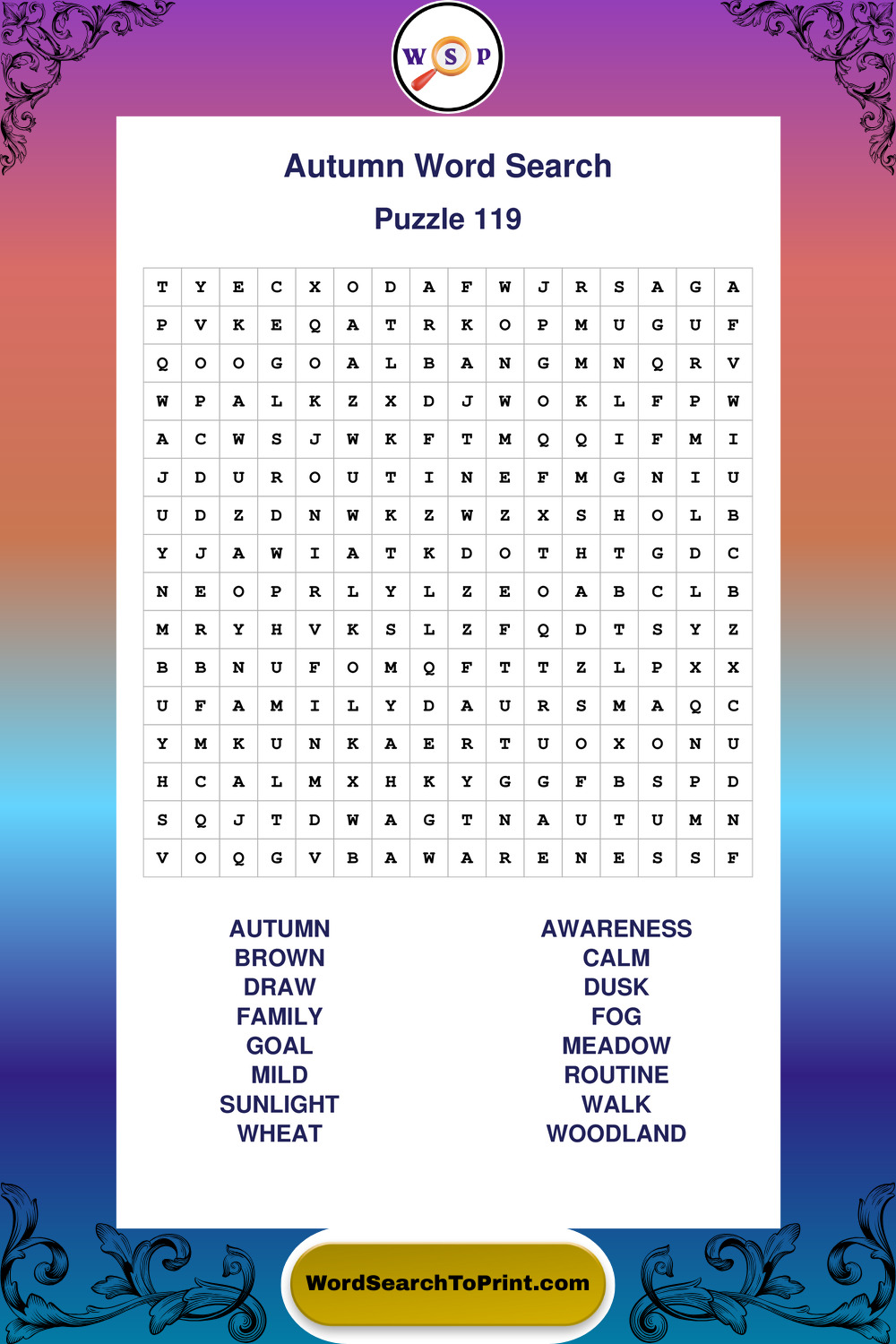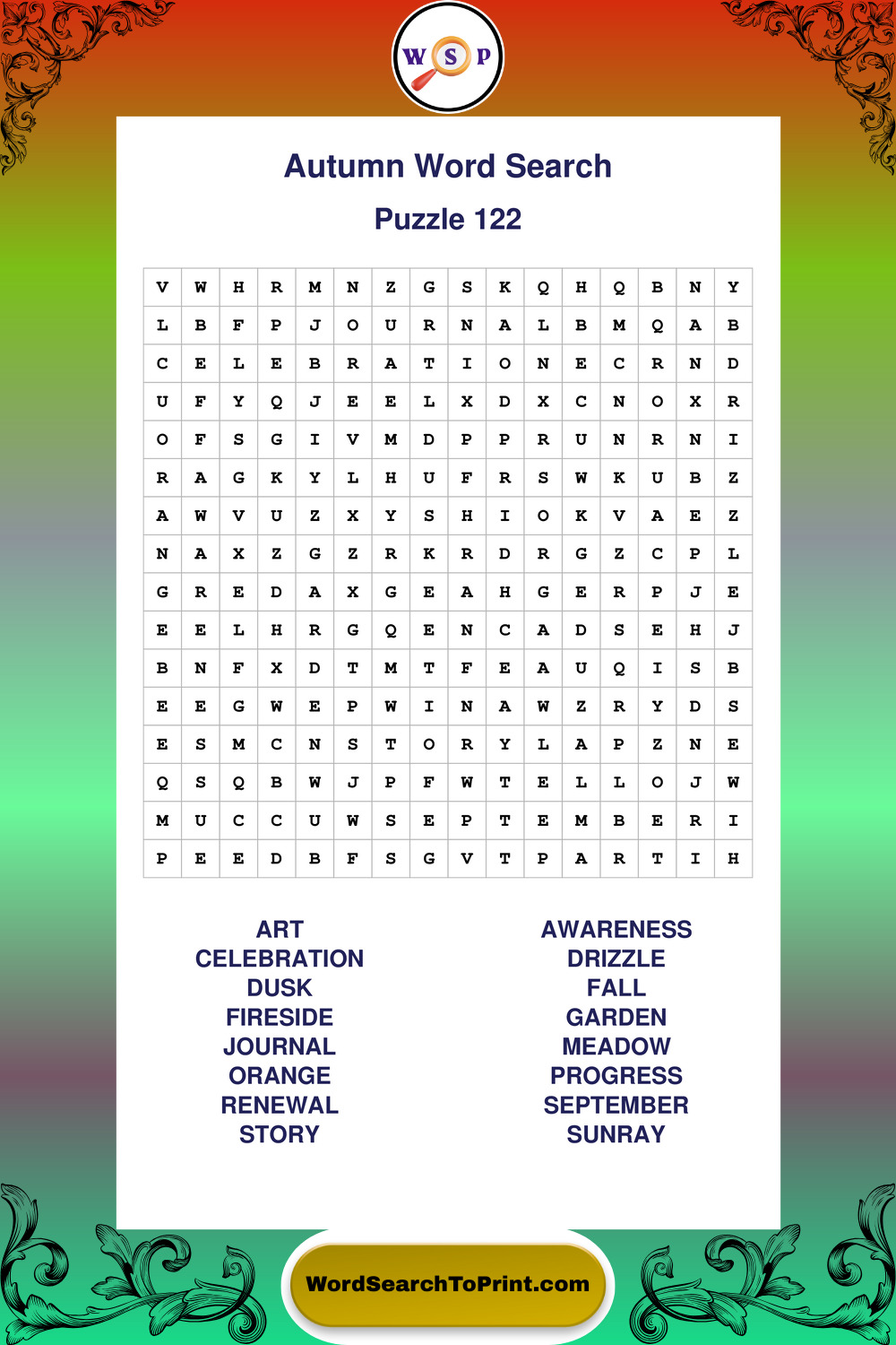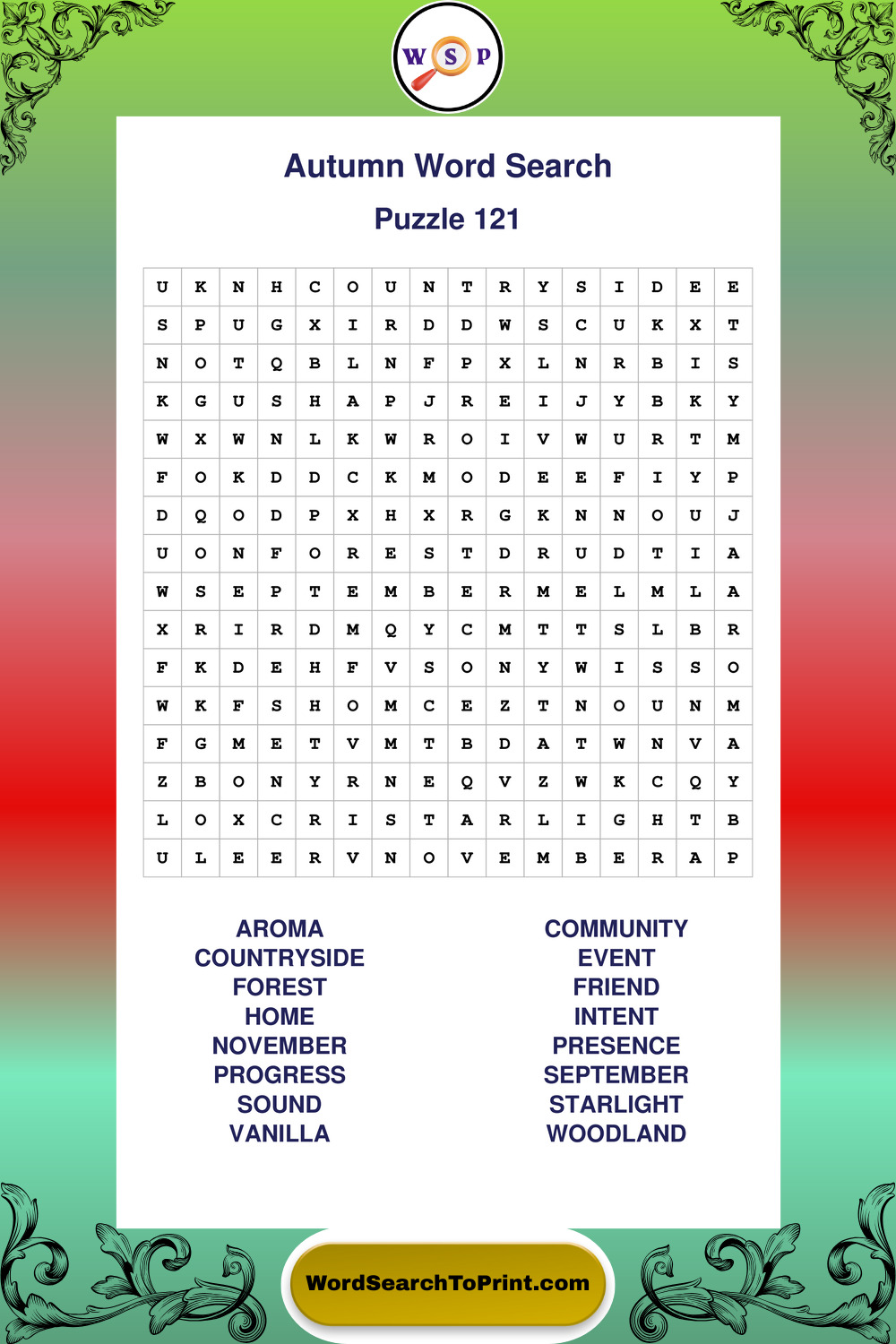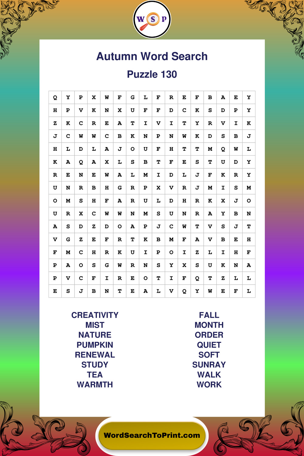 Printable Autumn Wordsearch Puzzles