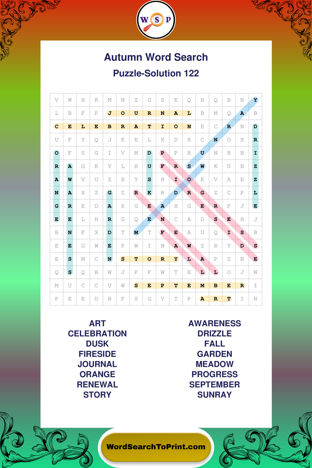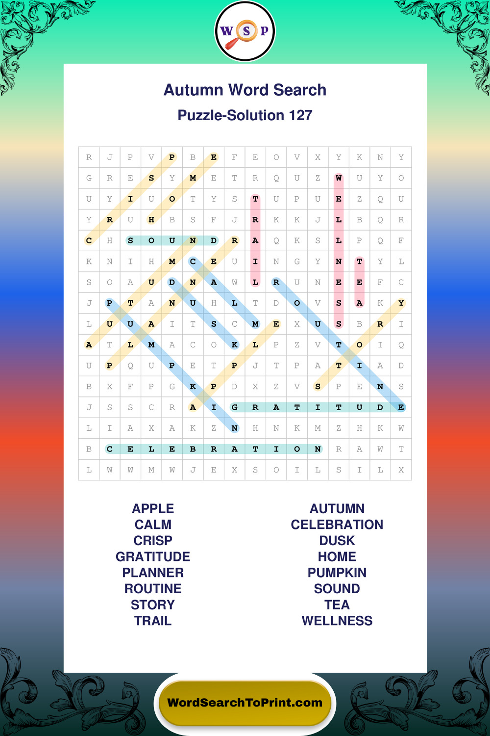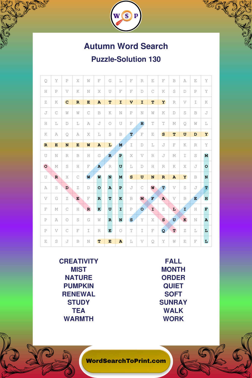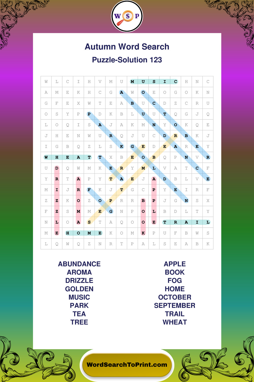 Printable Autumn Wordsearch Puzzles