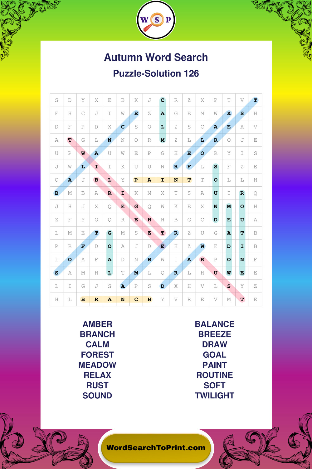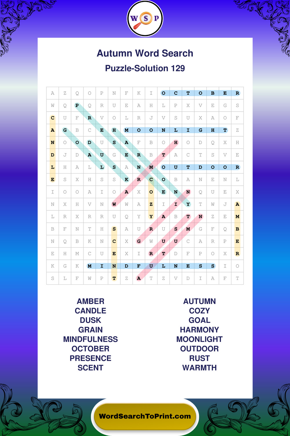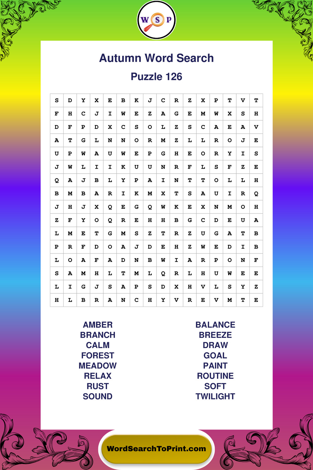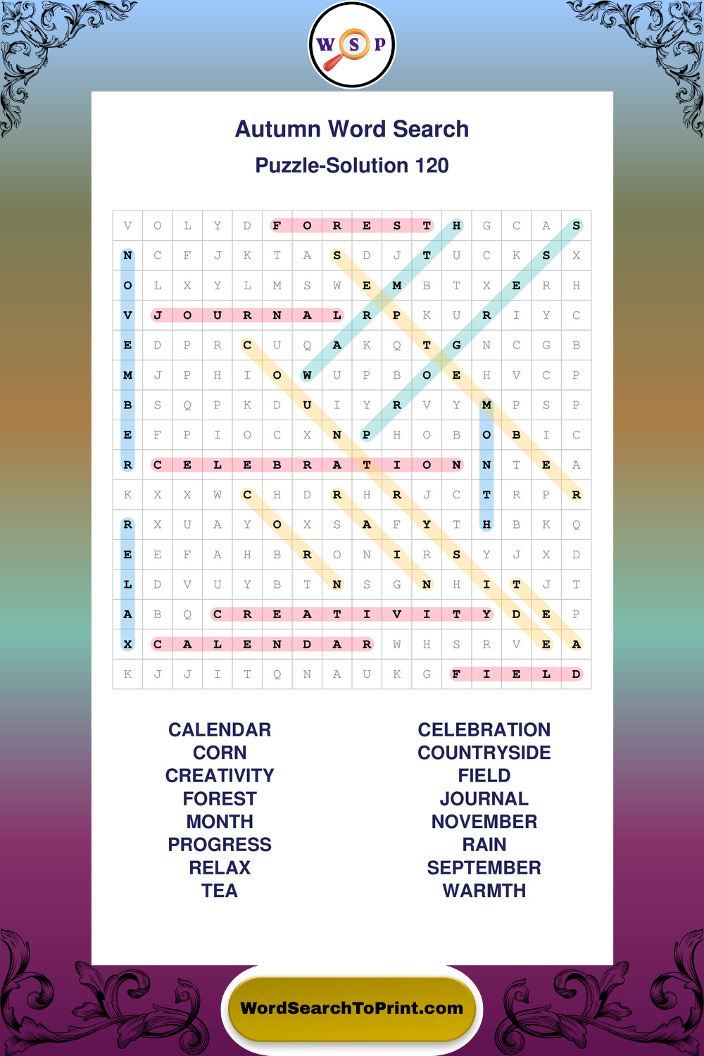 Printable Autumn Wordsearch Puzzles