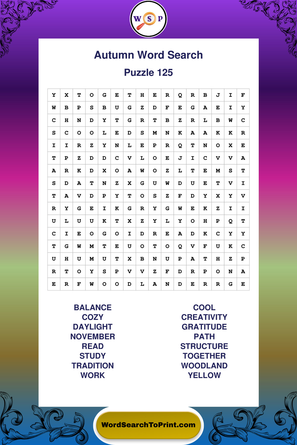 These large print Autumn wordsearches are perfect for home, school, senior centers, or quiet personal time.