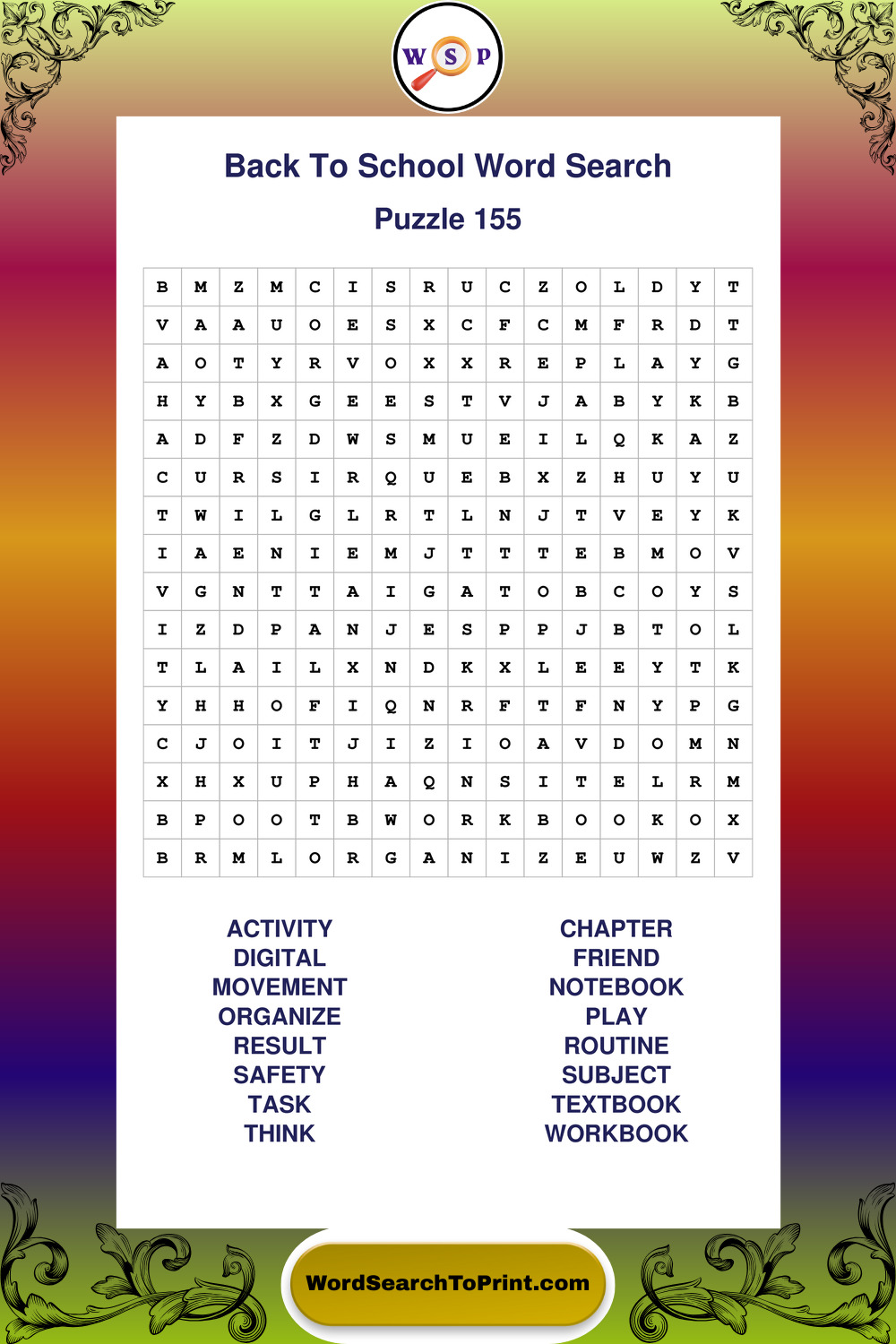 This collection of large print back to school wordsearches is designed for smooth reading, gentle focus, and enjoyable puzzle time.
