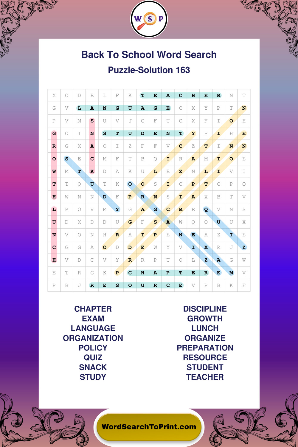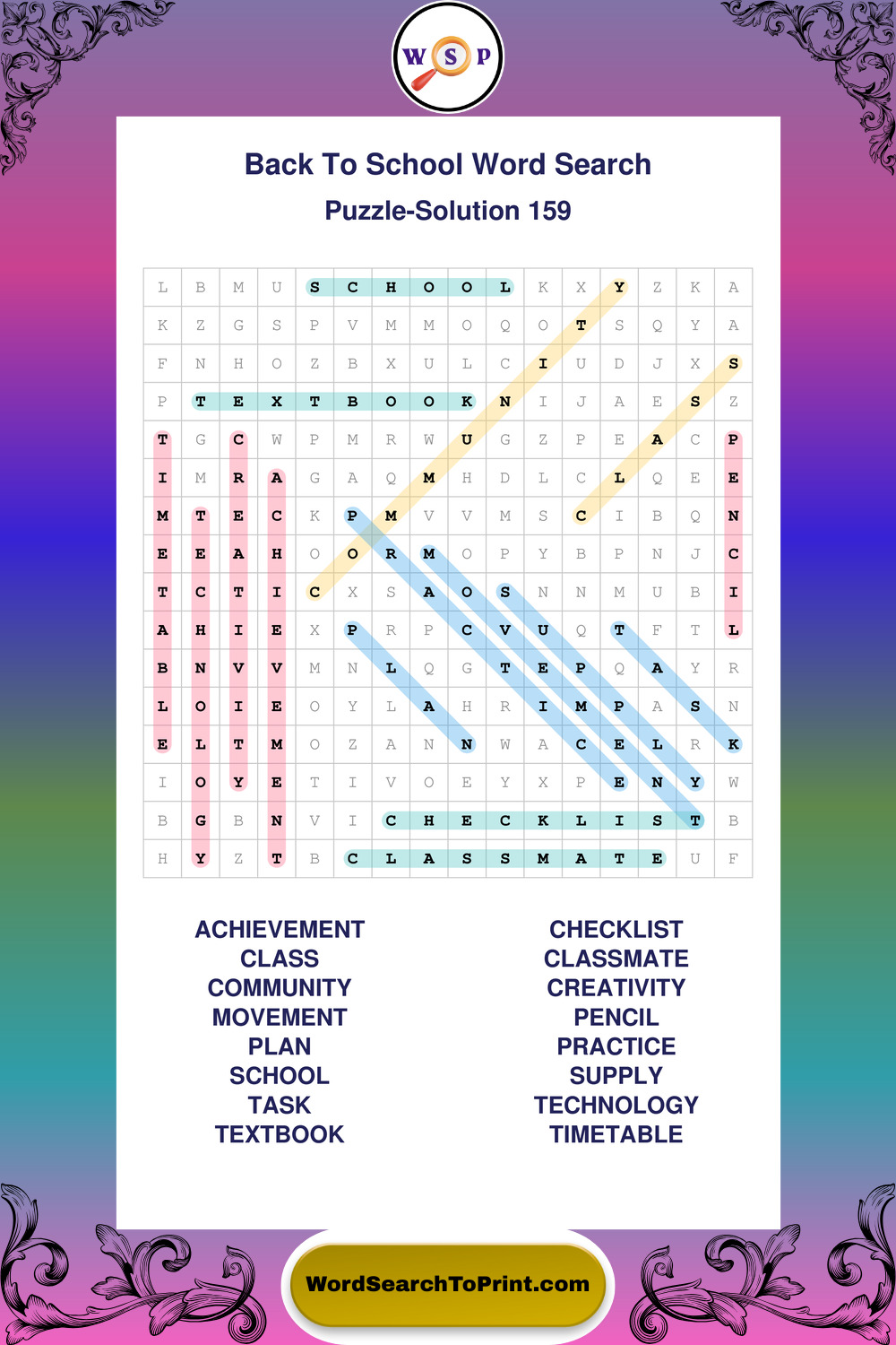 Printable Back To School Wordsearch Puzzles