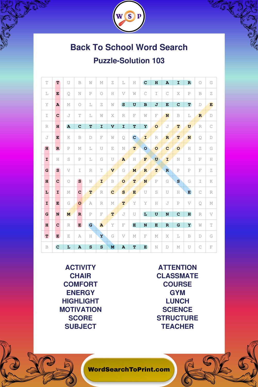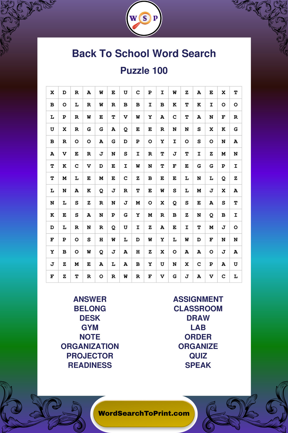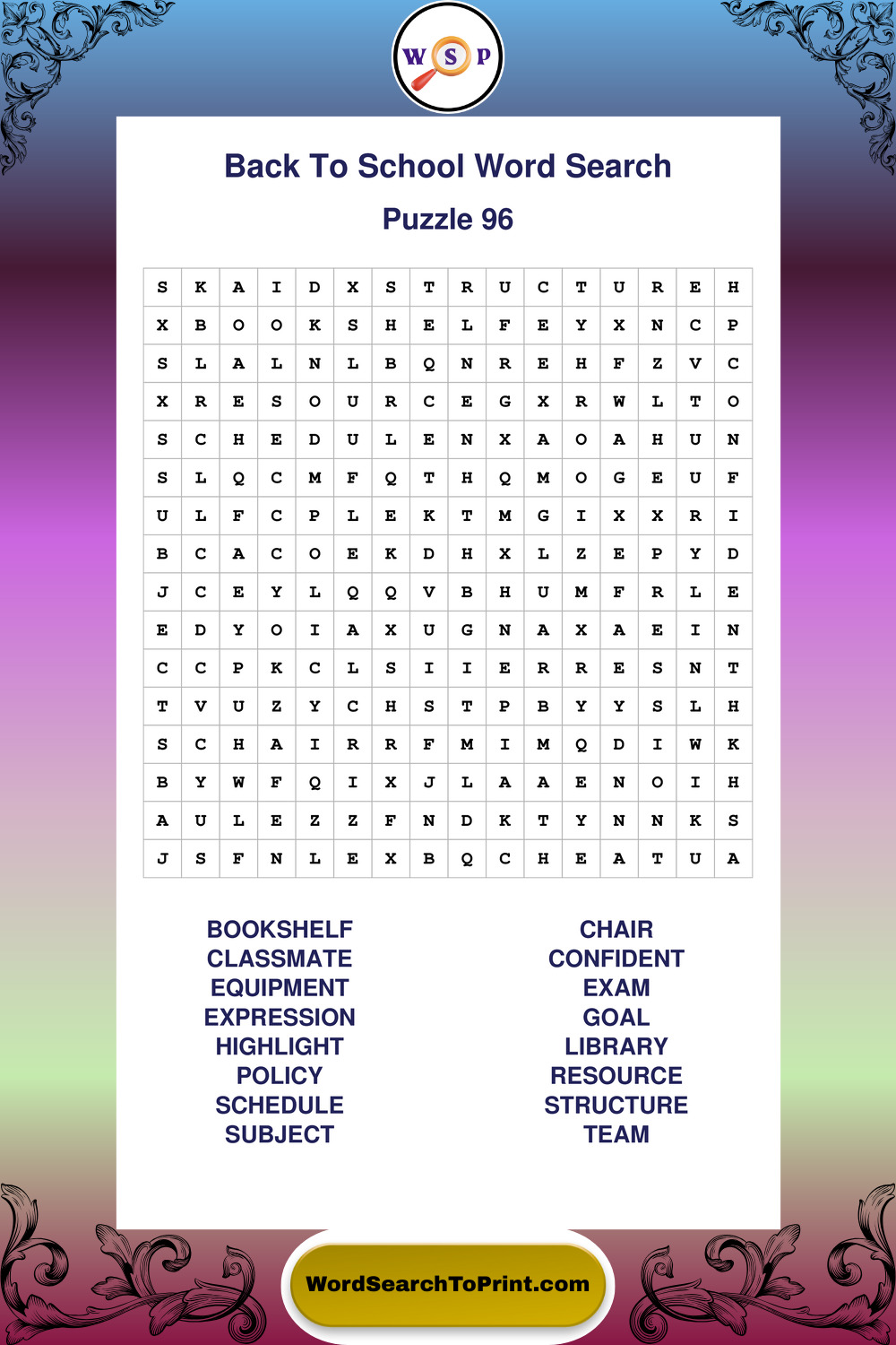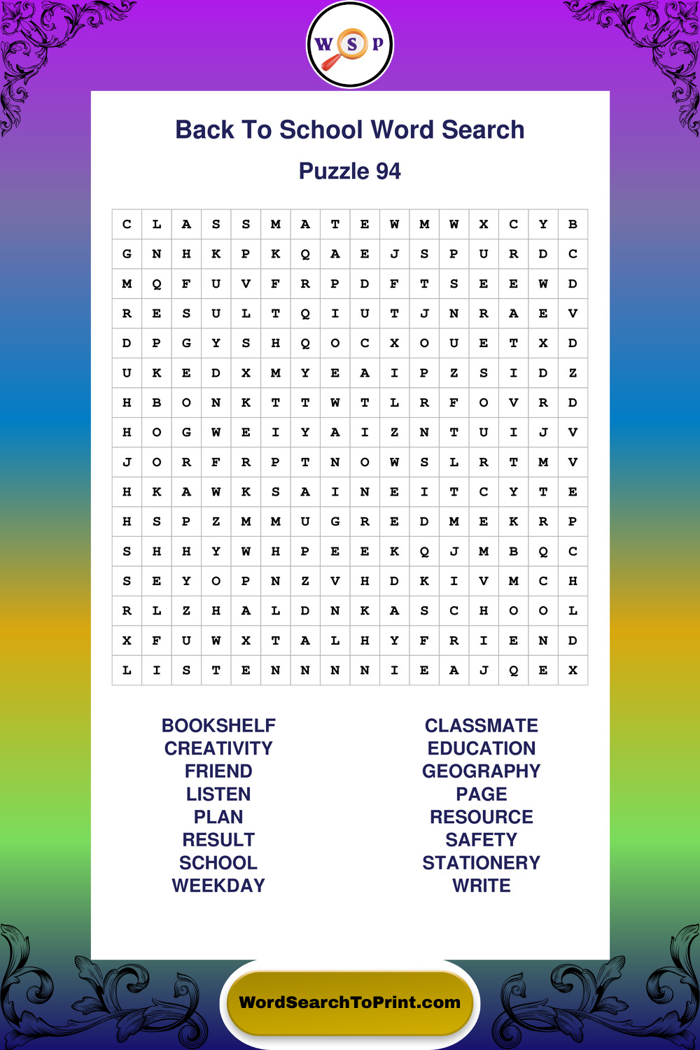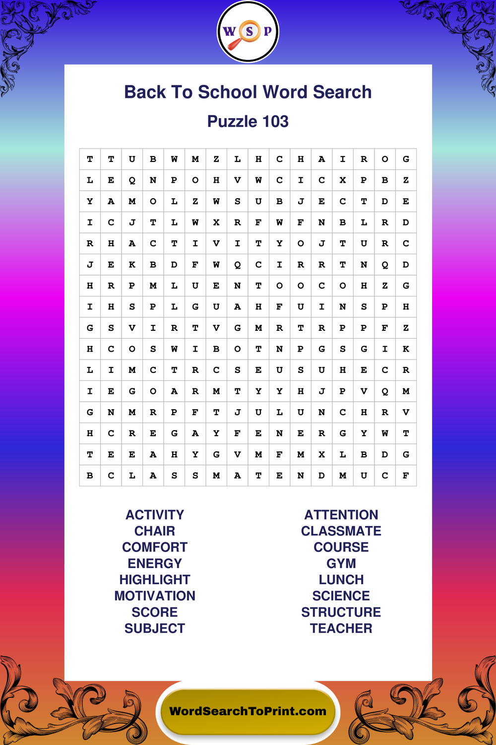 This collection of large print back to school wordsearches is designed for smooth reading, gentle focus, and enjoyable puzzle time.