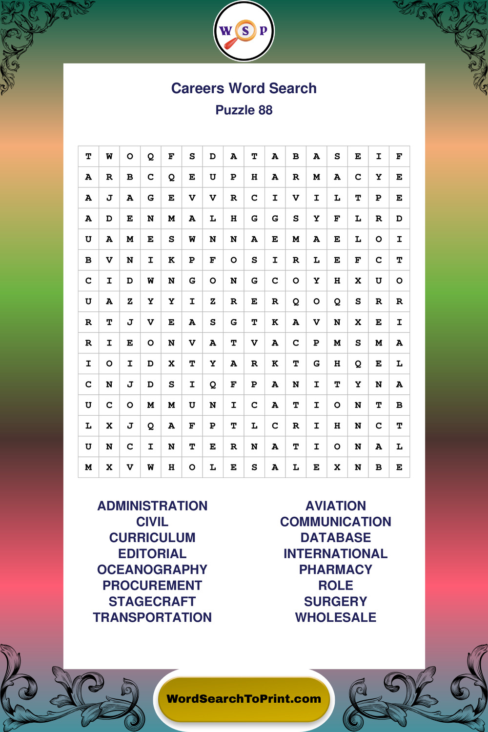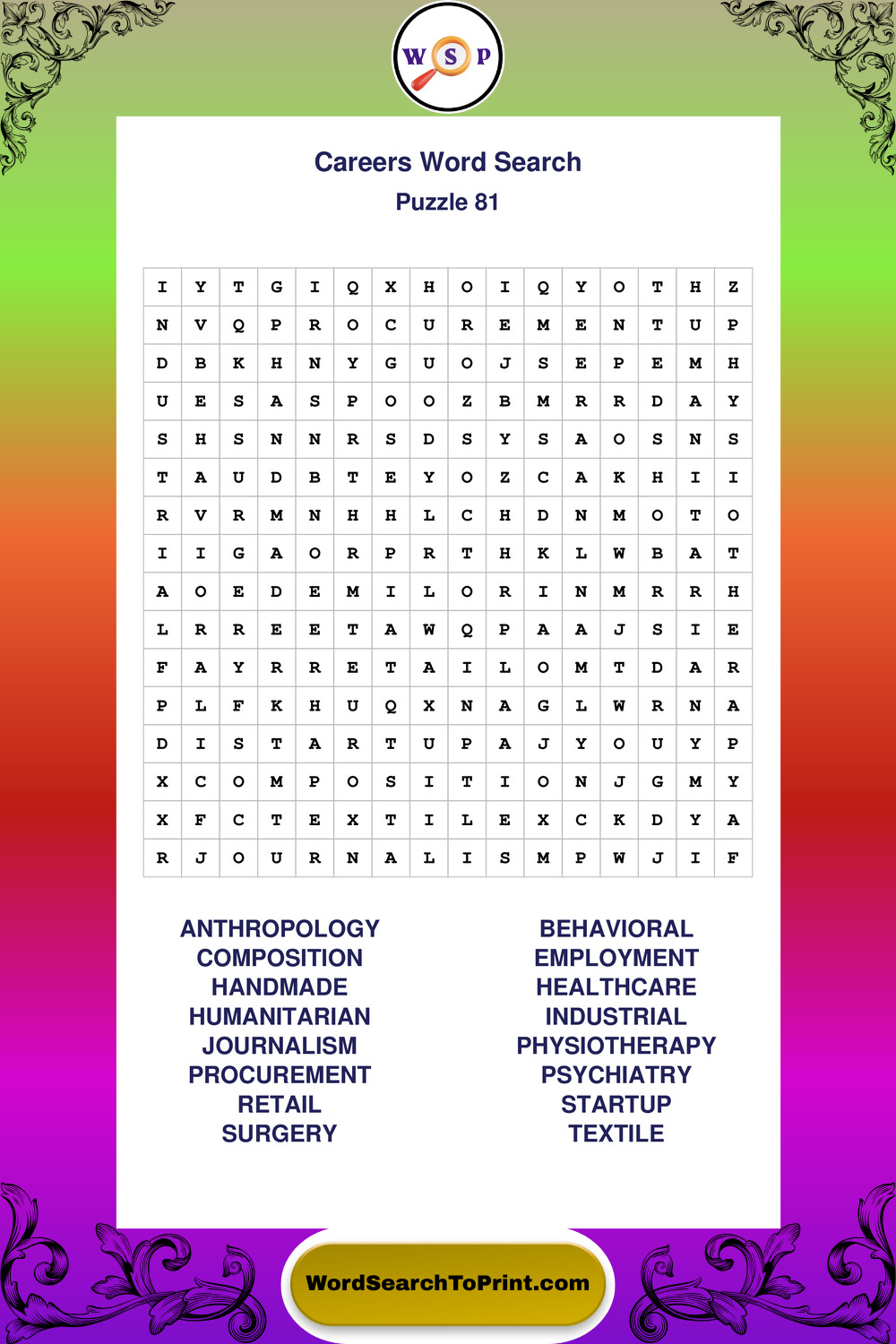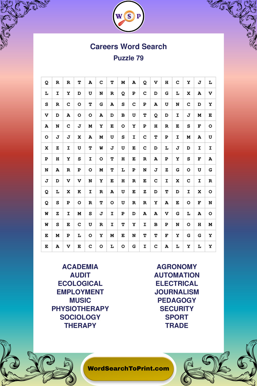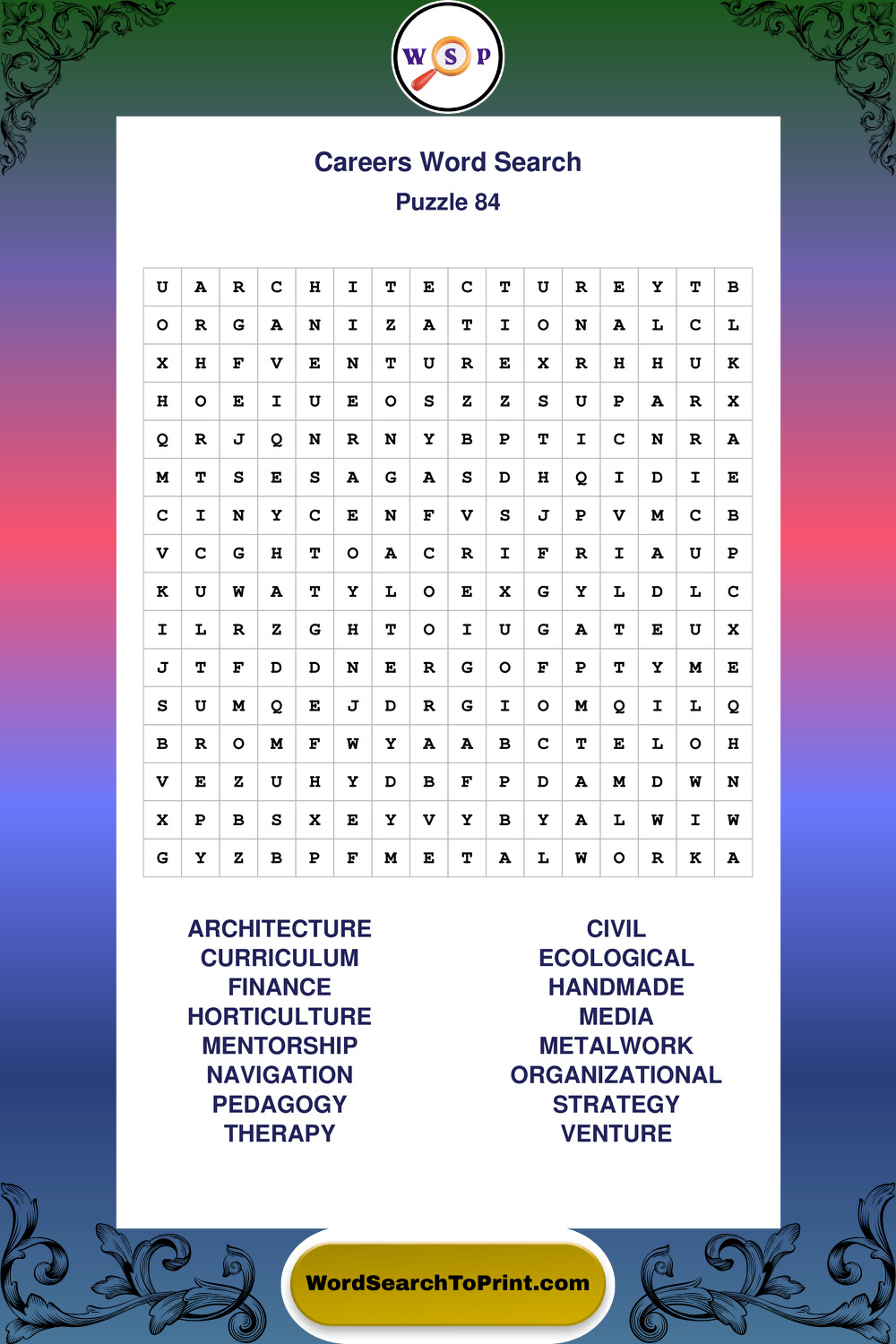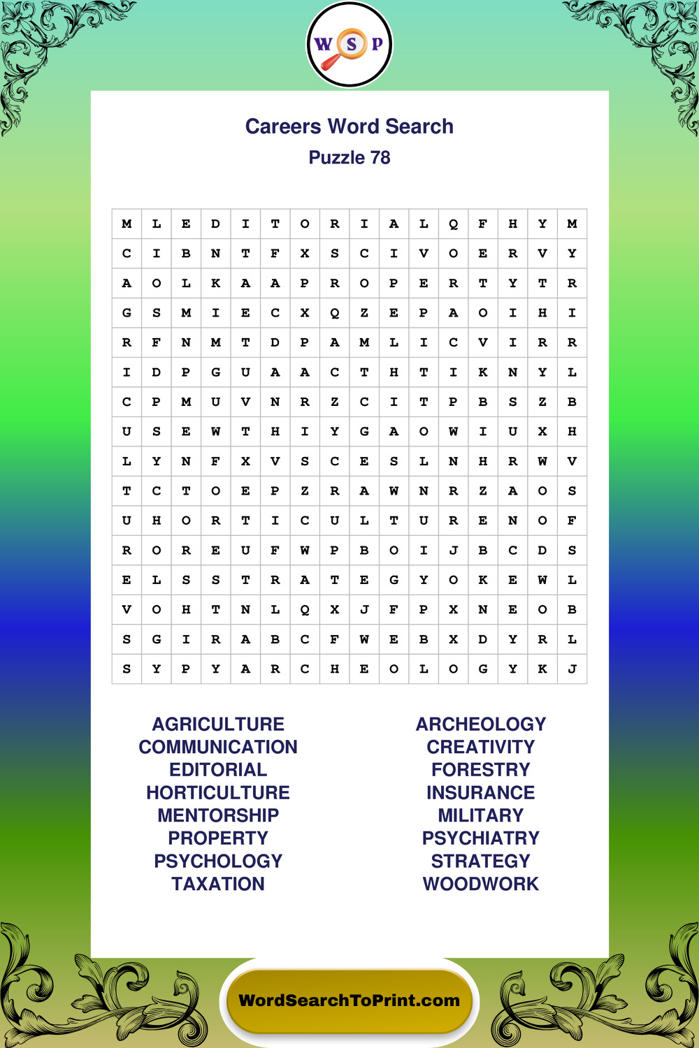 These printable large print Careers wordsearches offer a calm and accessible puzzle experience for all skill levels.