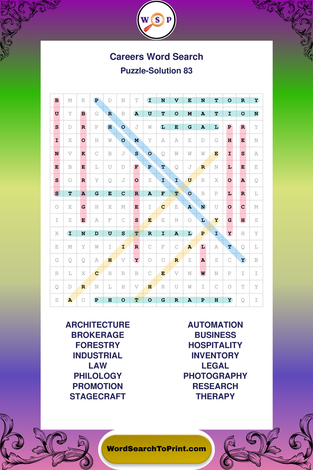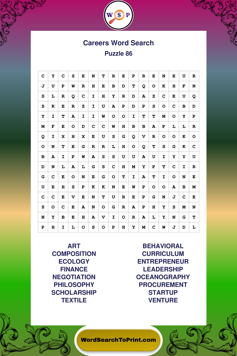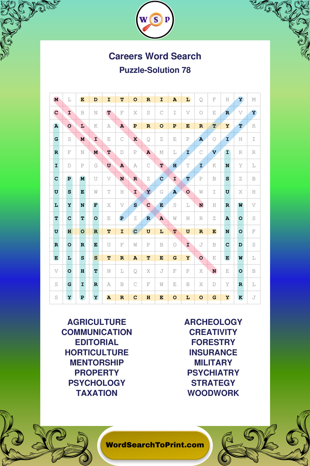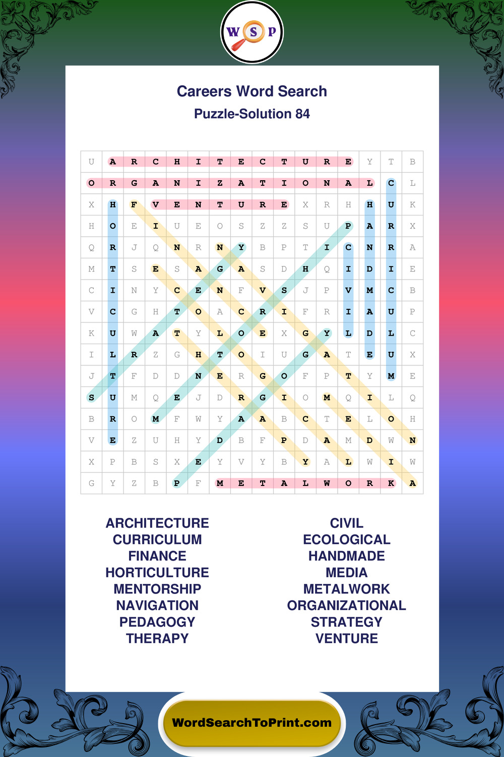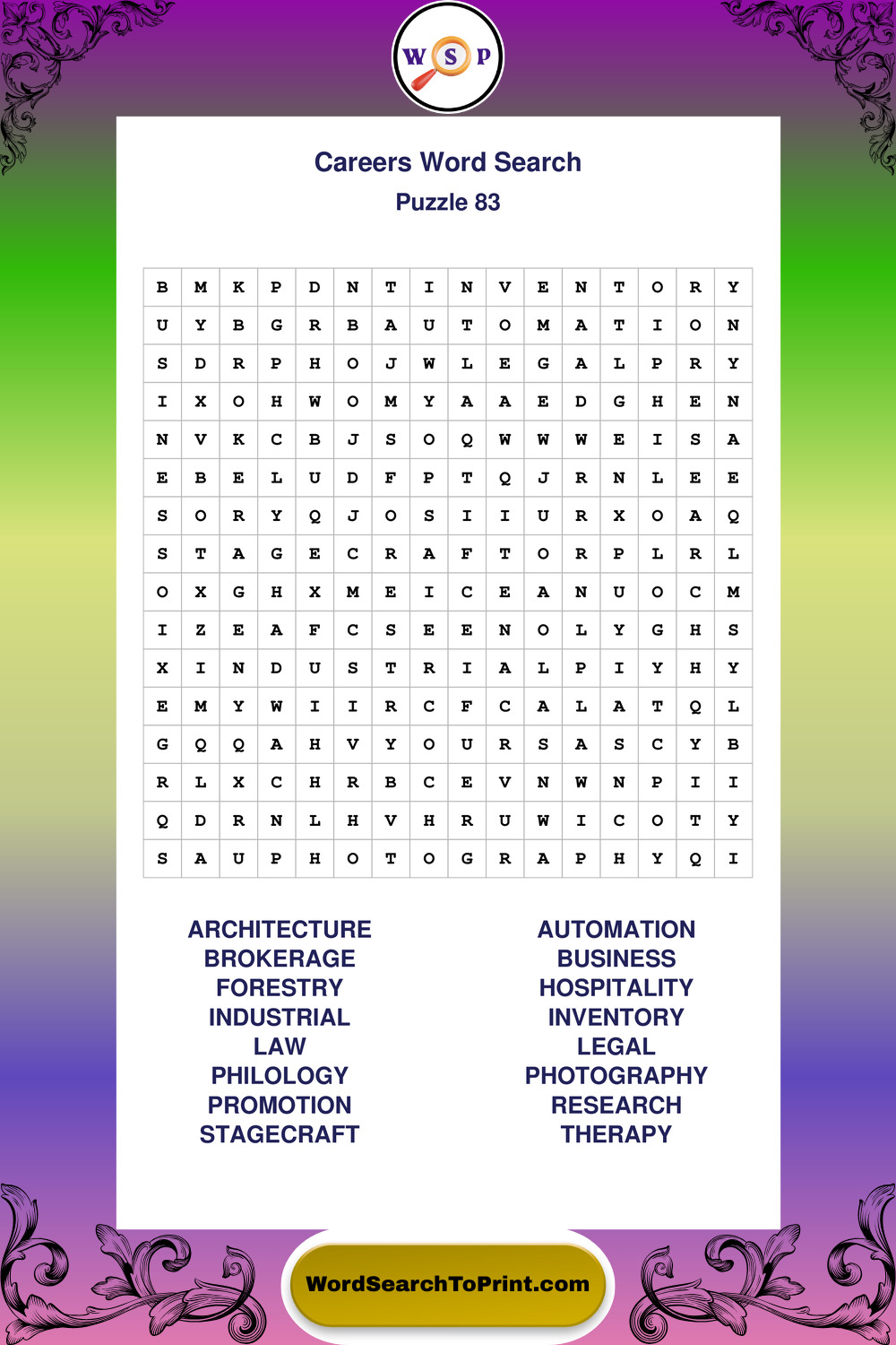 These printable large print Careers wordsearches offer a calm and accessible puzzle experience for all skill levels.