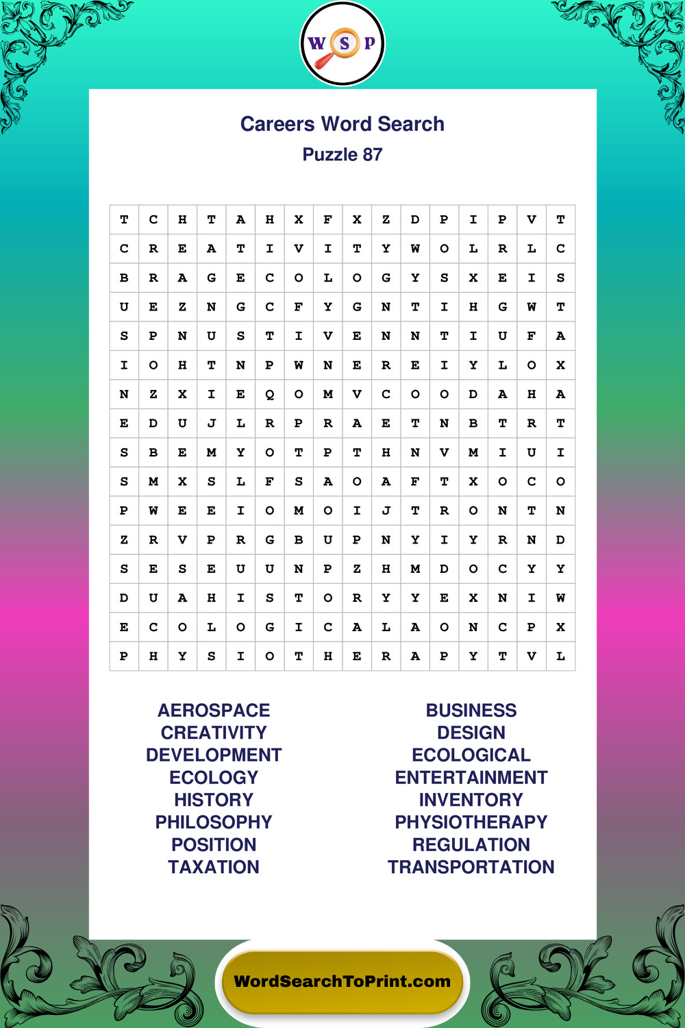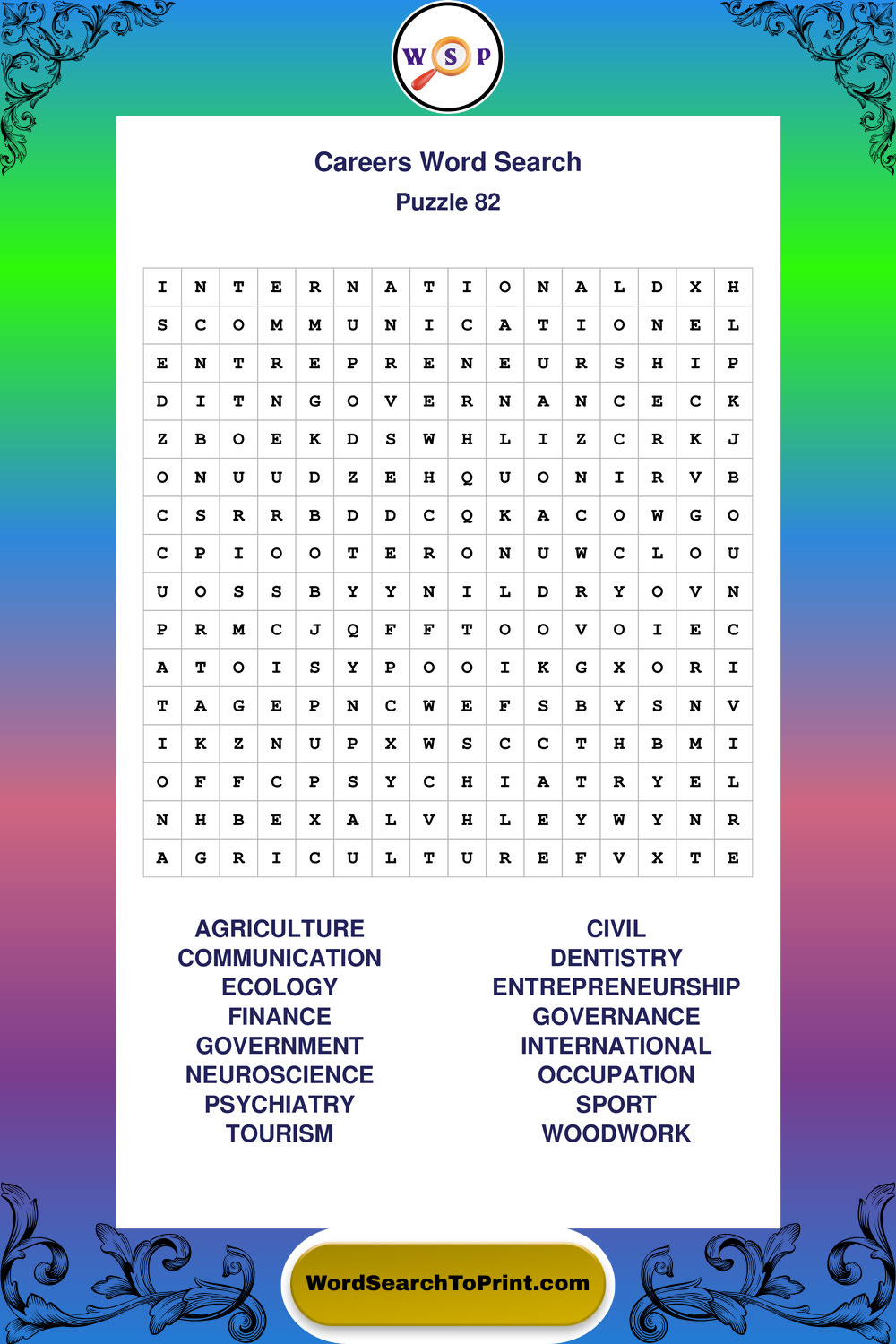 Printable Careers Wordsearch Puzzles