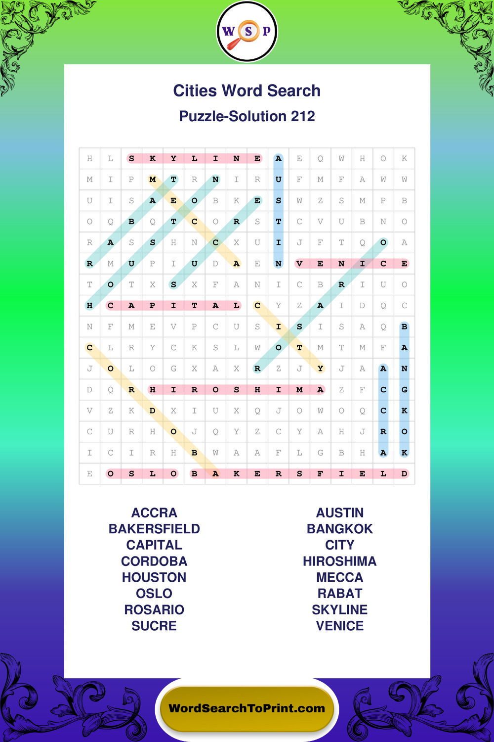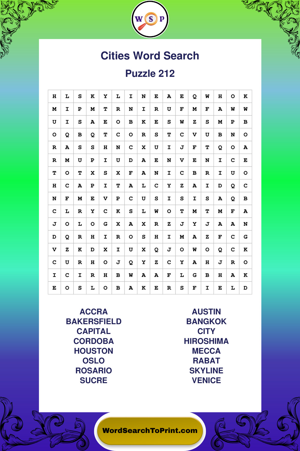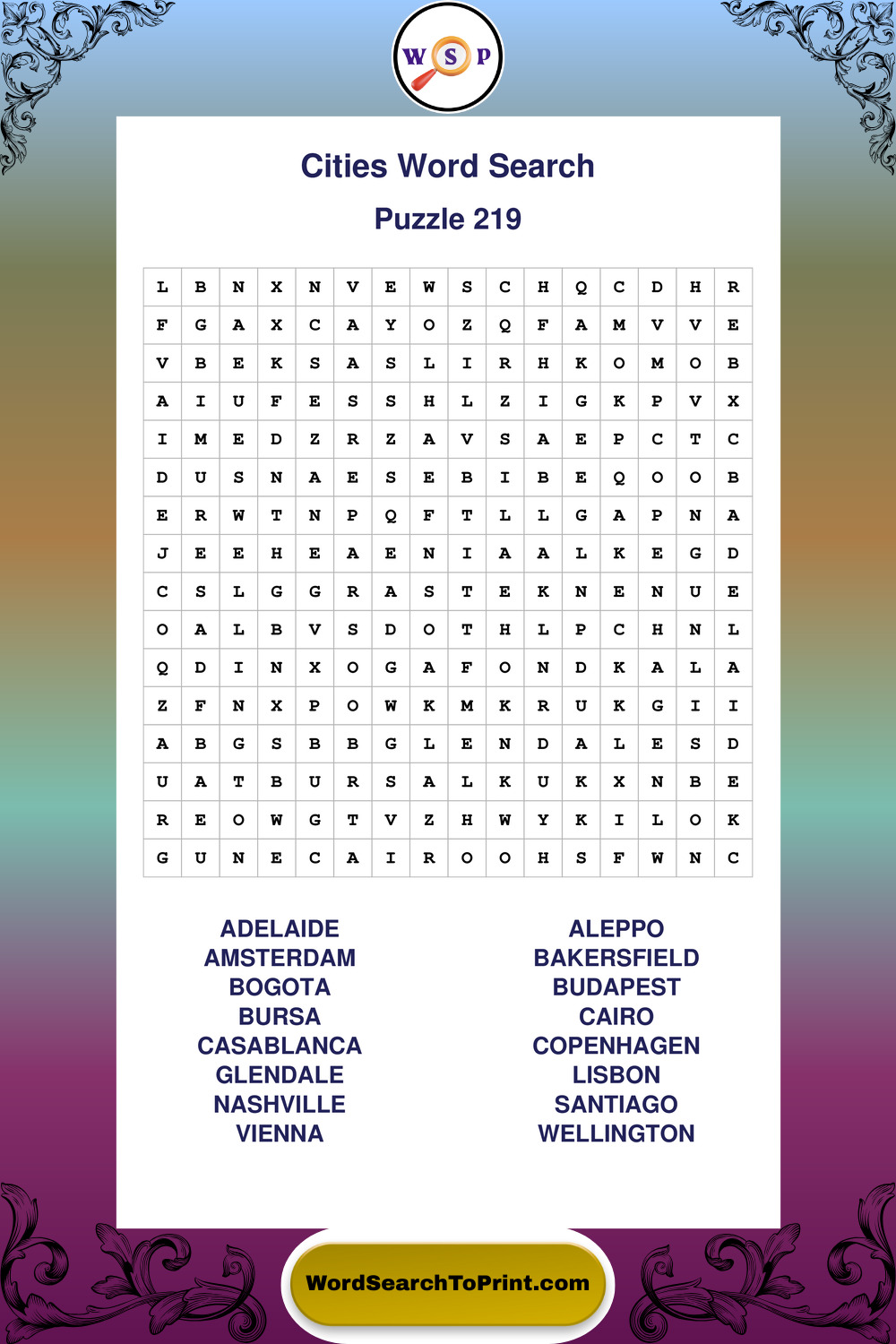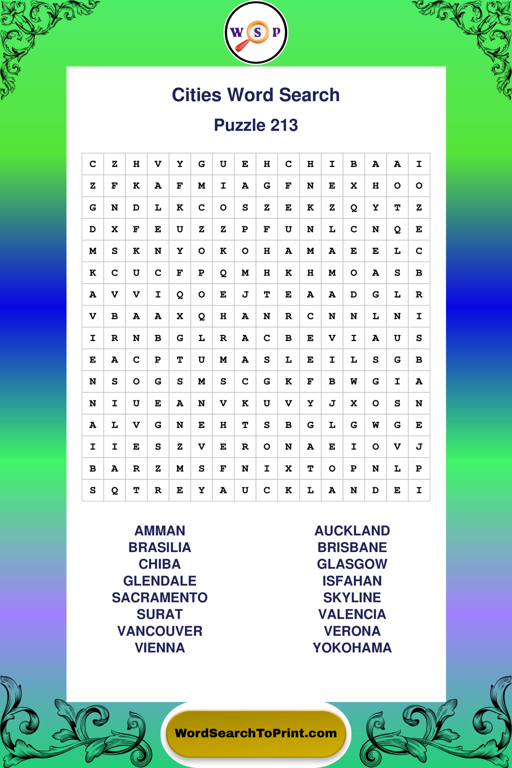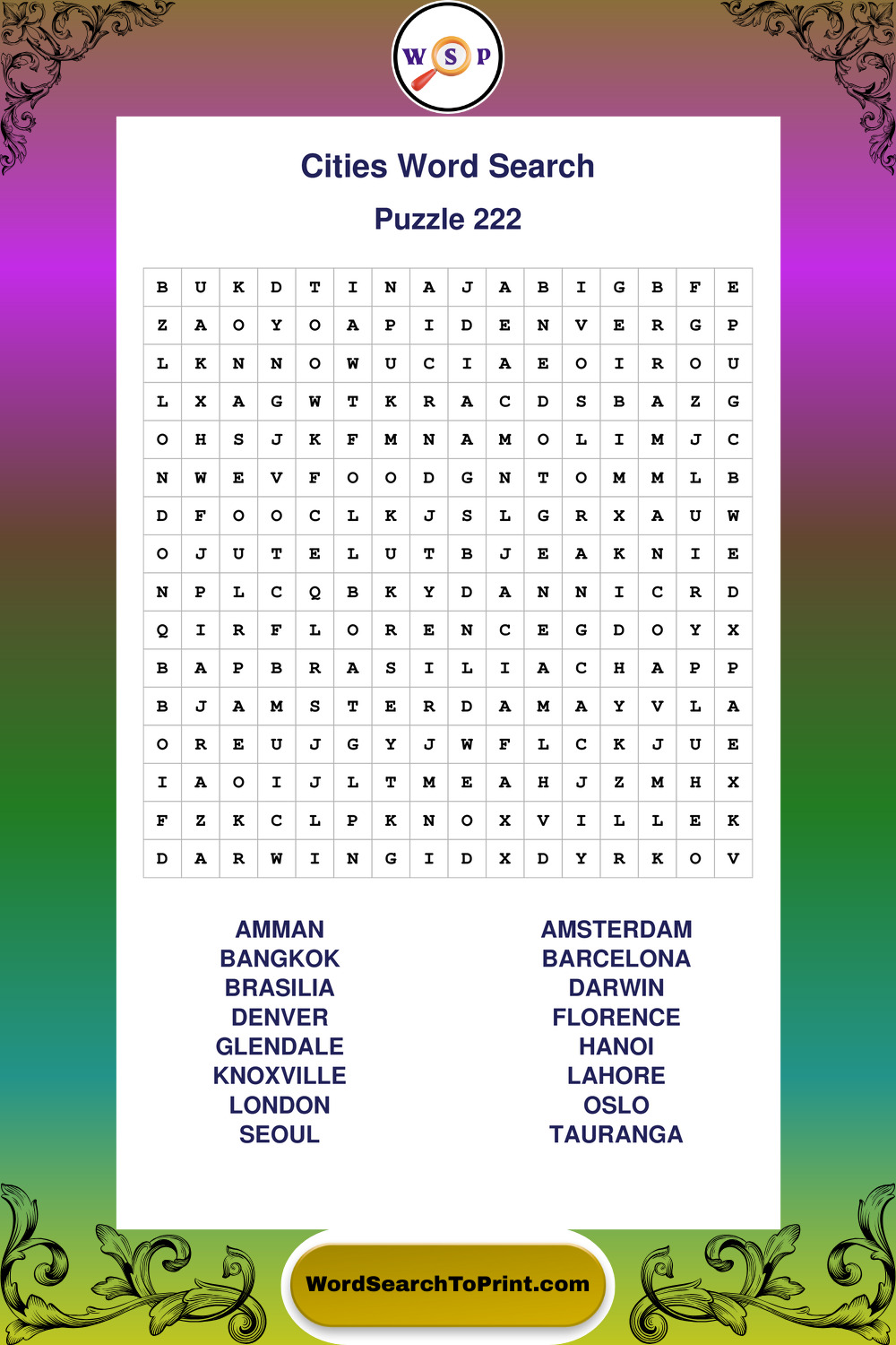Cities Wordsearches