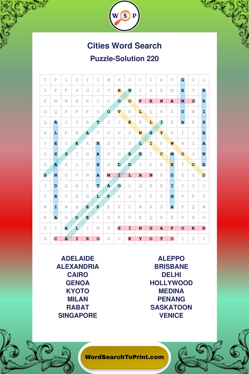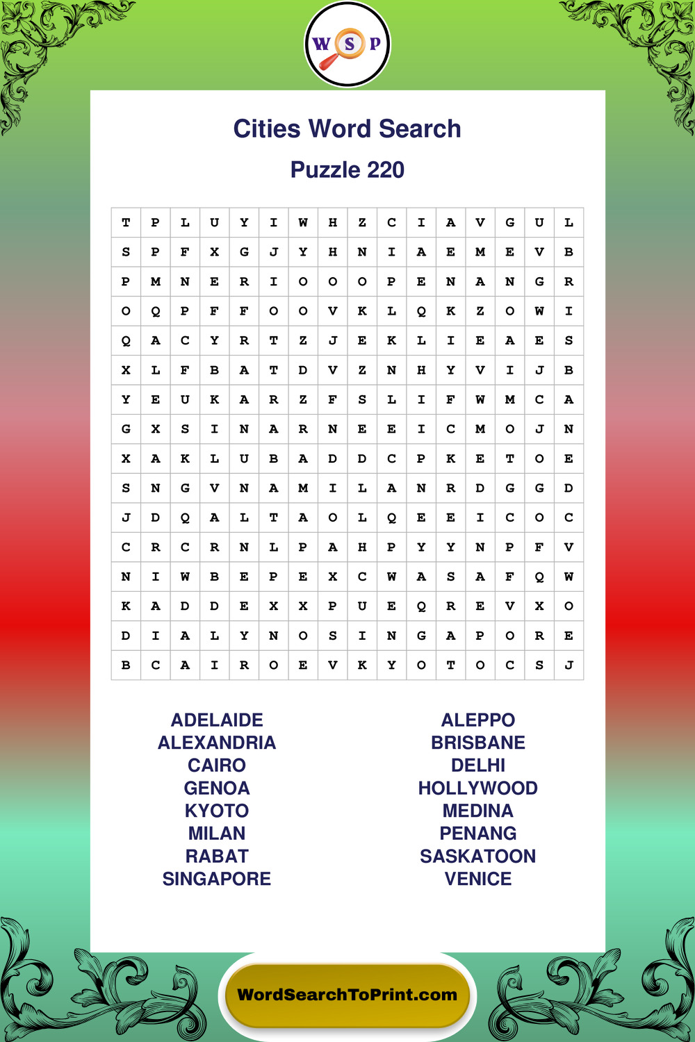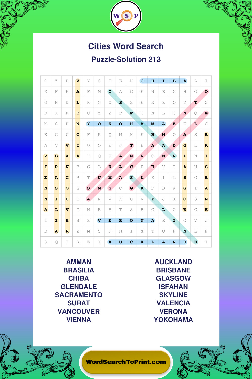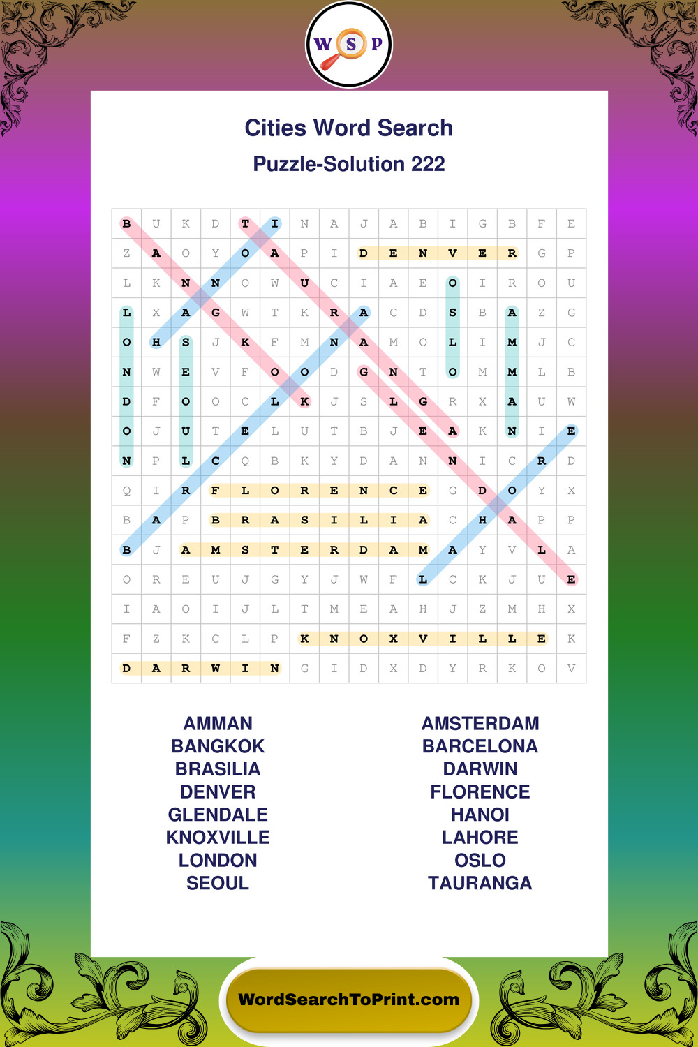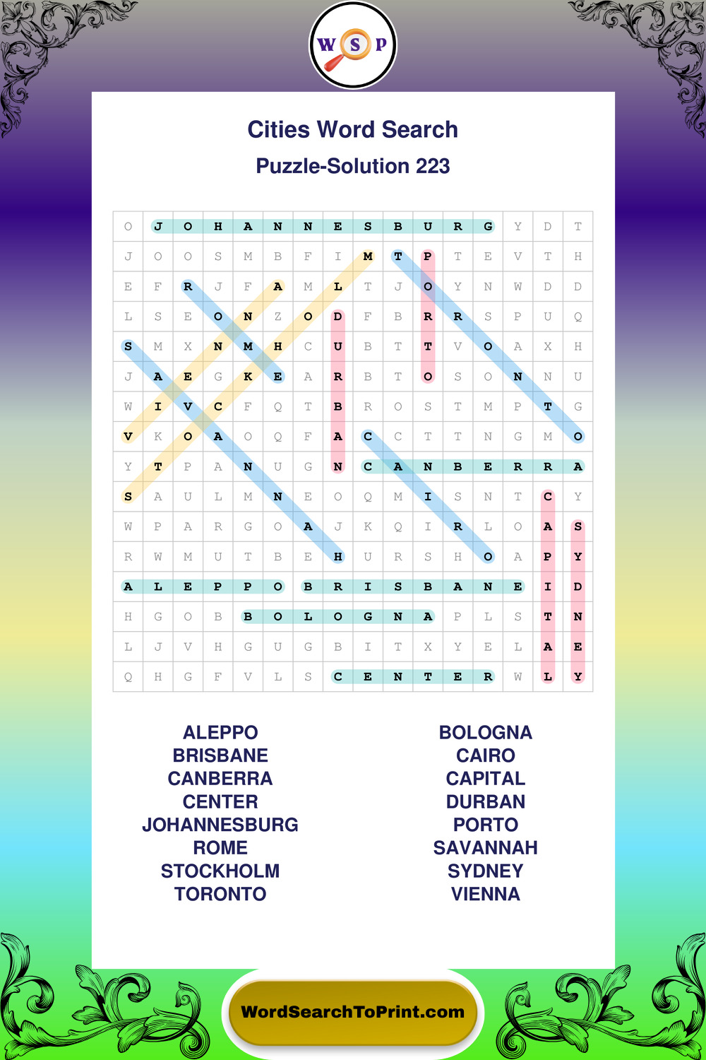 Cities Wordsearches