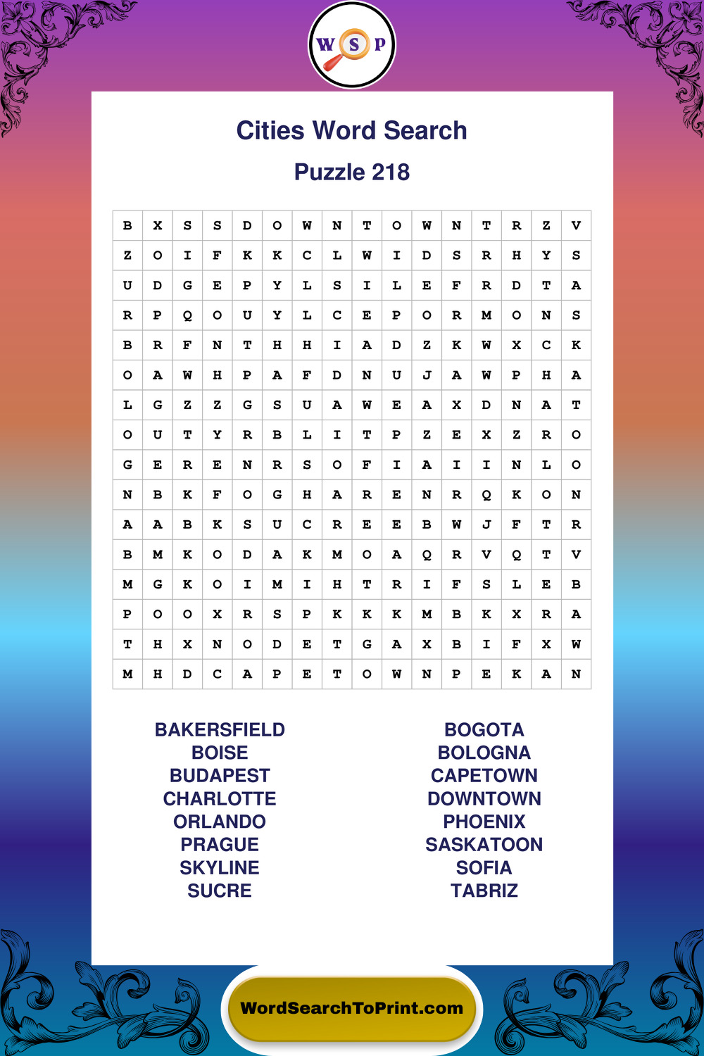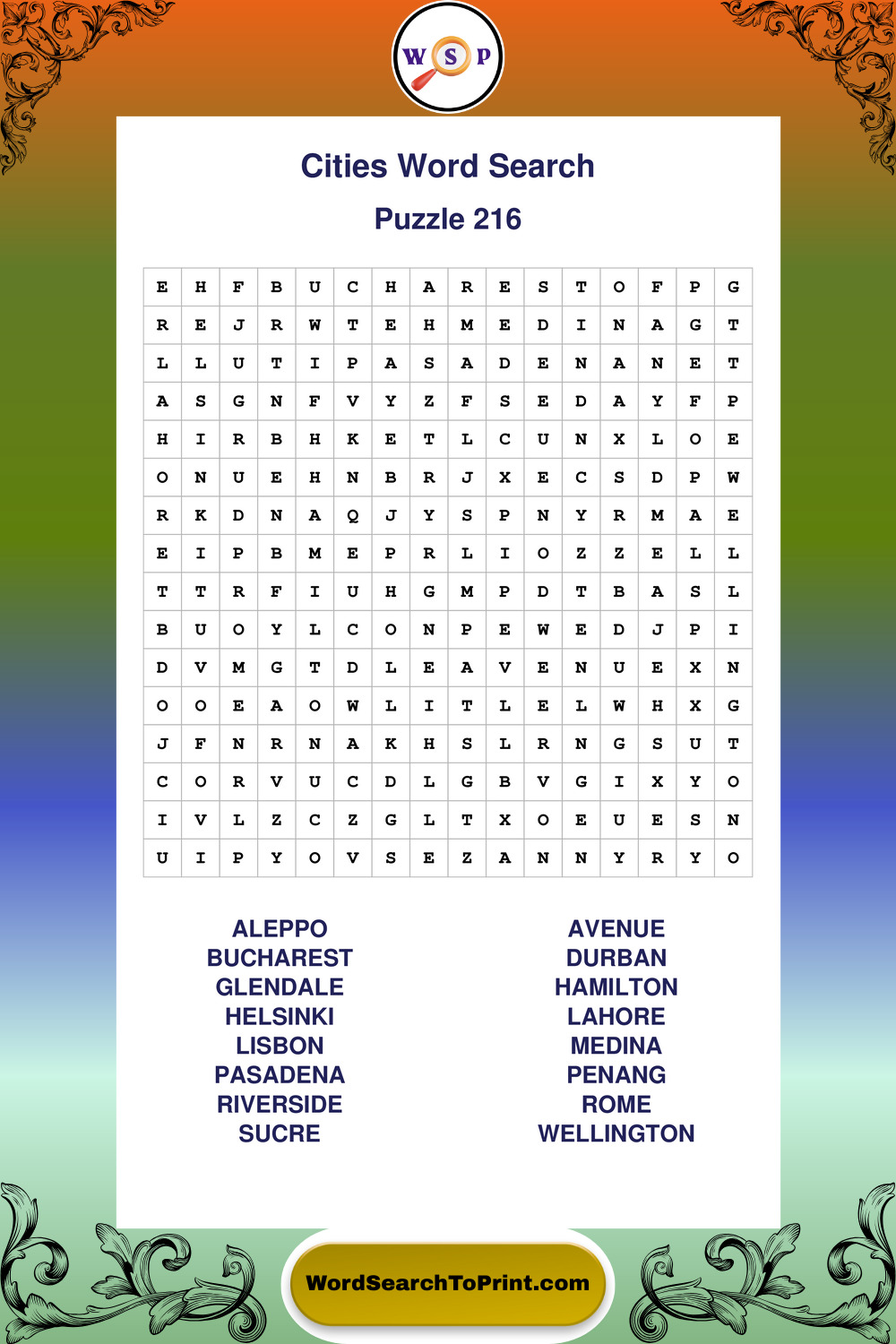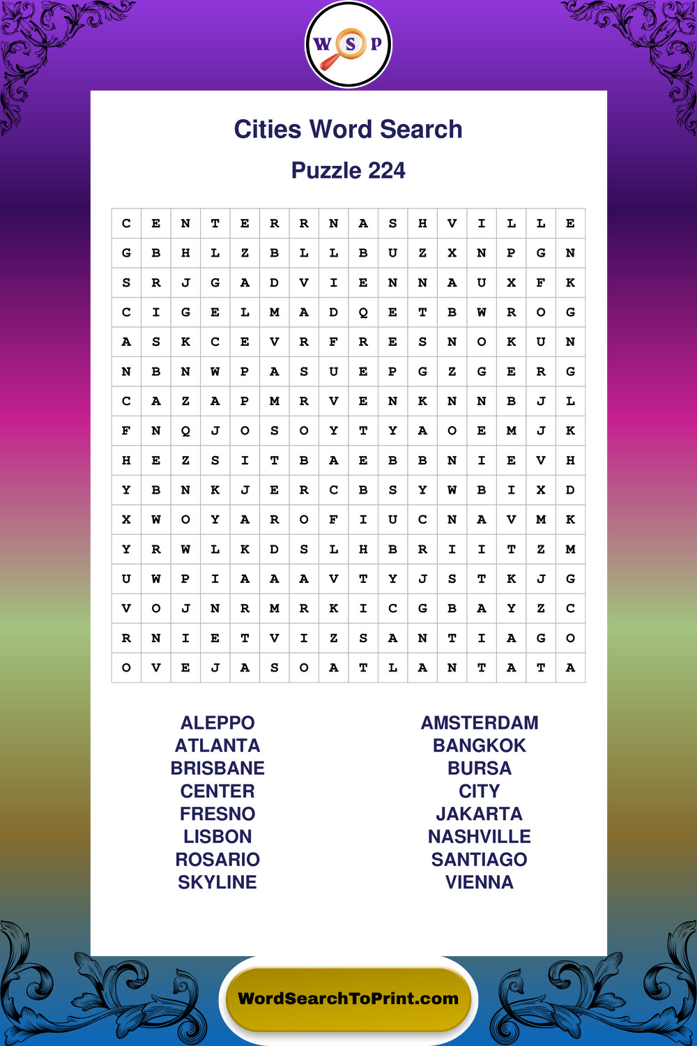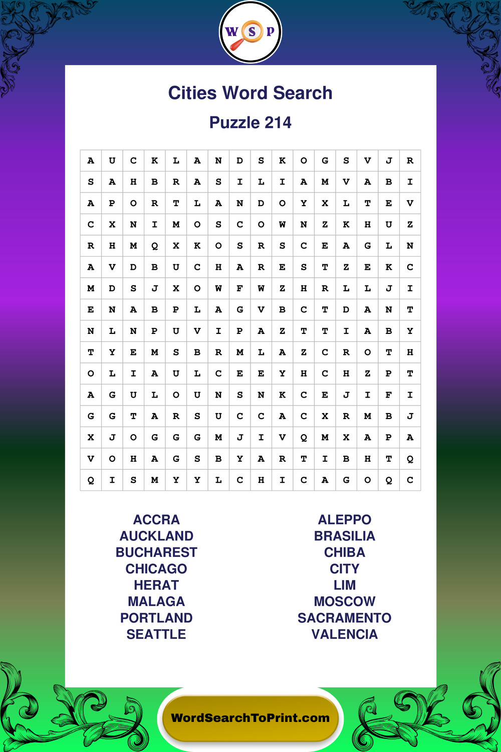 Printable Cities Wordsearch Puzzles