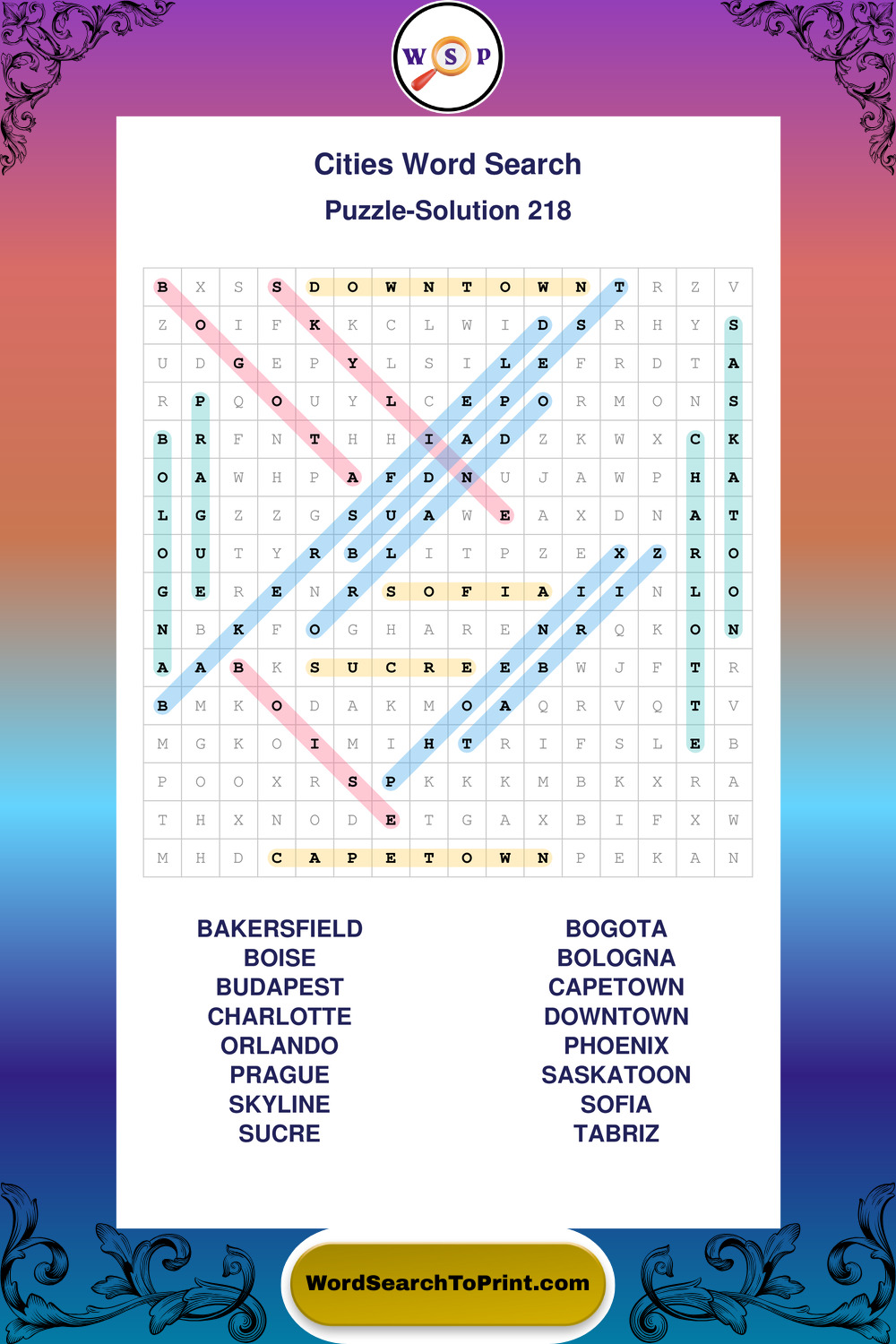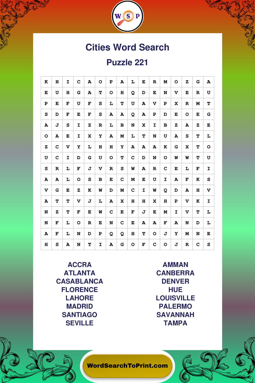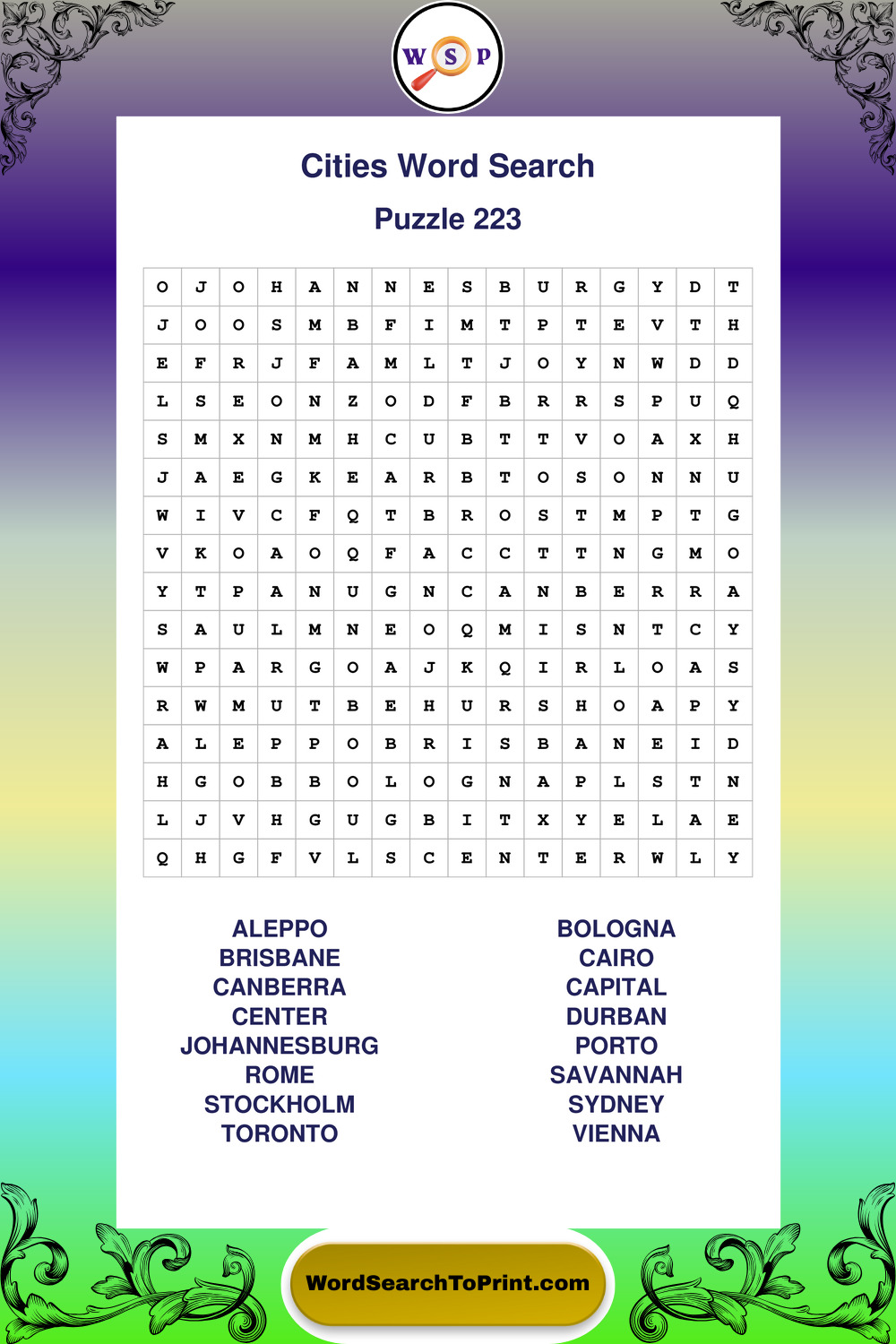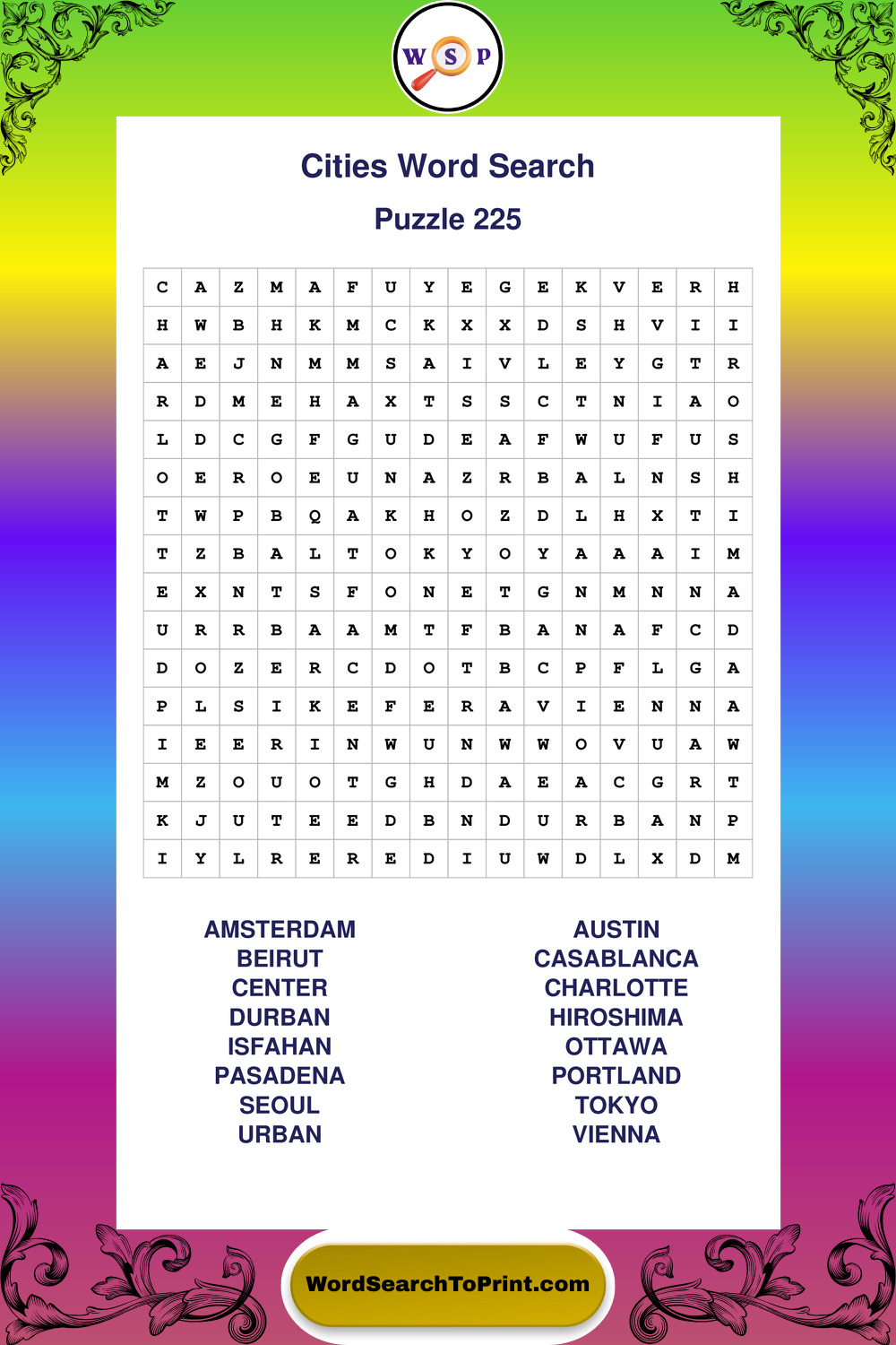 Printable Cities Wordsearch Puzzles