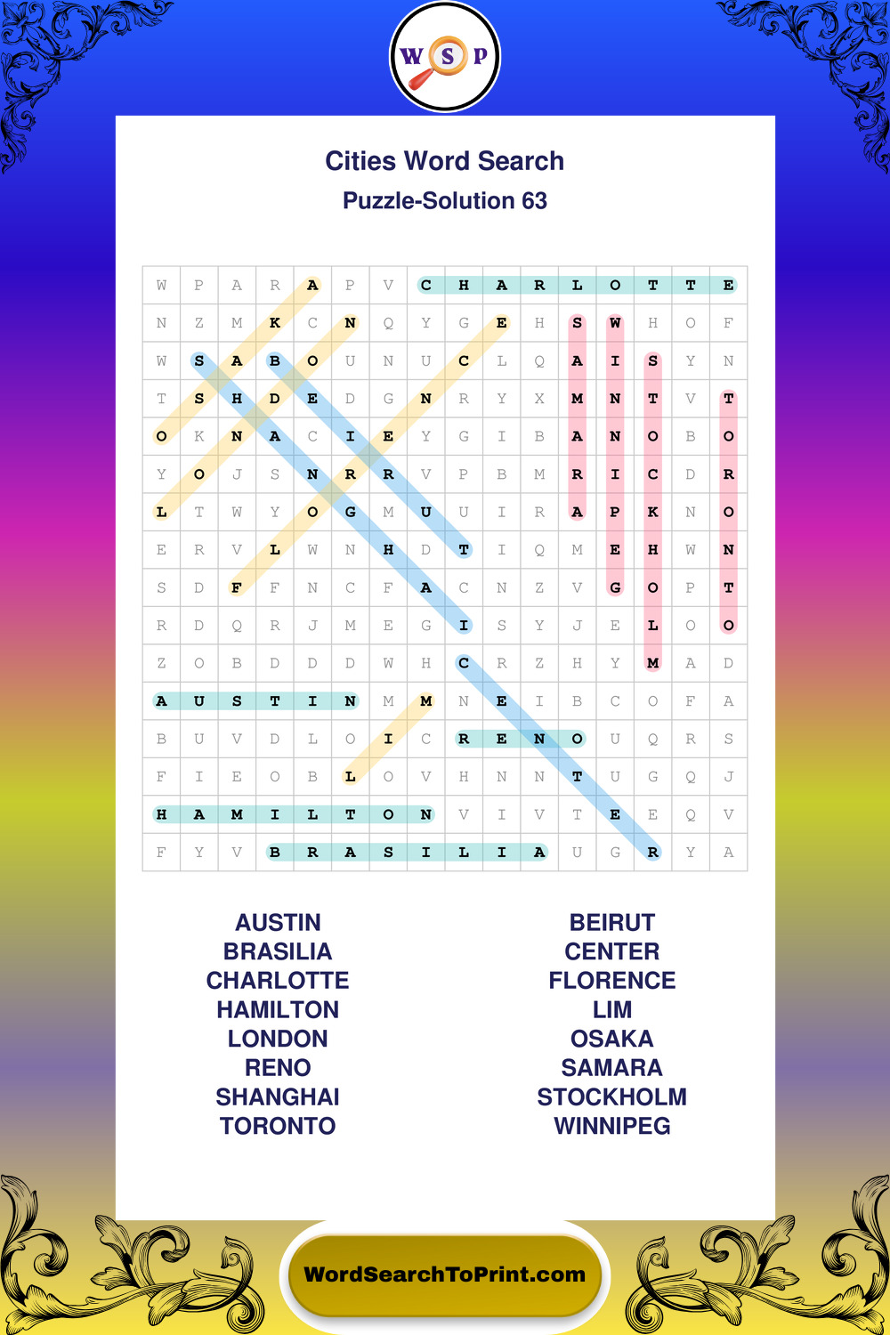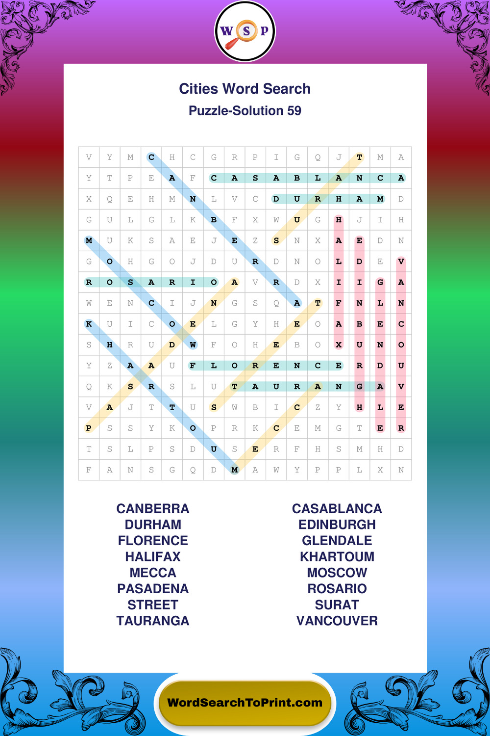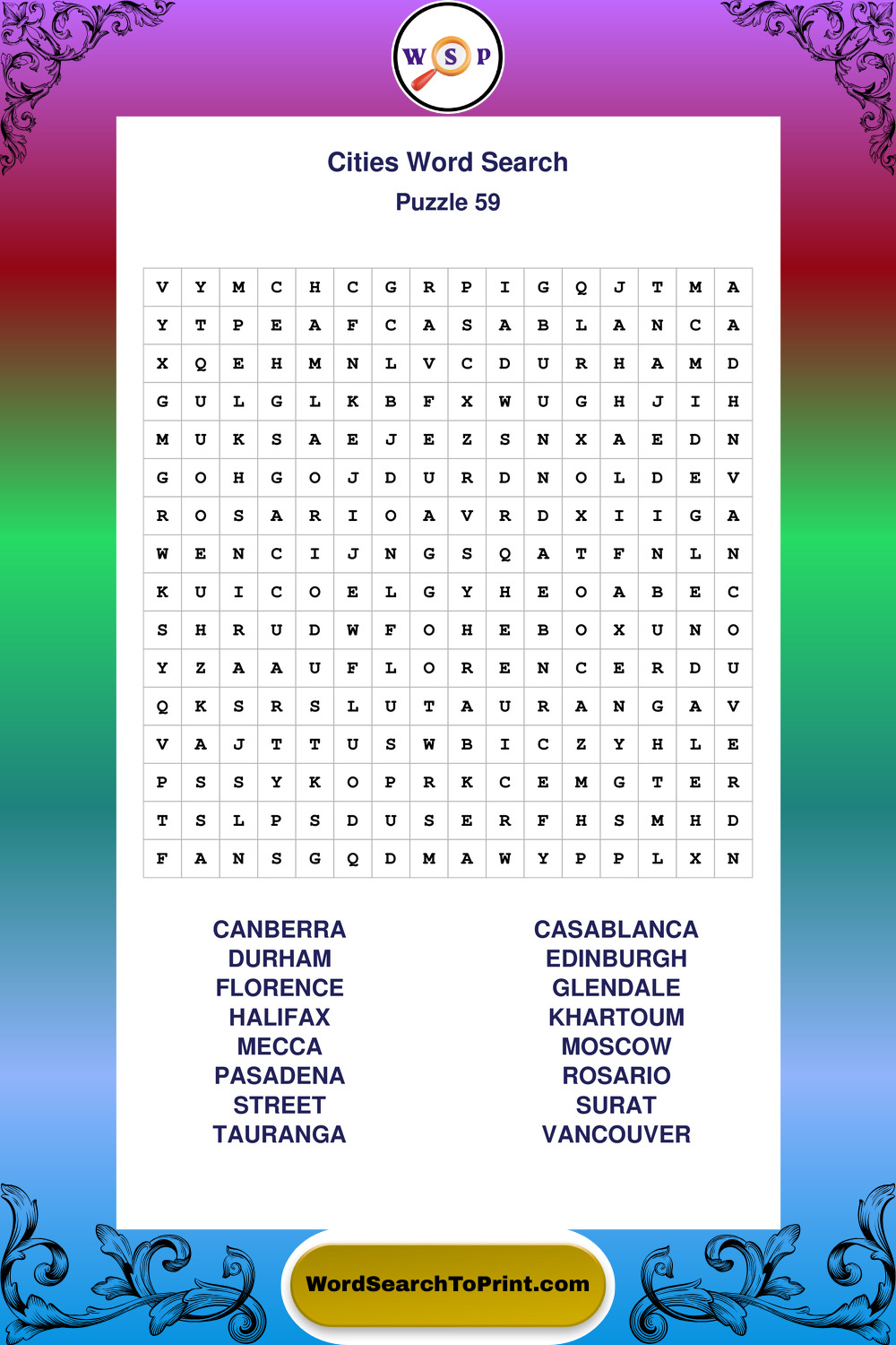 Cities Wordsearches