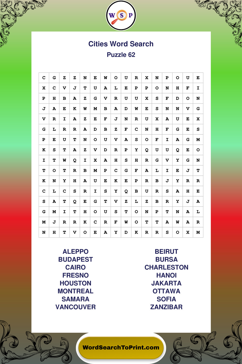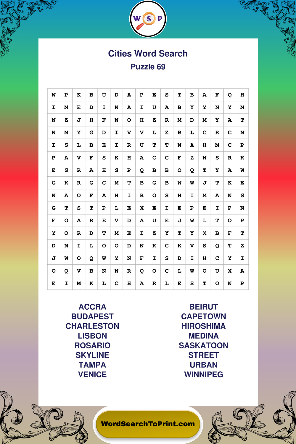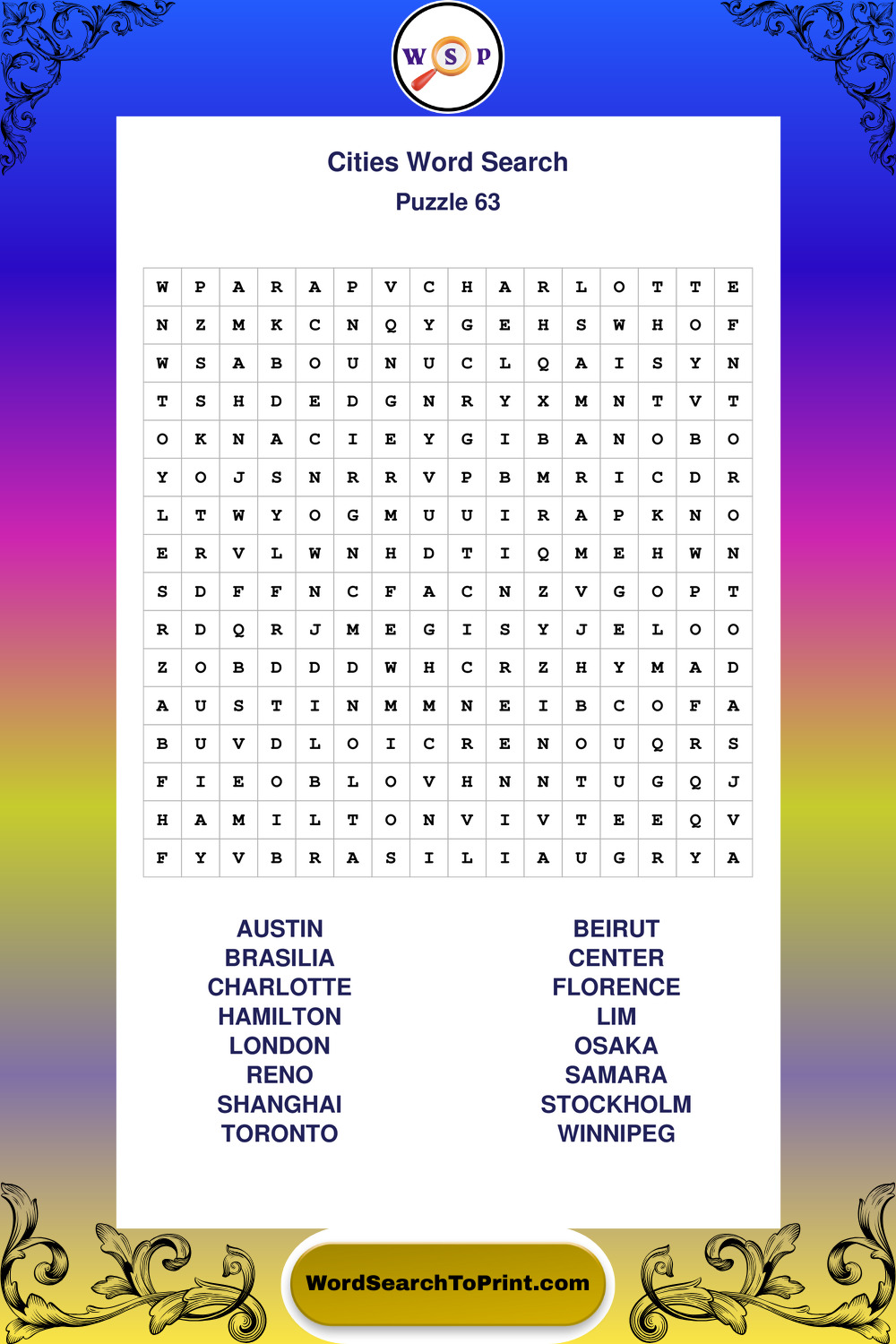 Printable Cities Wordsearch Puzzles