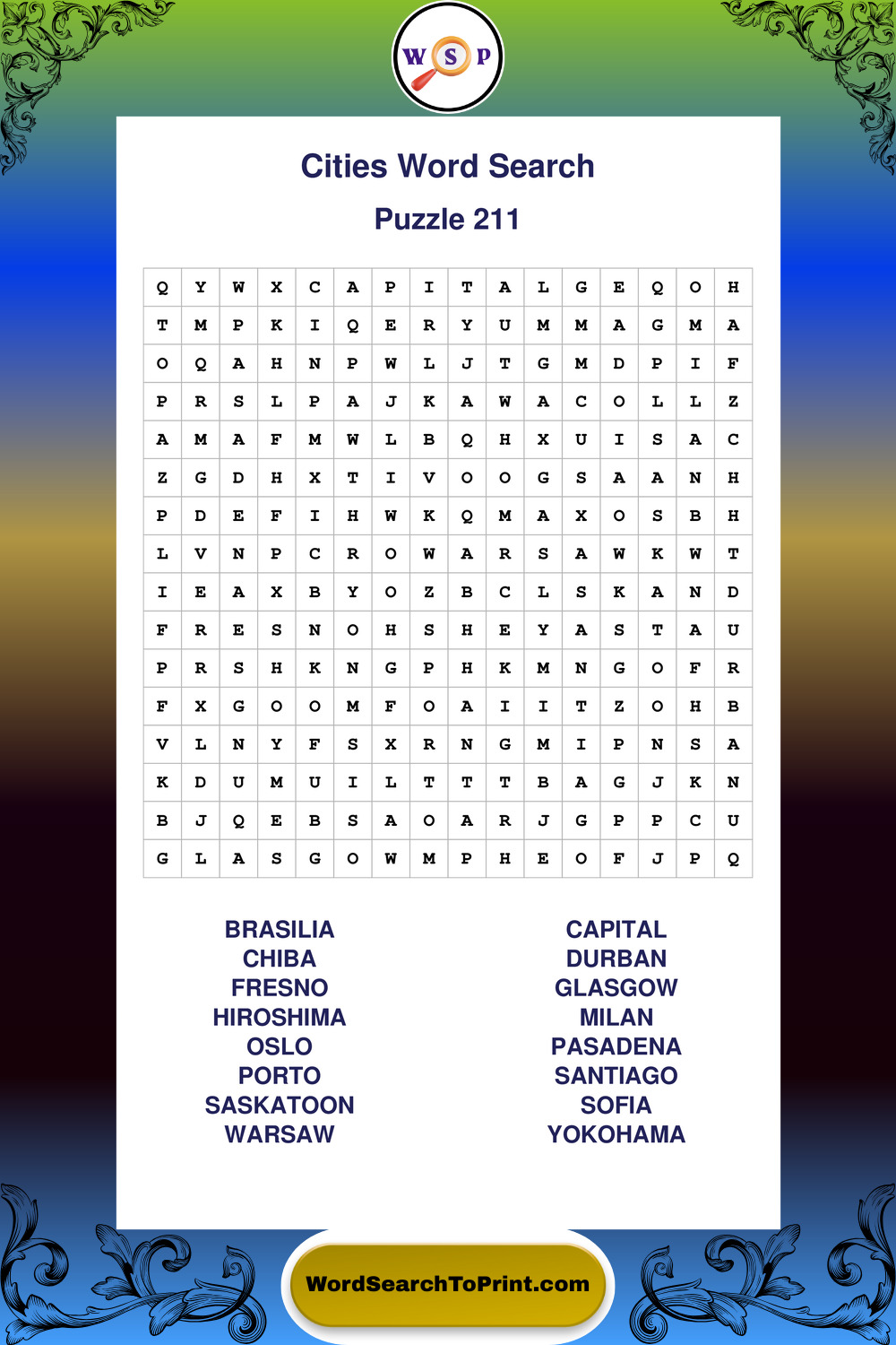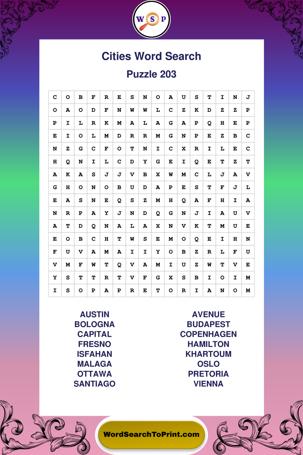 Printable Cities Wordsearch Puzzles