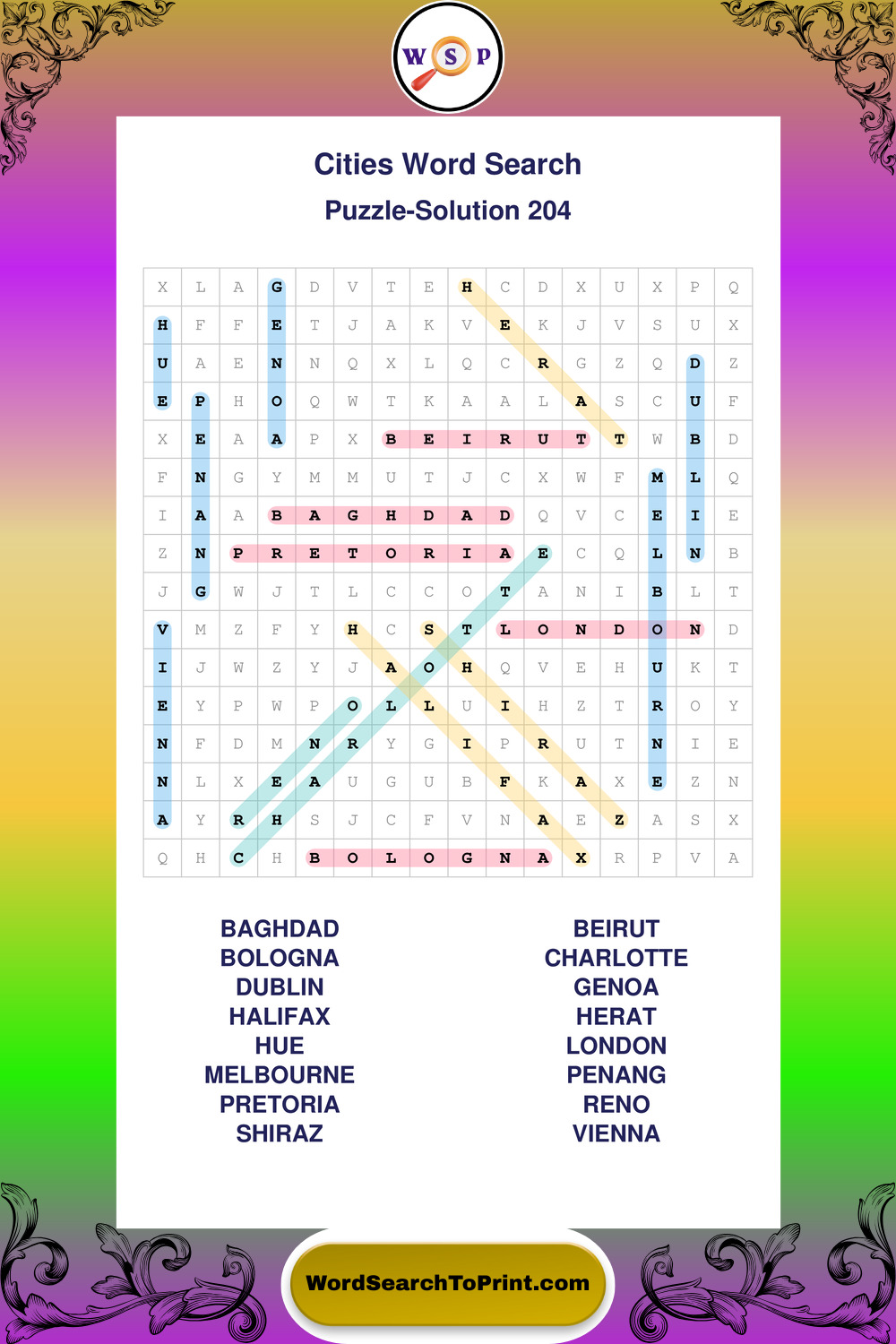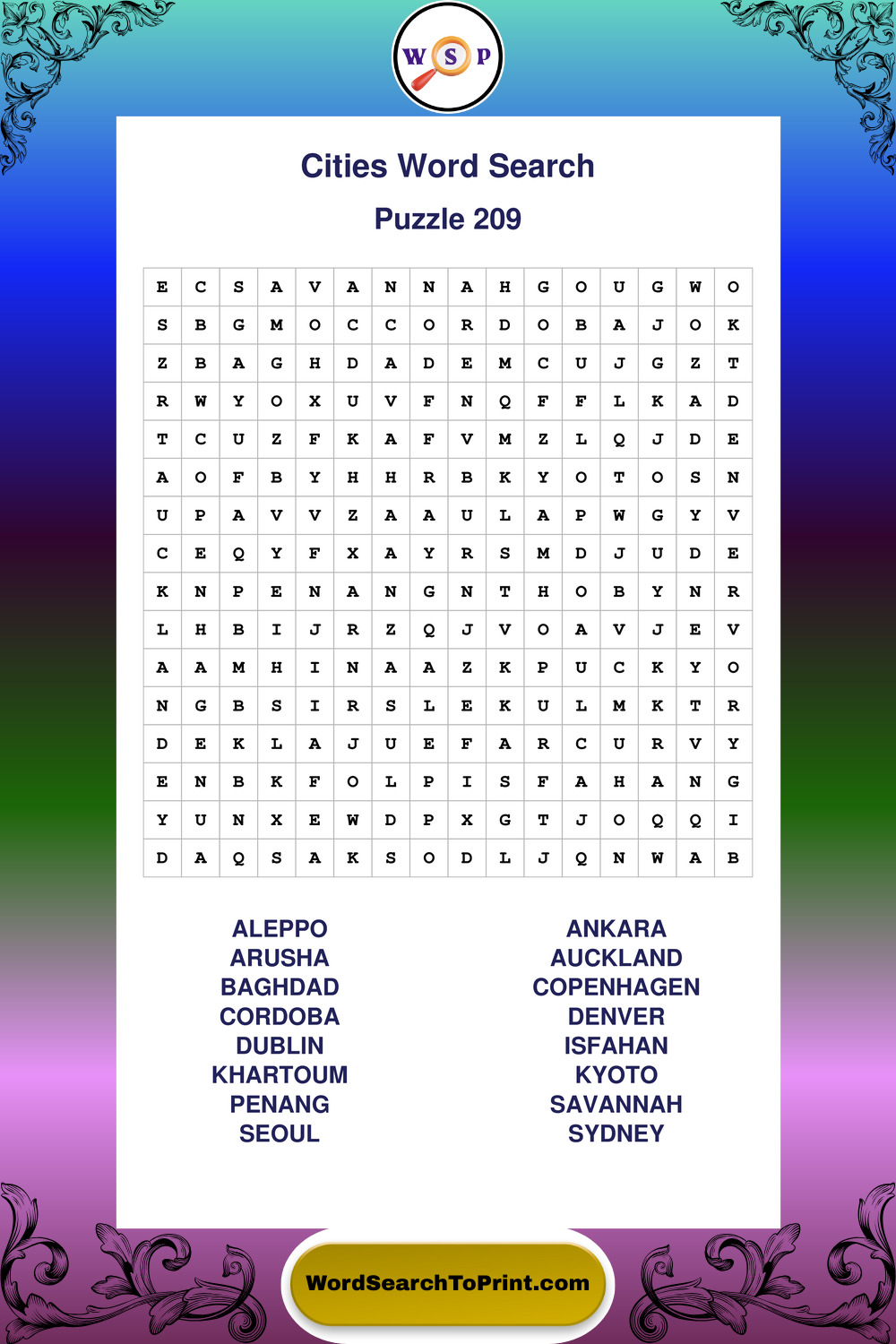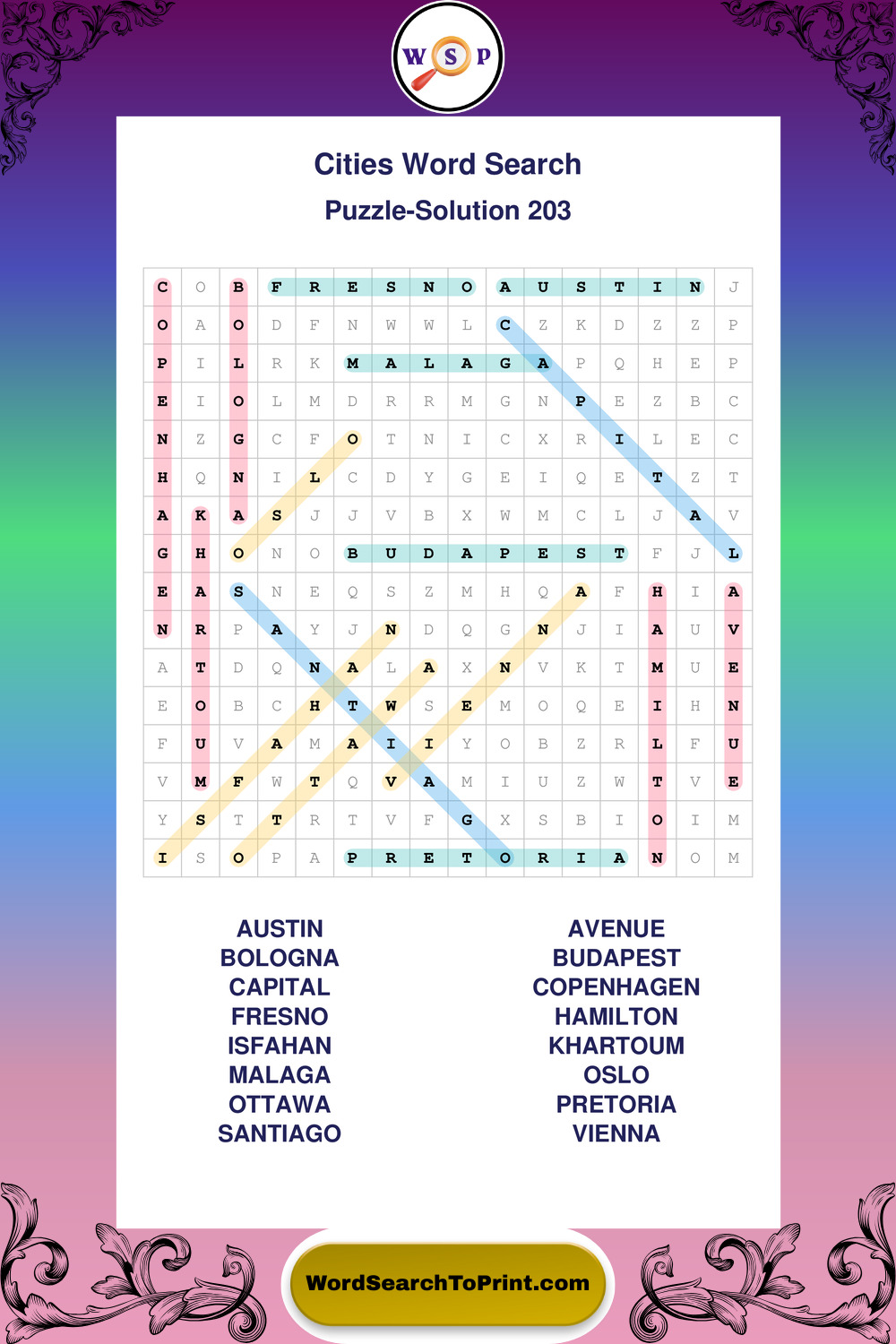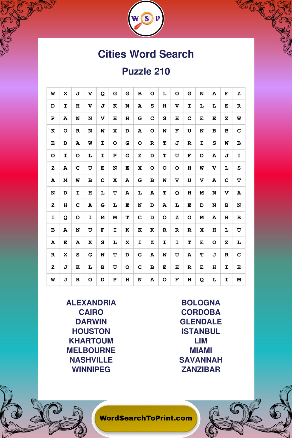 Cities Wordsearches