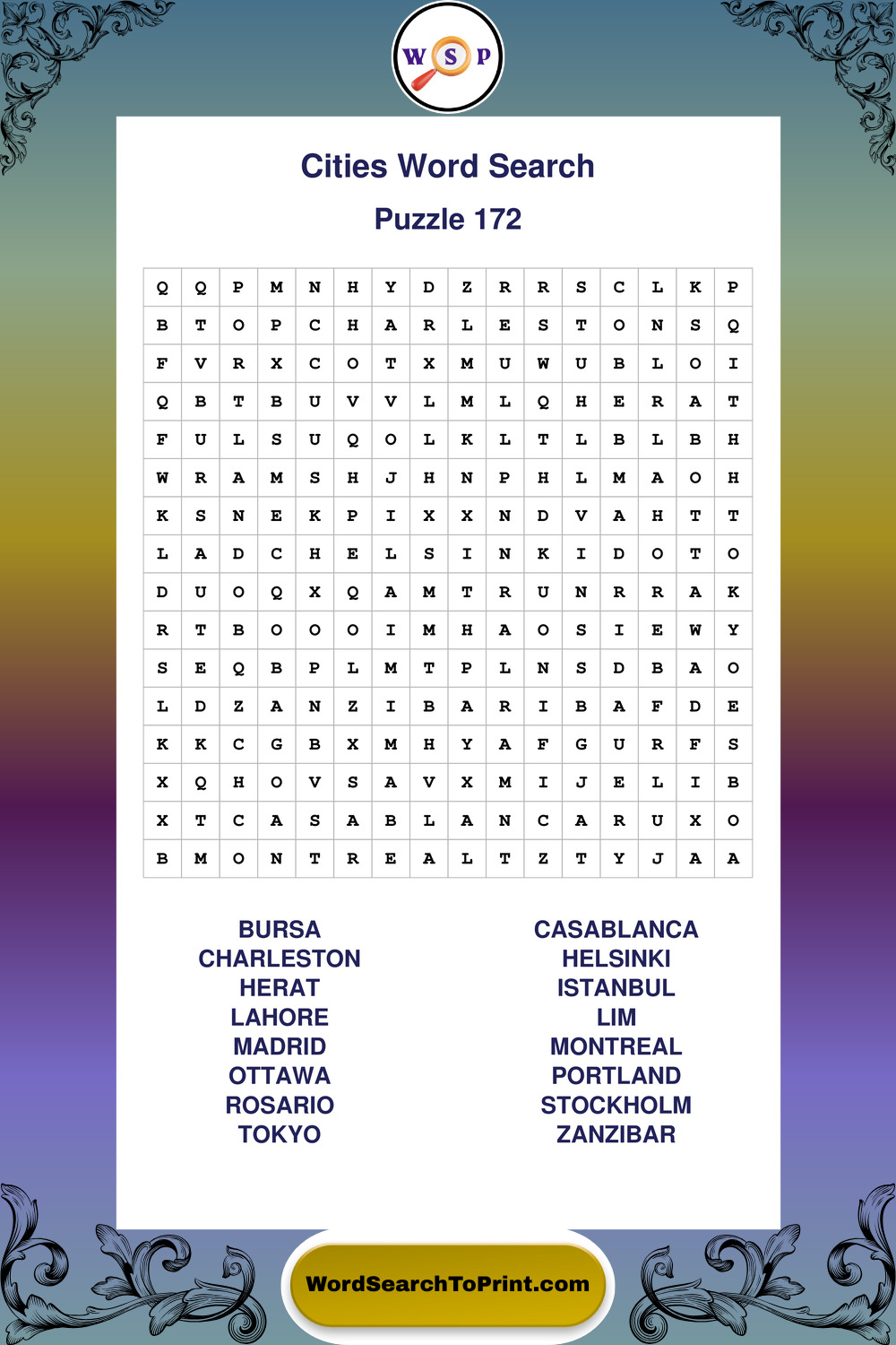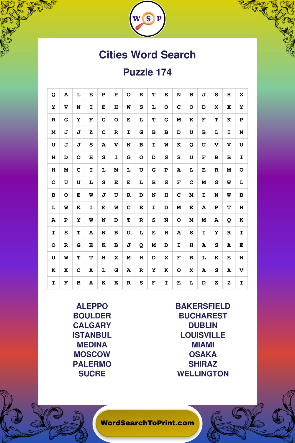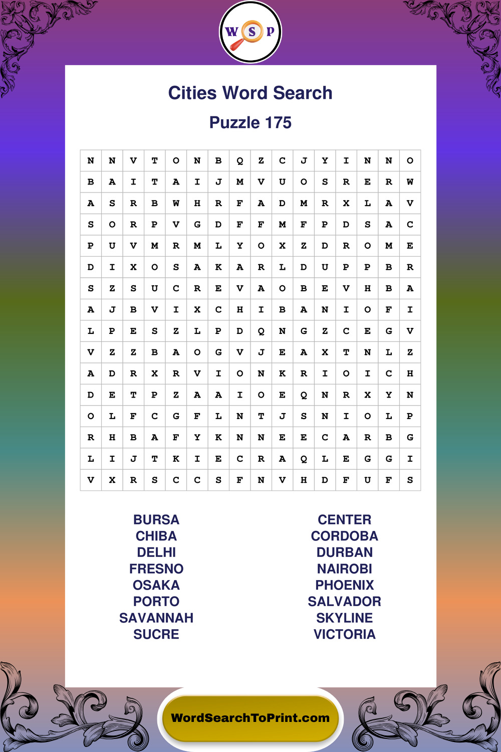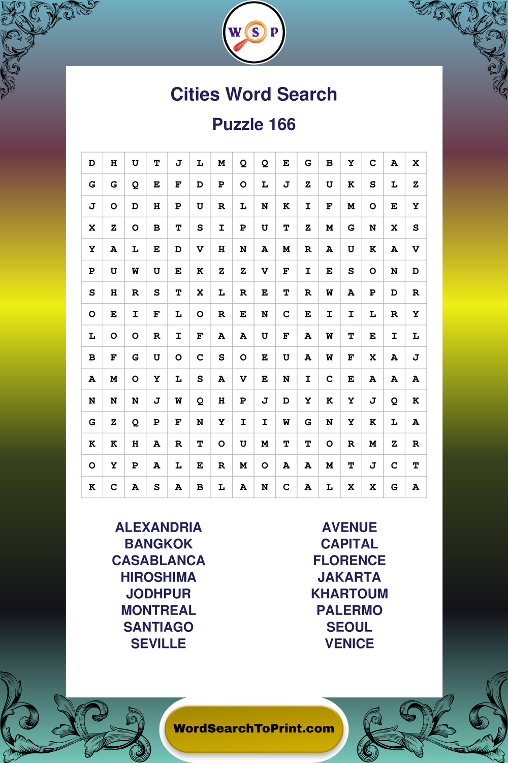 Enjoy large print Cities wordsearches that balance clarity, simplicity, and enjoyable mental activity.