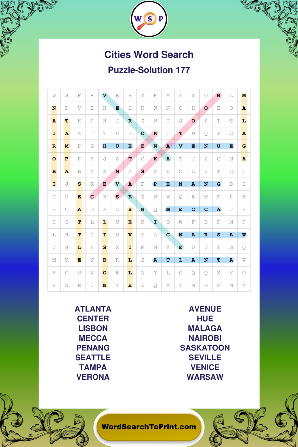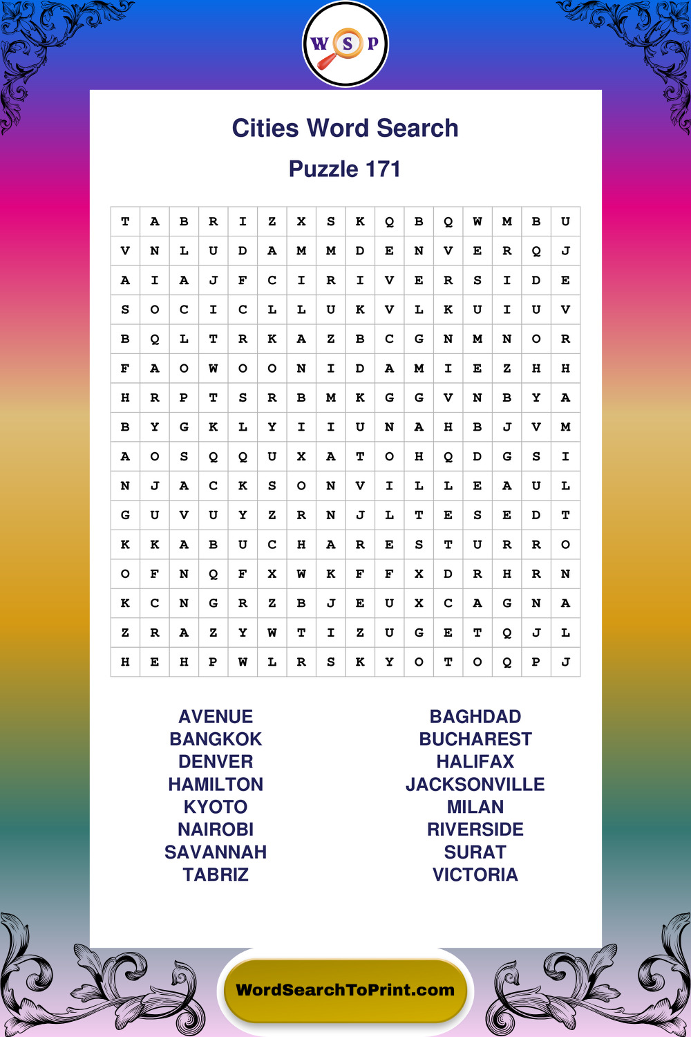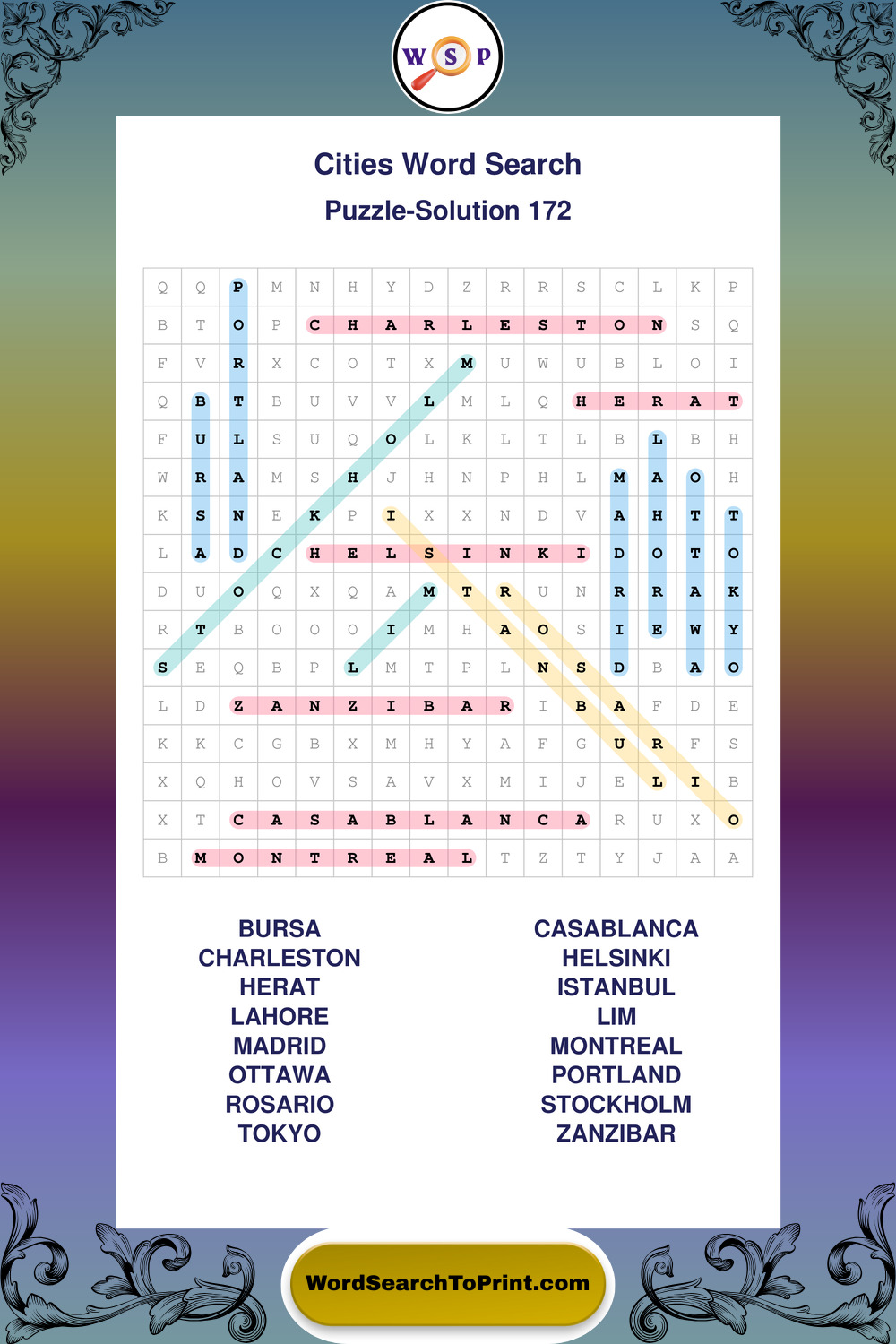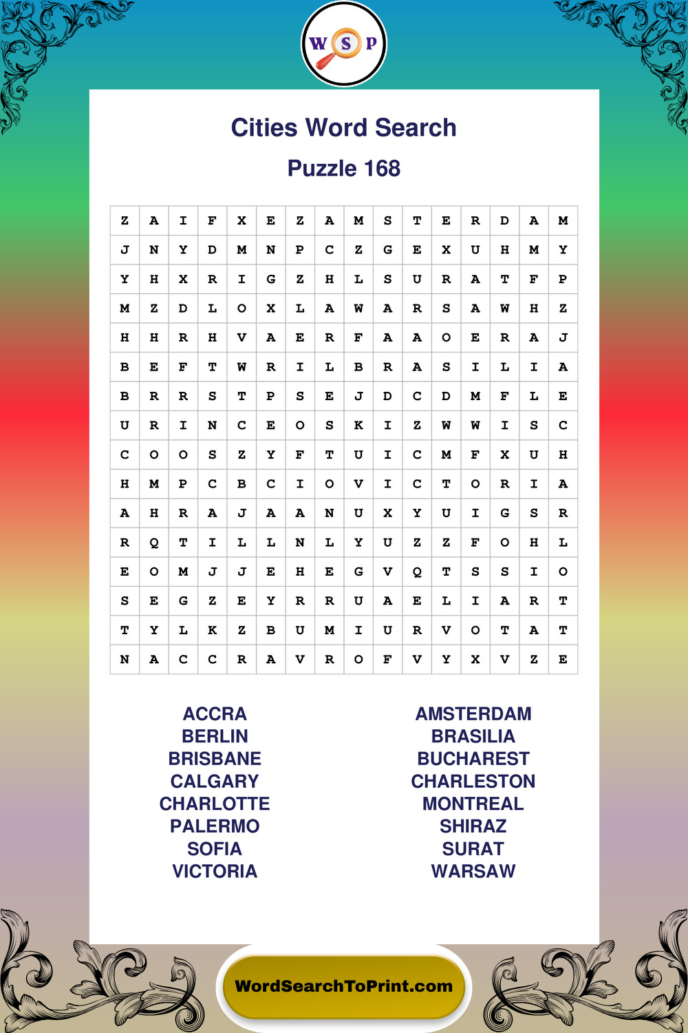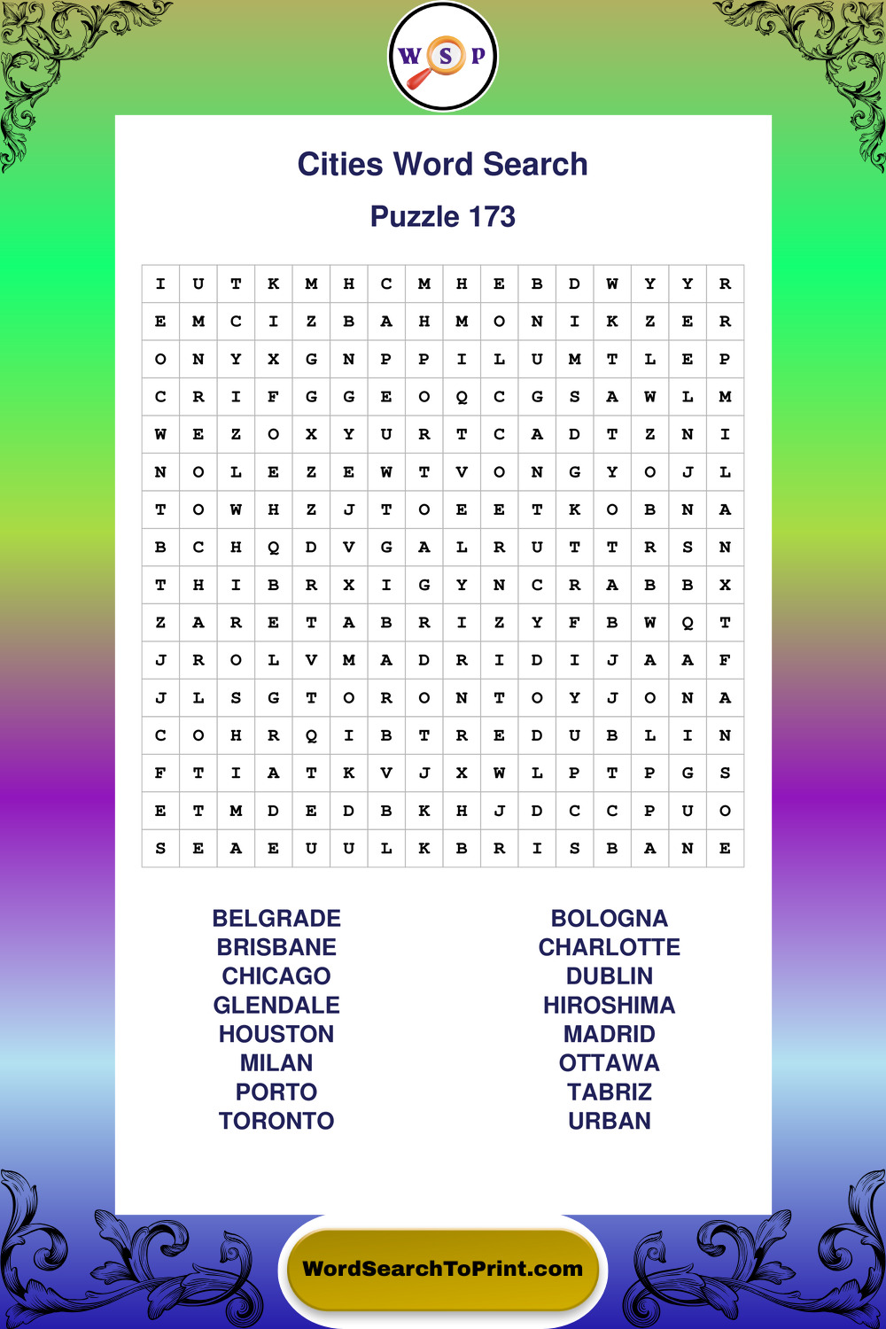 Enjoy large print Cities wordsearches that balance clarity, simplicity, and enjoyable mental activity.