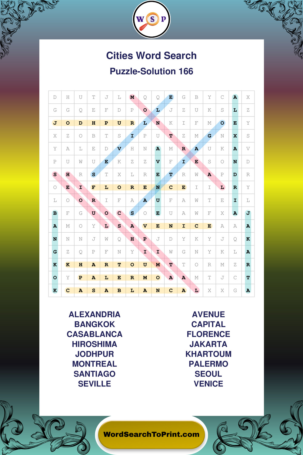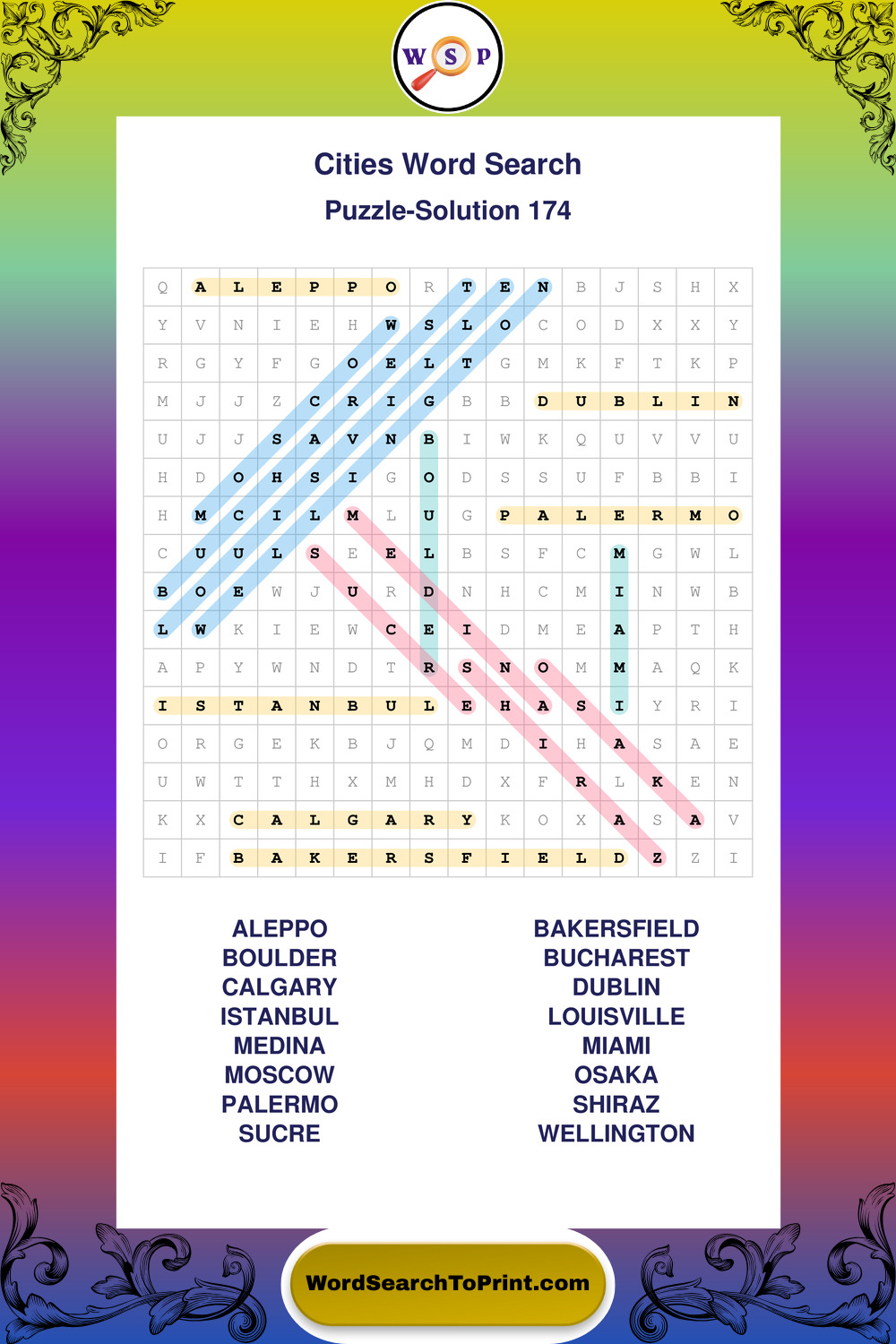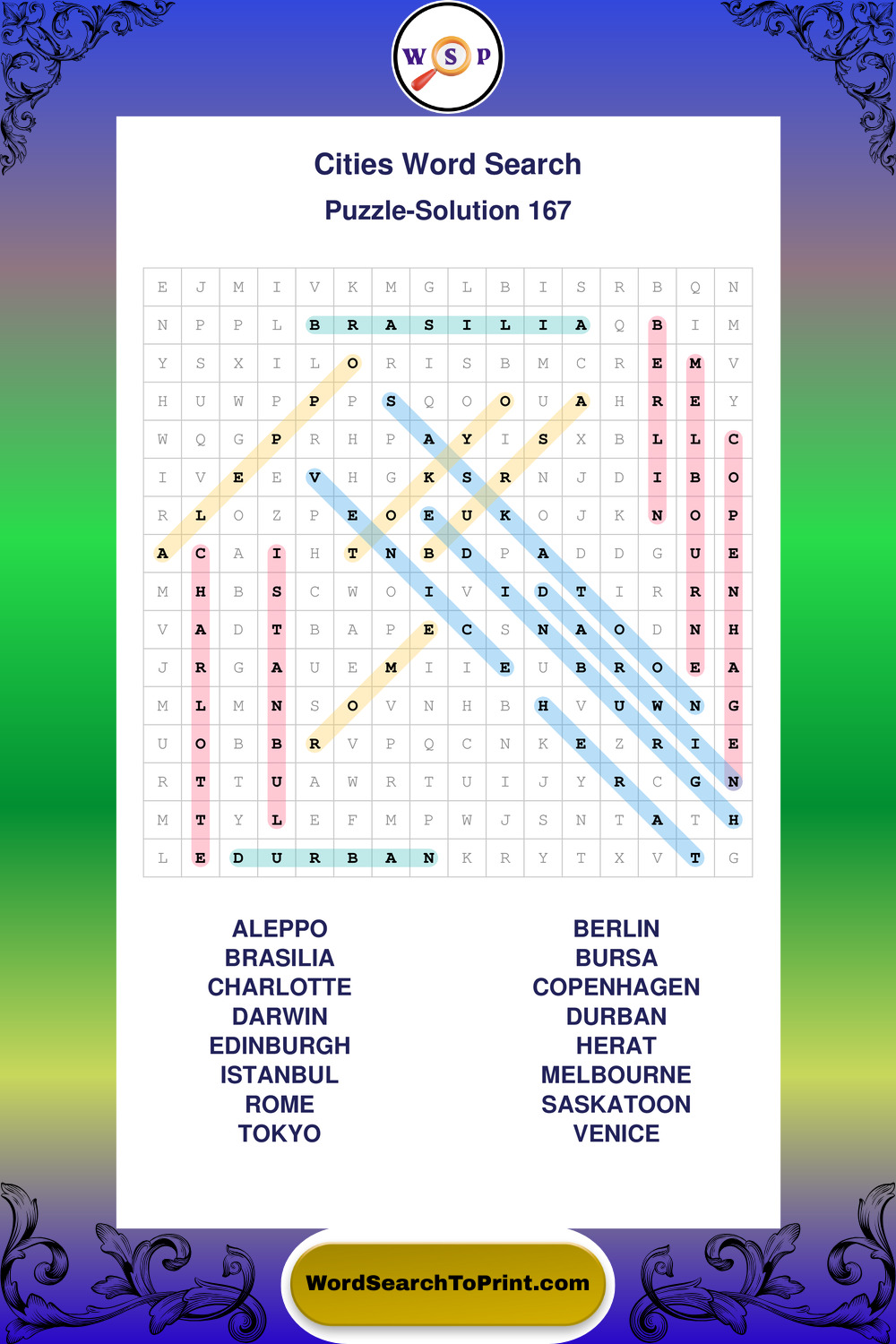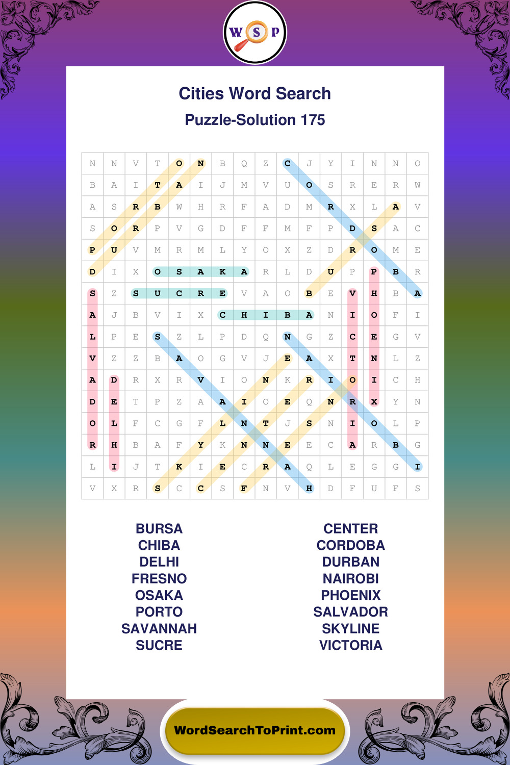 Enjoy large print Cities wordsearches that balance clarity, simplicity, and enjoyable mental activity.