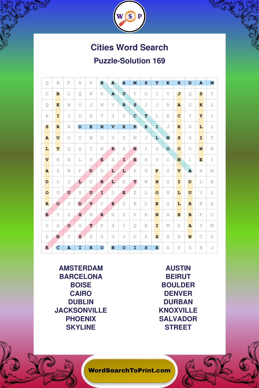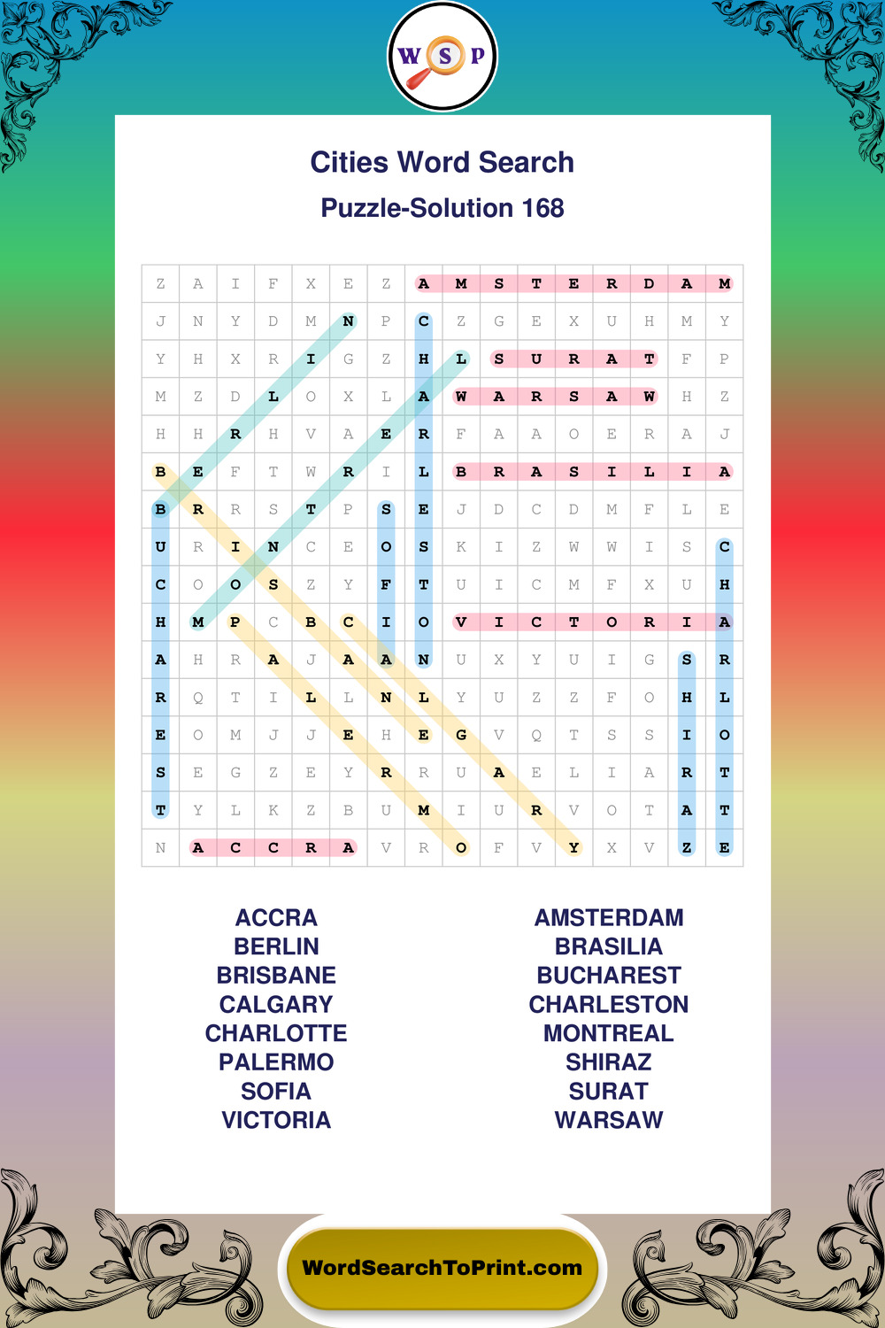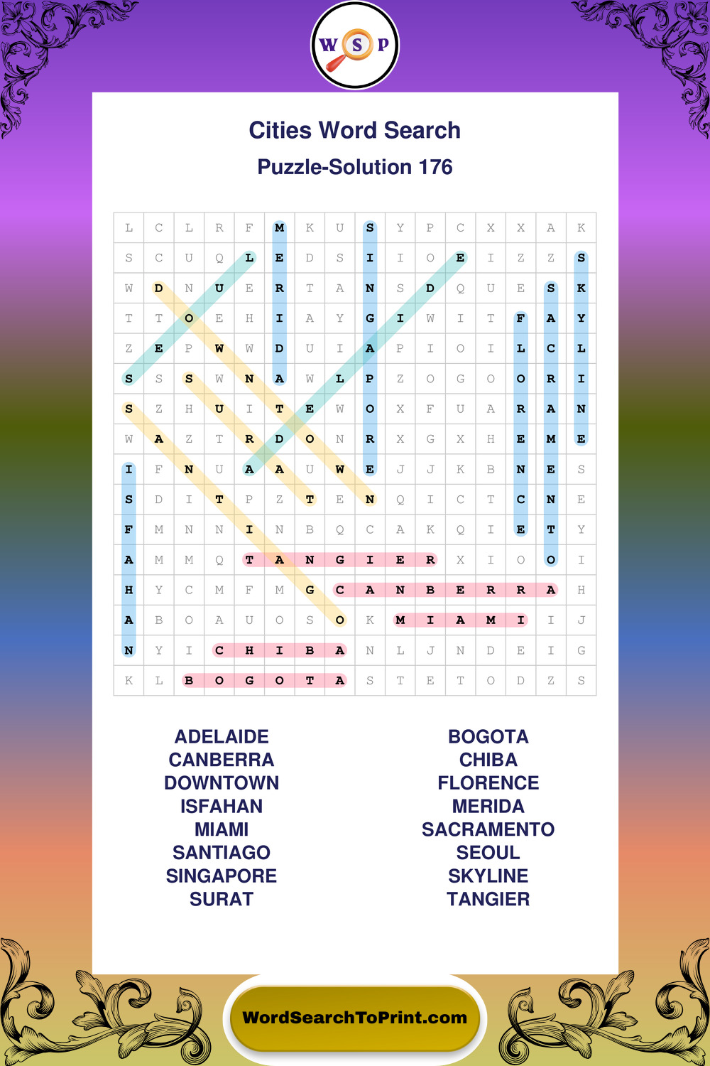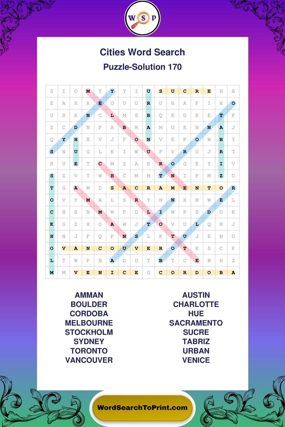 Enjoy large print Cities wordsearches that balance clarity, simplicity, and enjoyable mental activity.