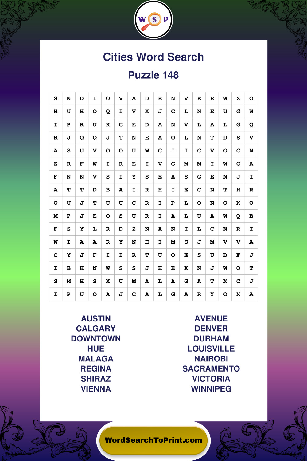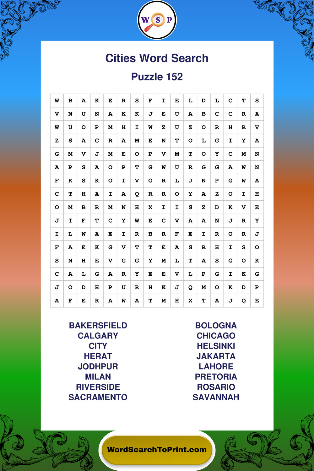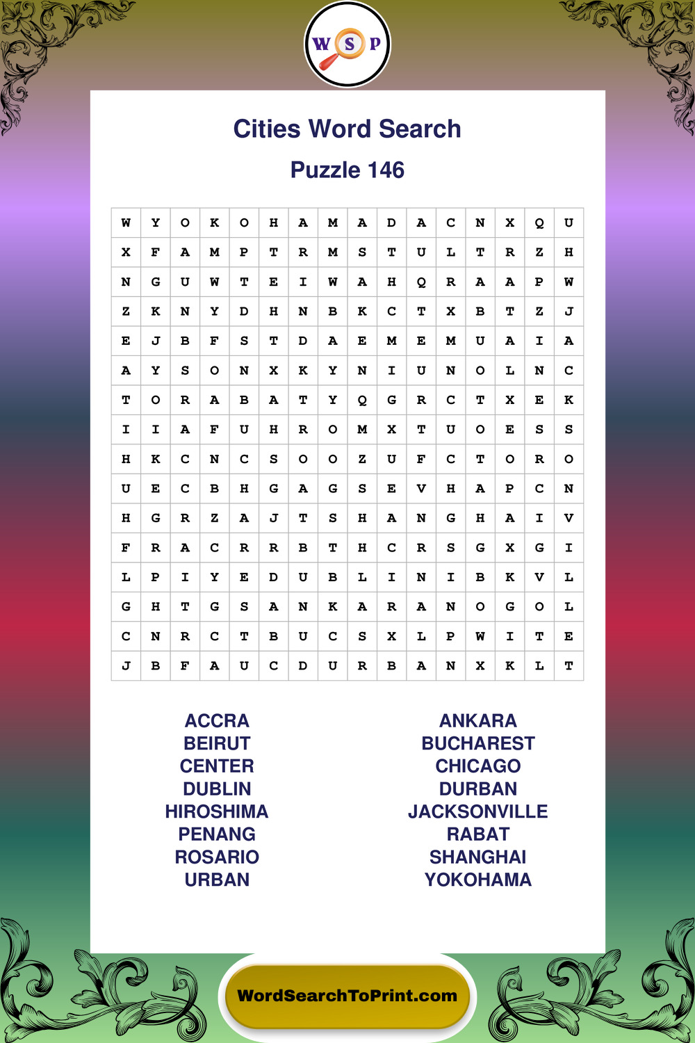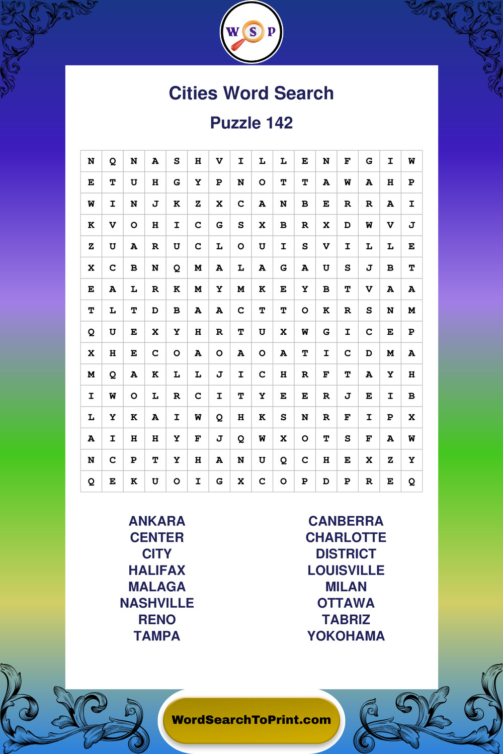 Printable Cities Wordsearch Puzzles