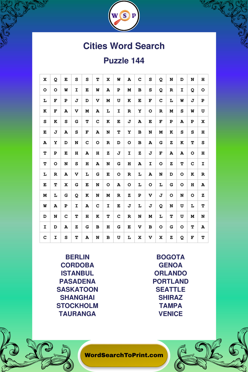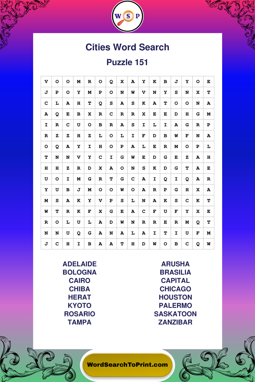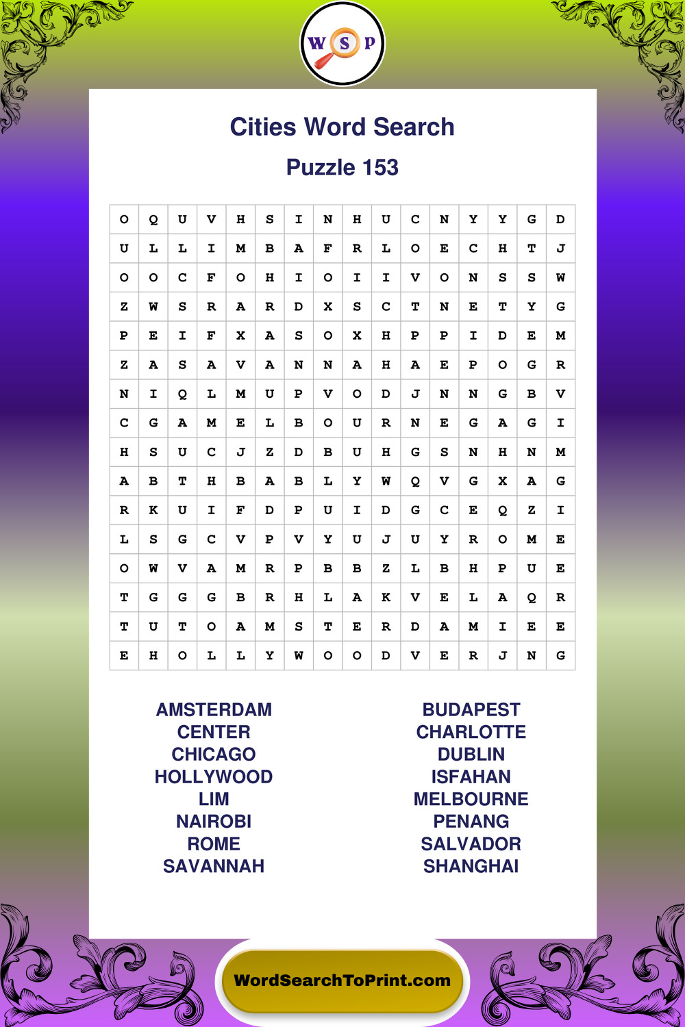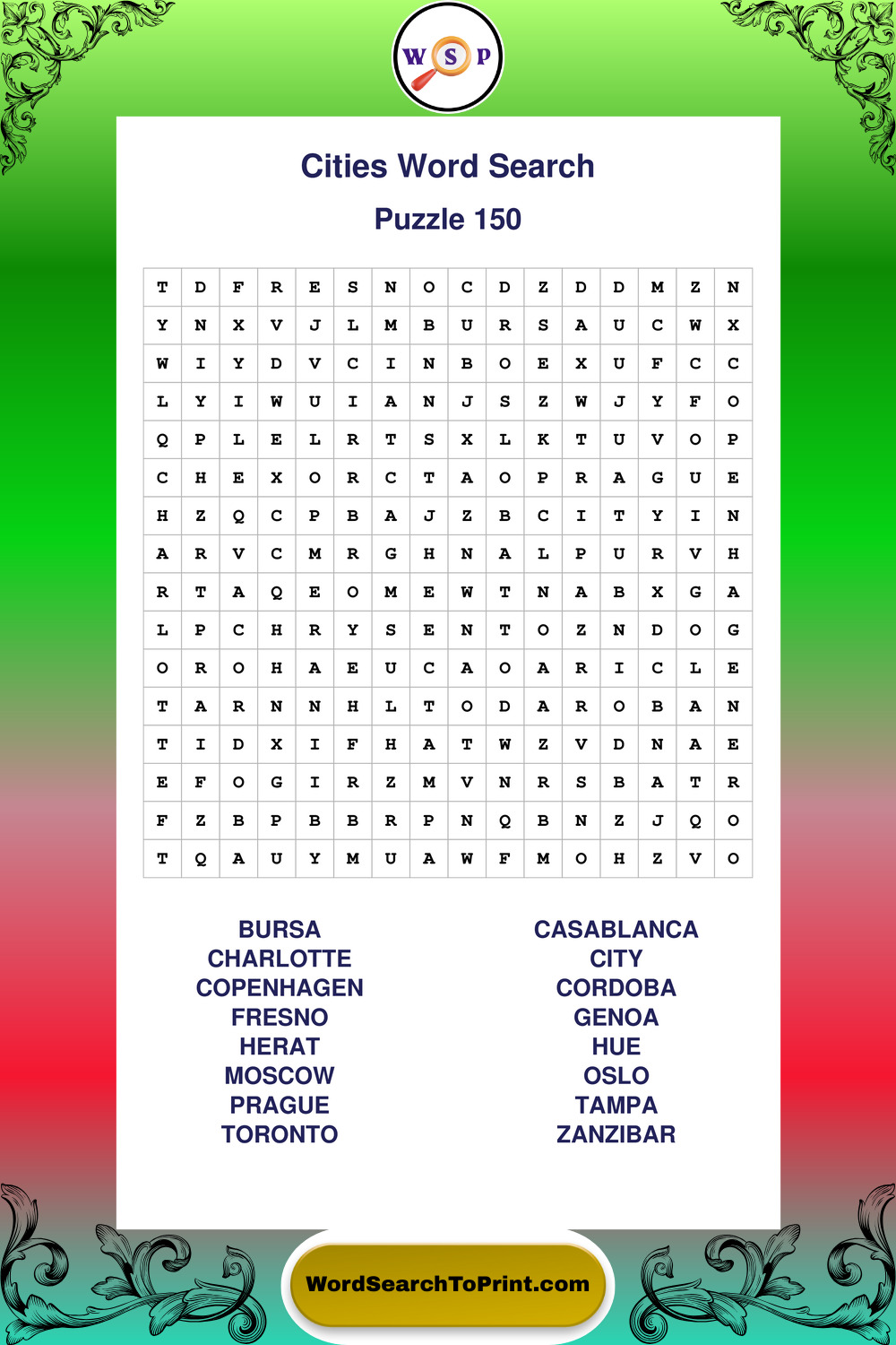 Cities Wordsearches