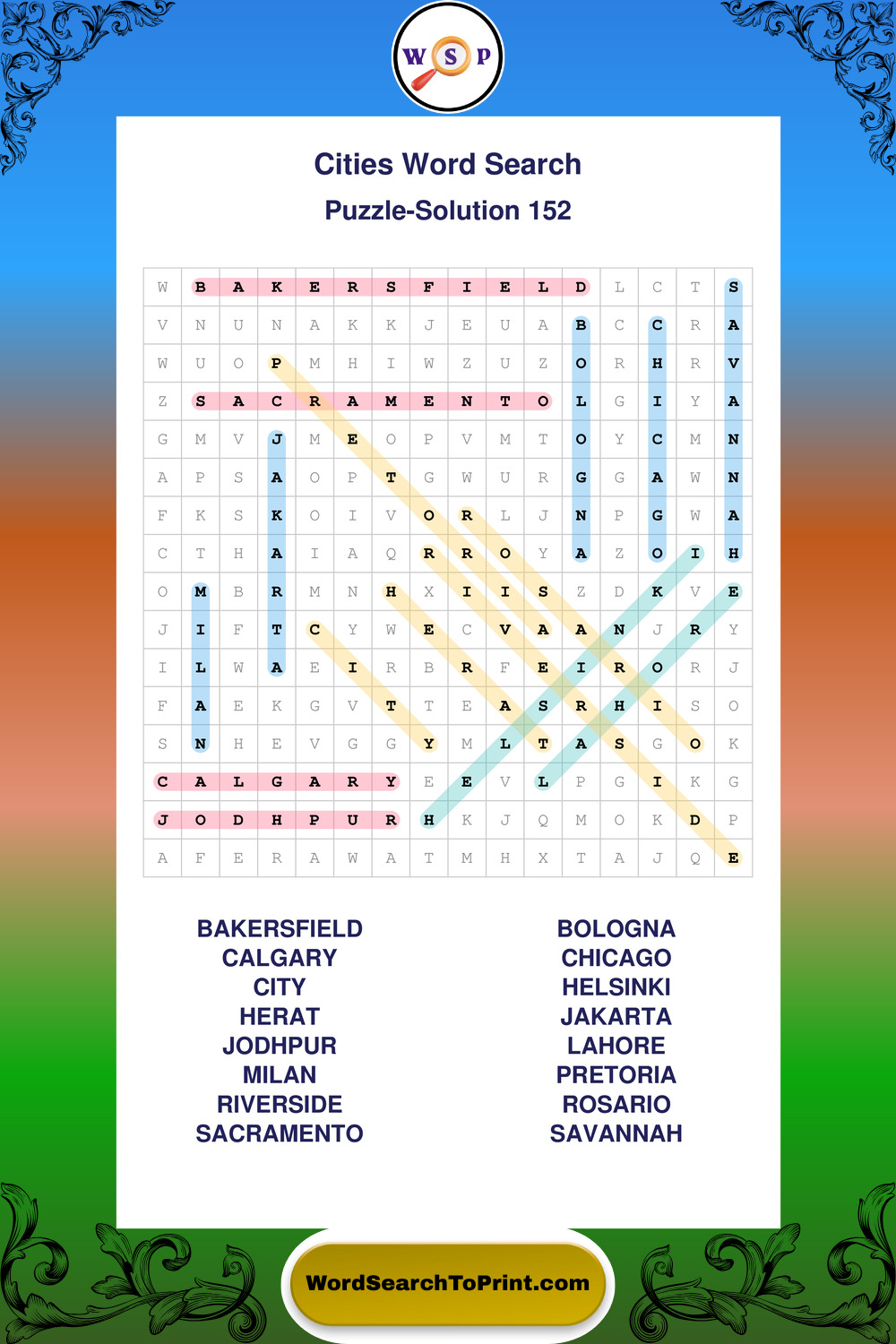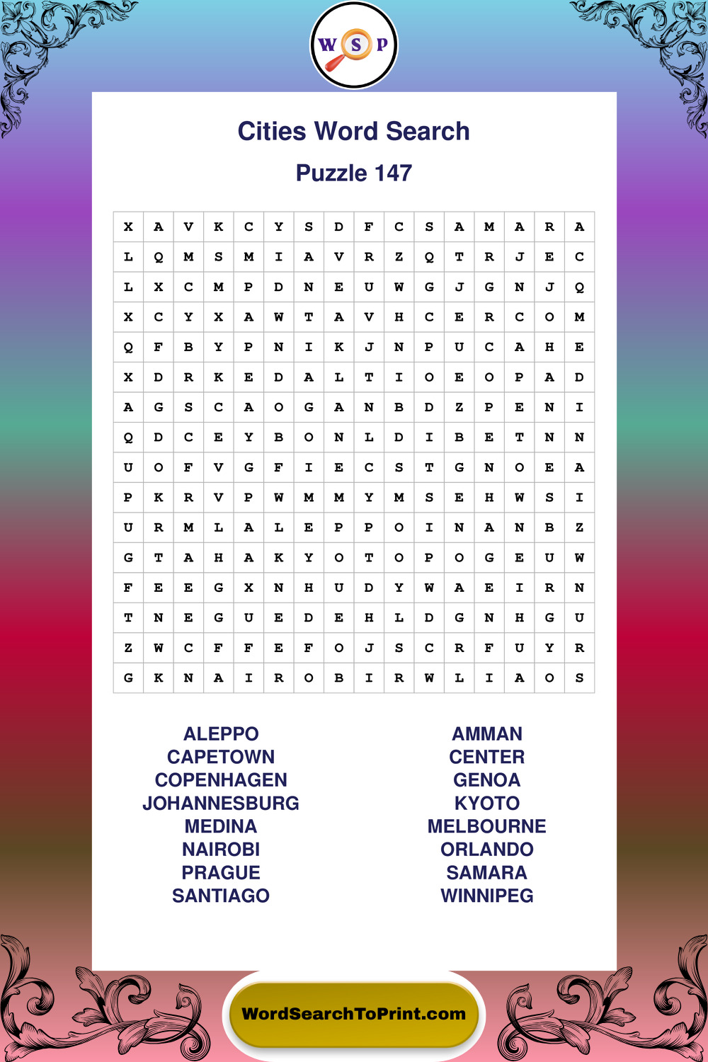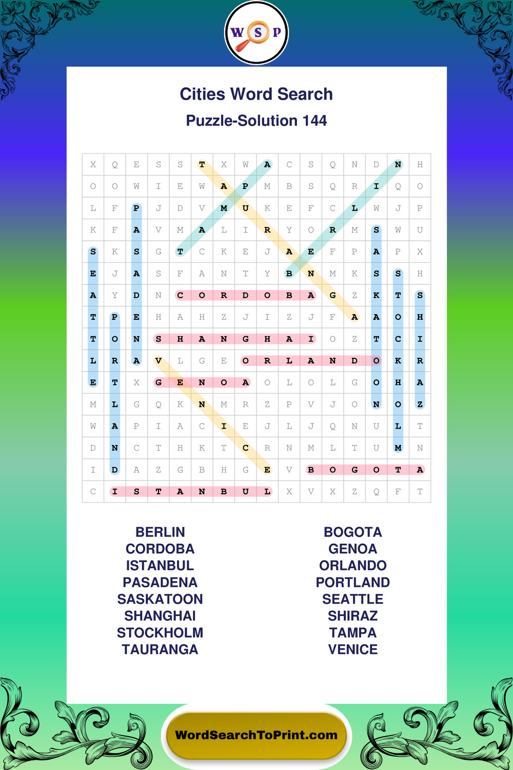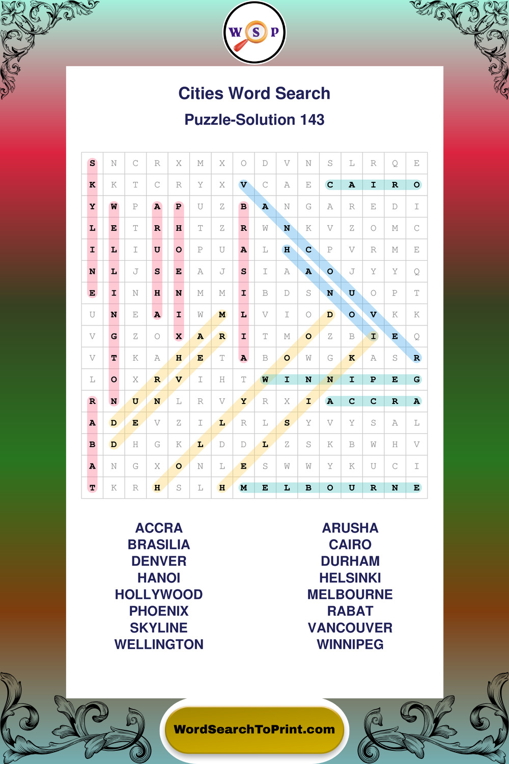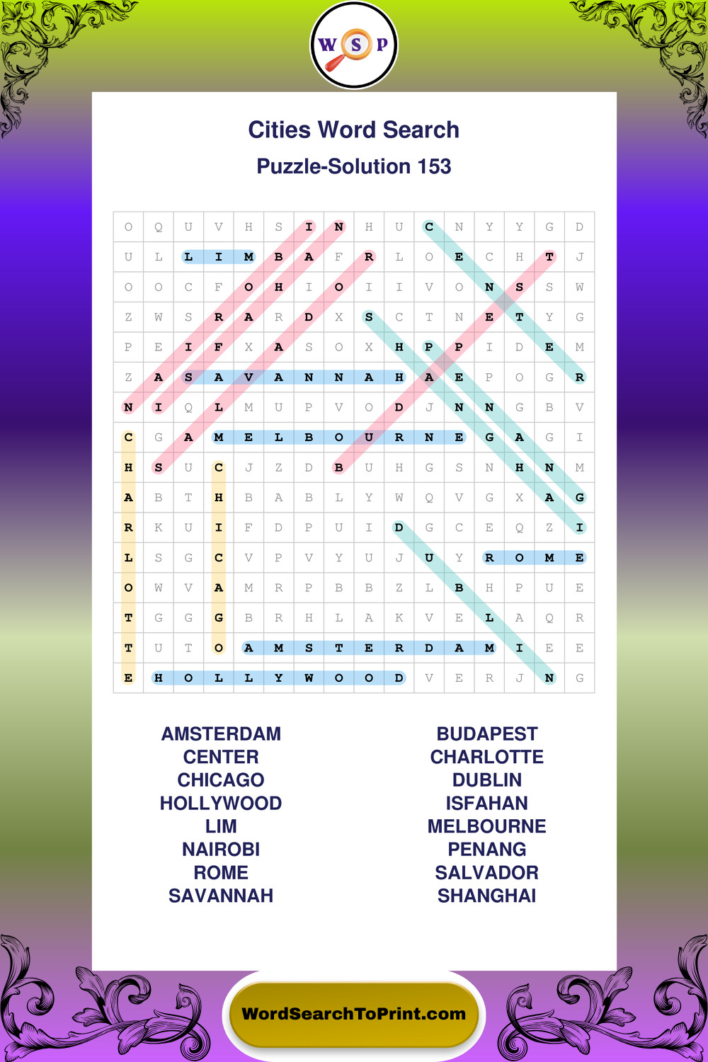 Cities Wordsearches