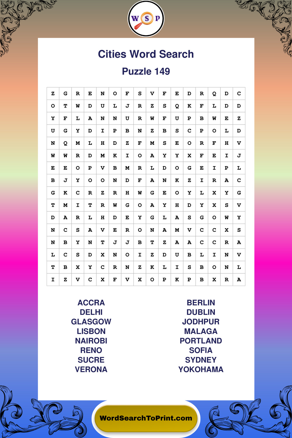 Free Large Print Cities Wordsearches