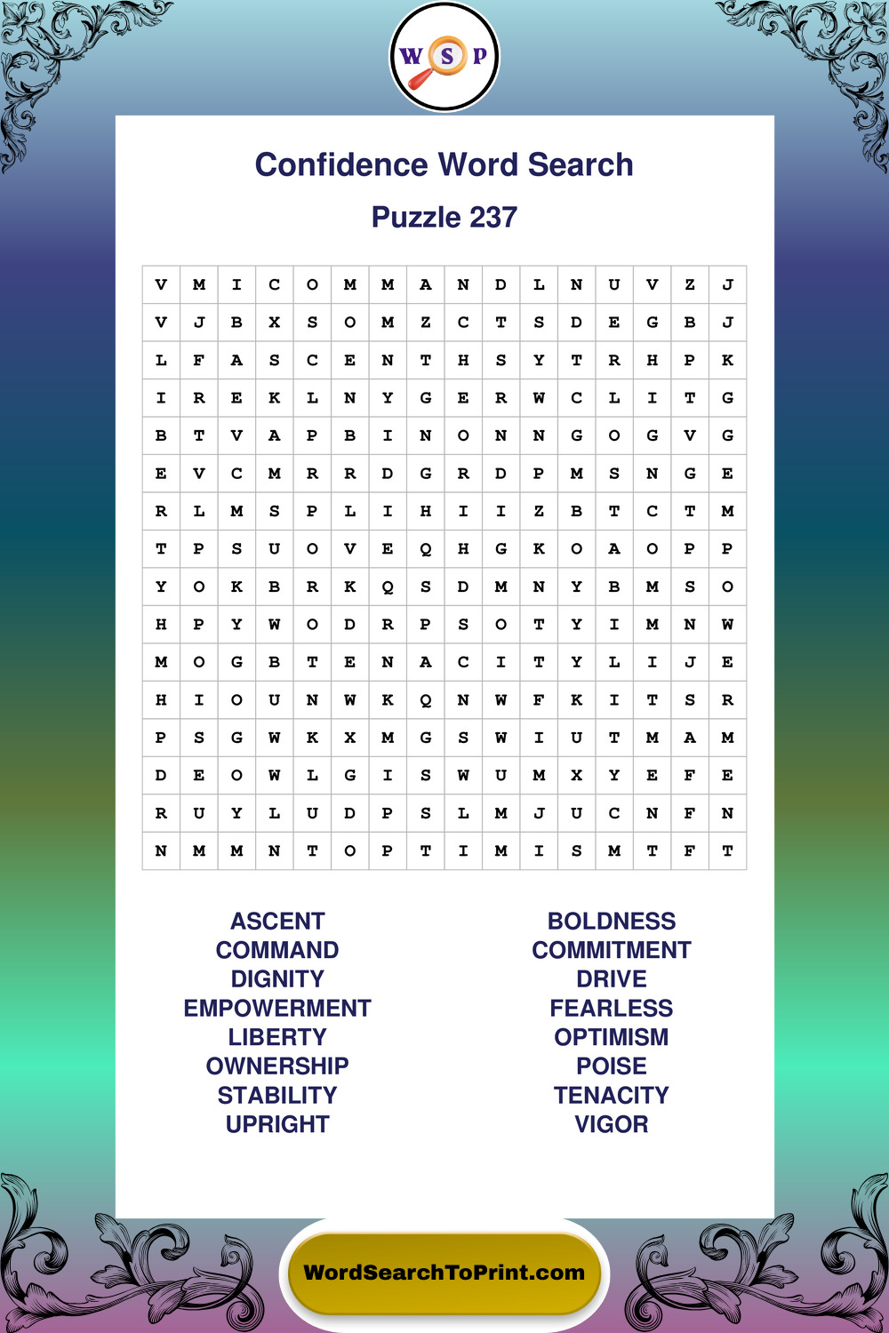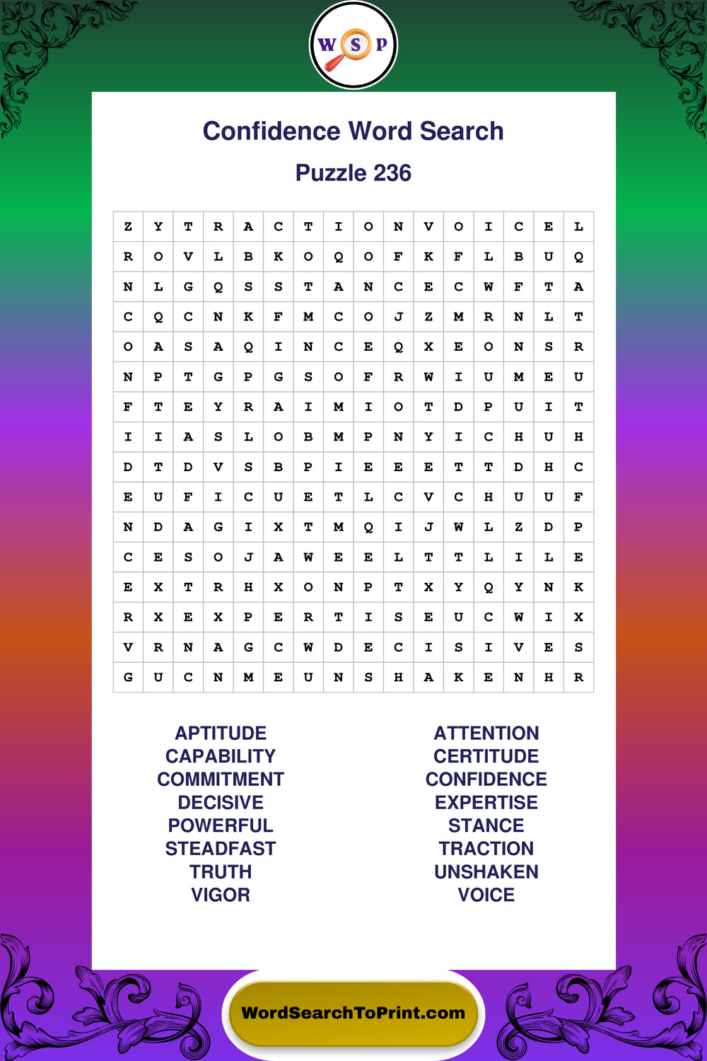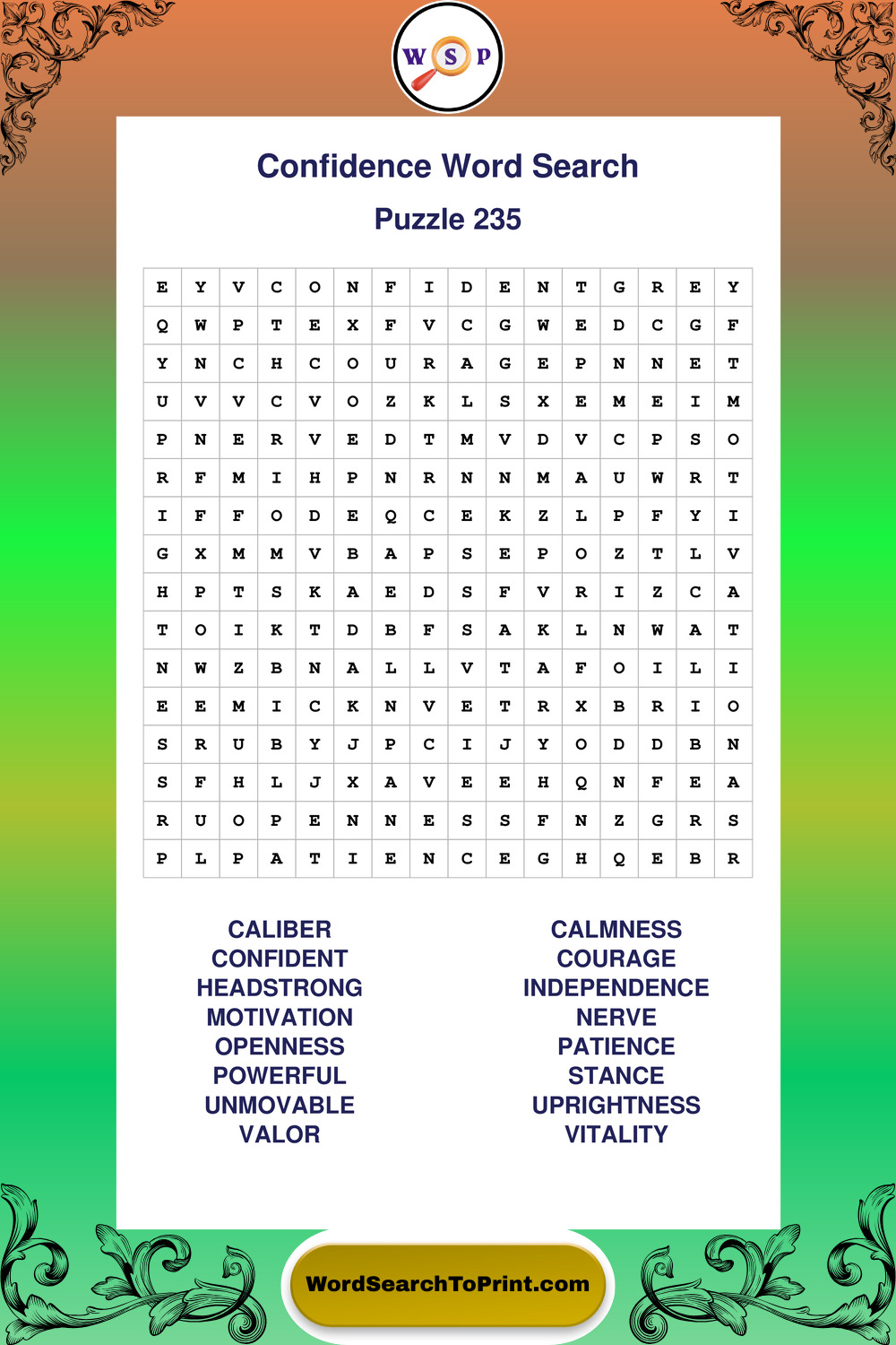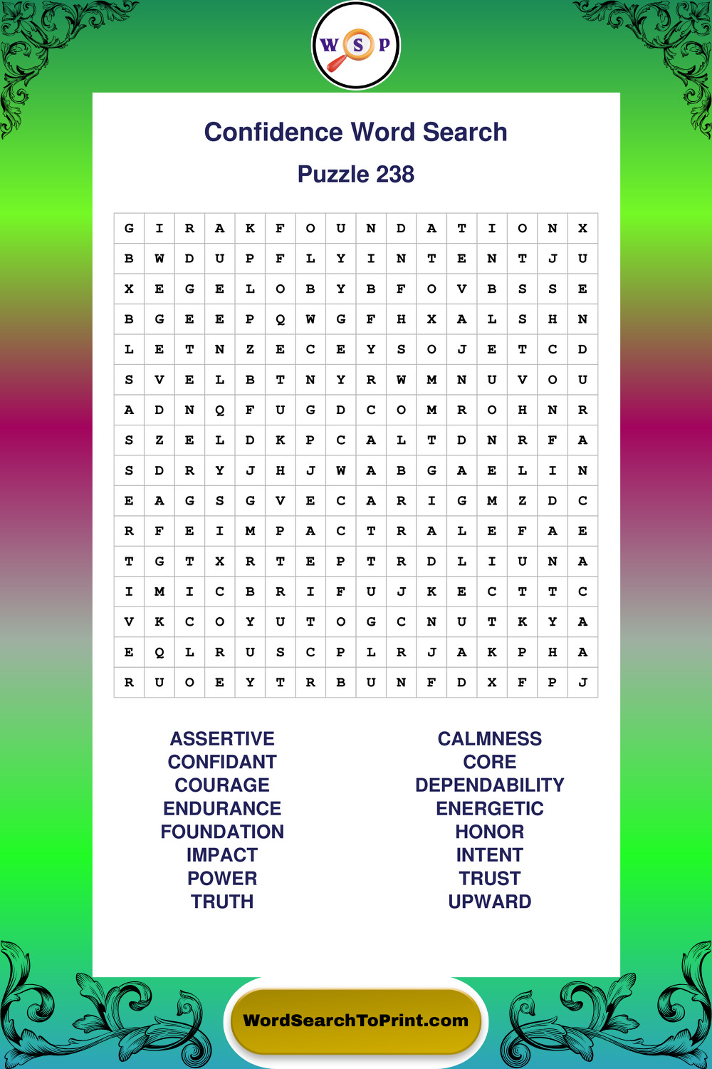 These large print Confidence wordsearches are ideal for calm focus, light mental exercise, and easy readability.
