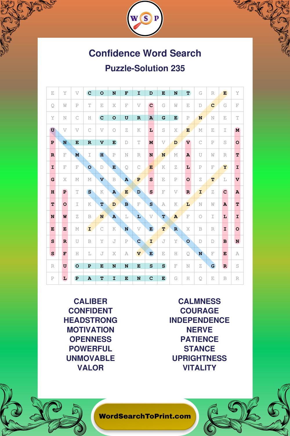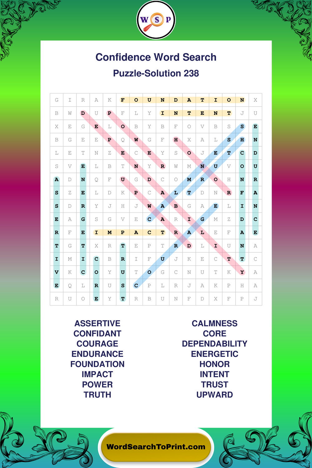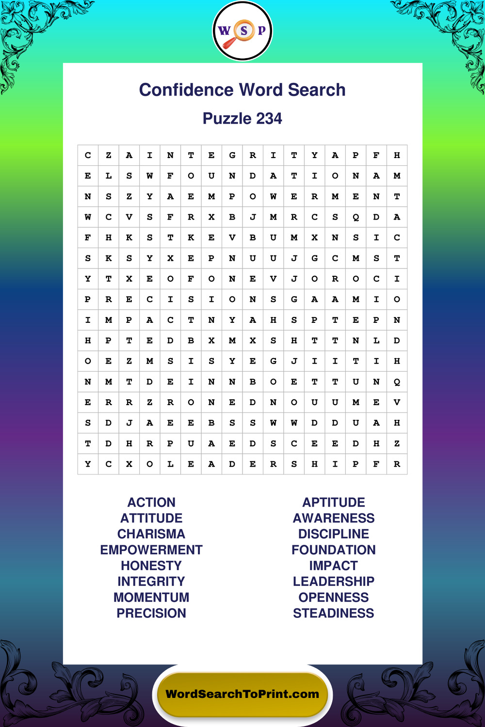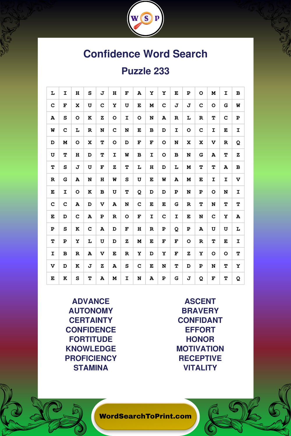 These large print Confidence wordsearches are ideal for calm focus, light mental exercise, and easy readability.