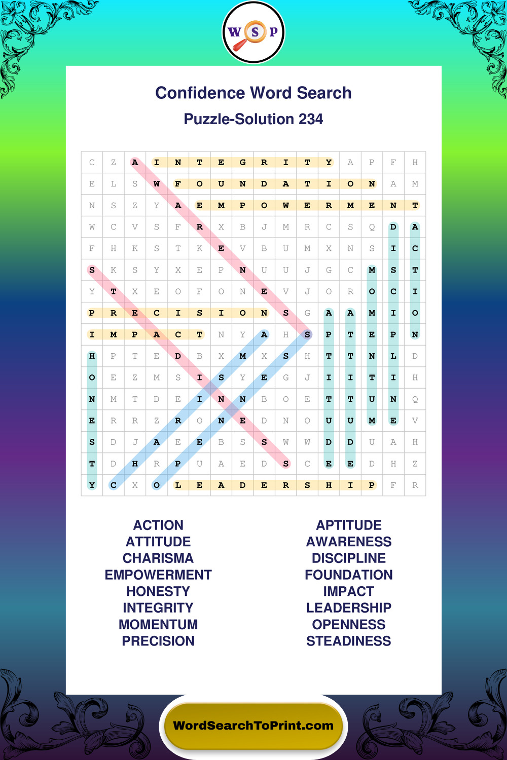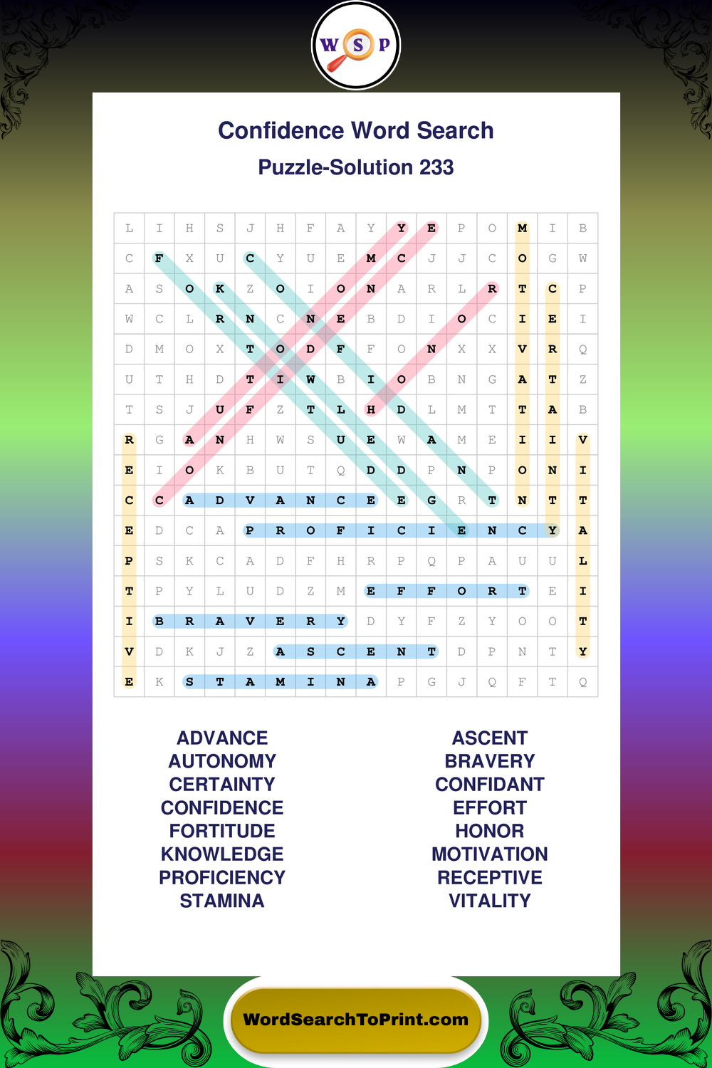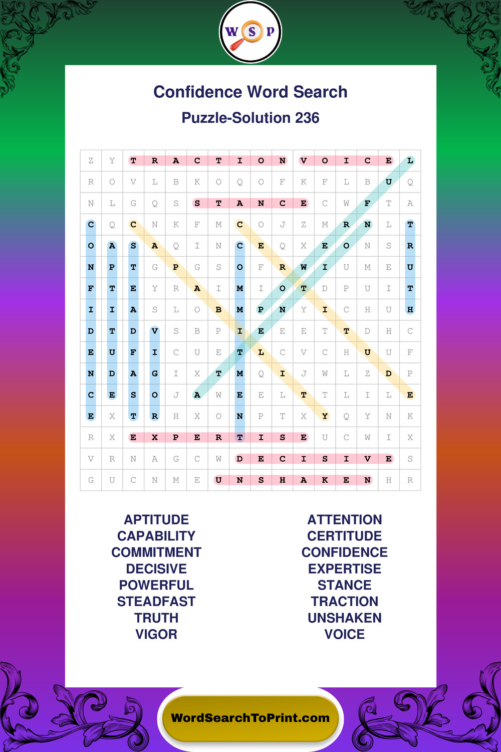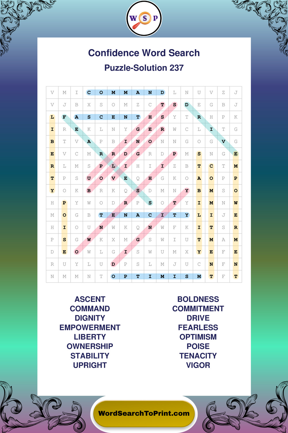 These large print Confidence wordsearches are ideal for calm focus, light mental exercise, and easy readability.