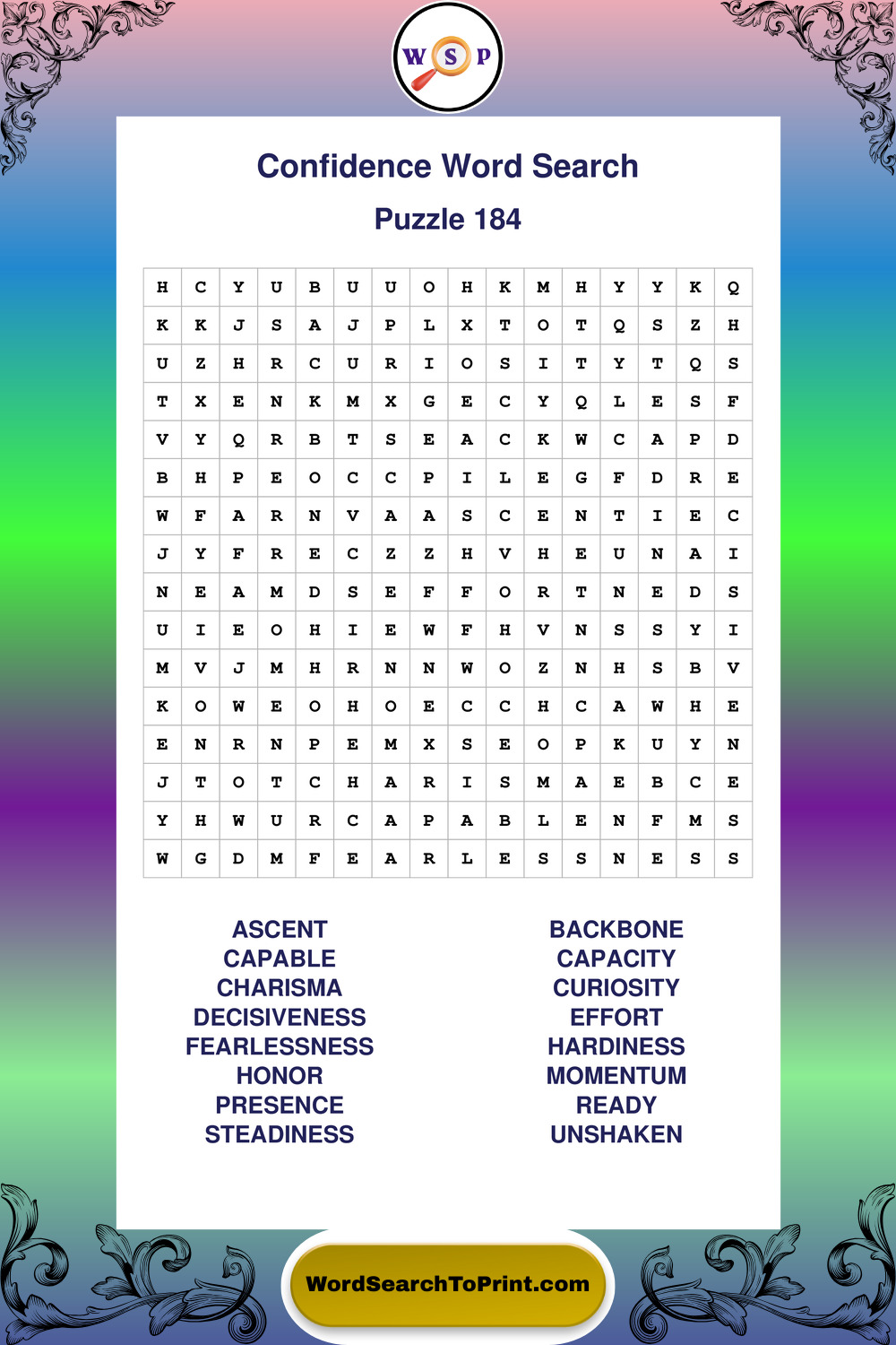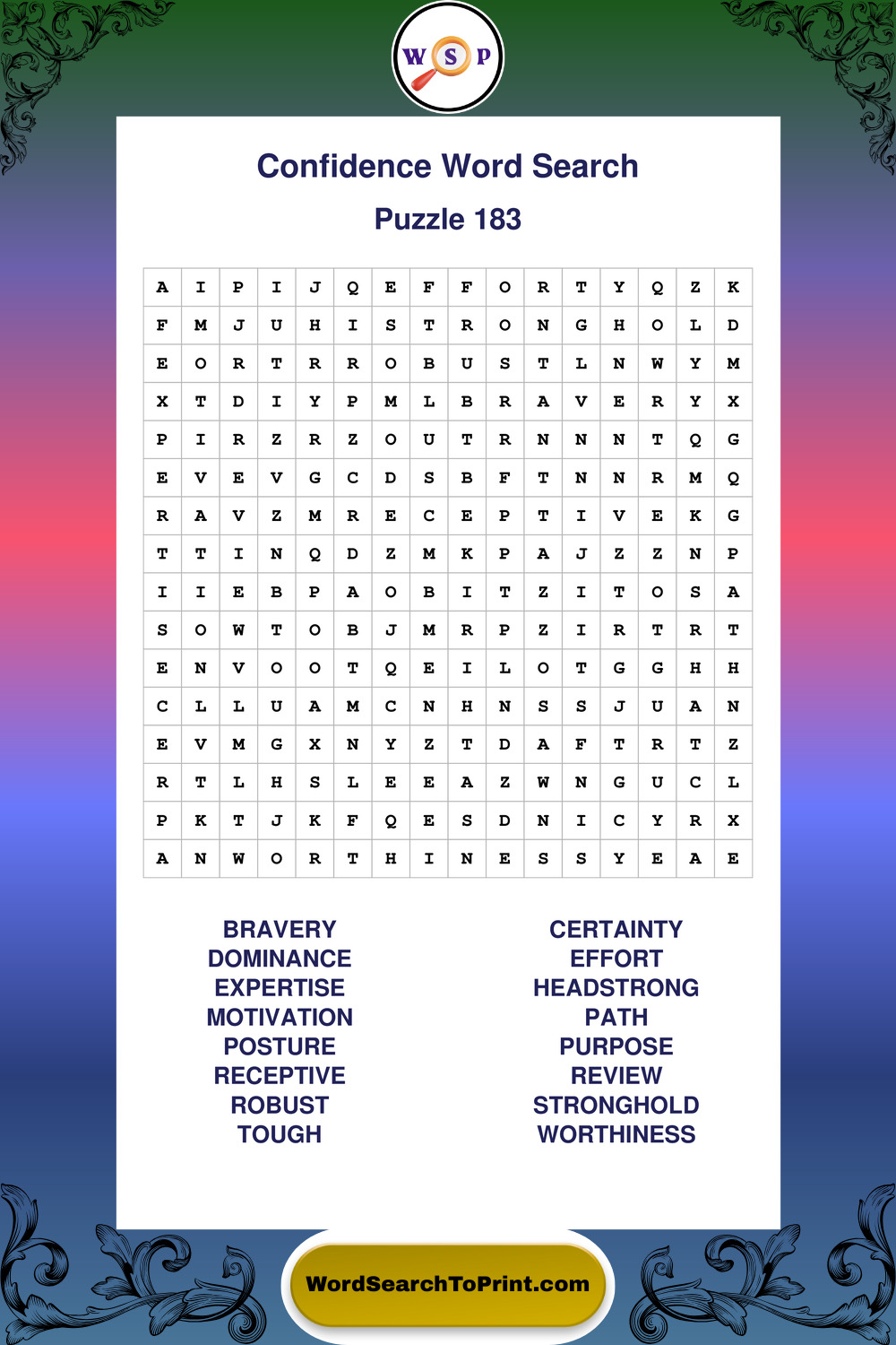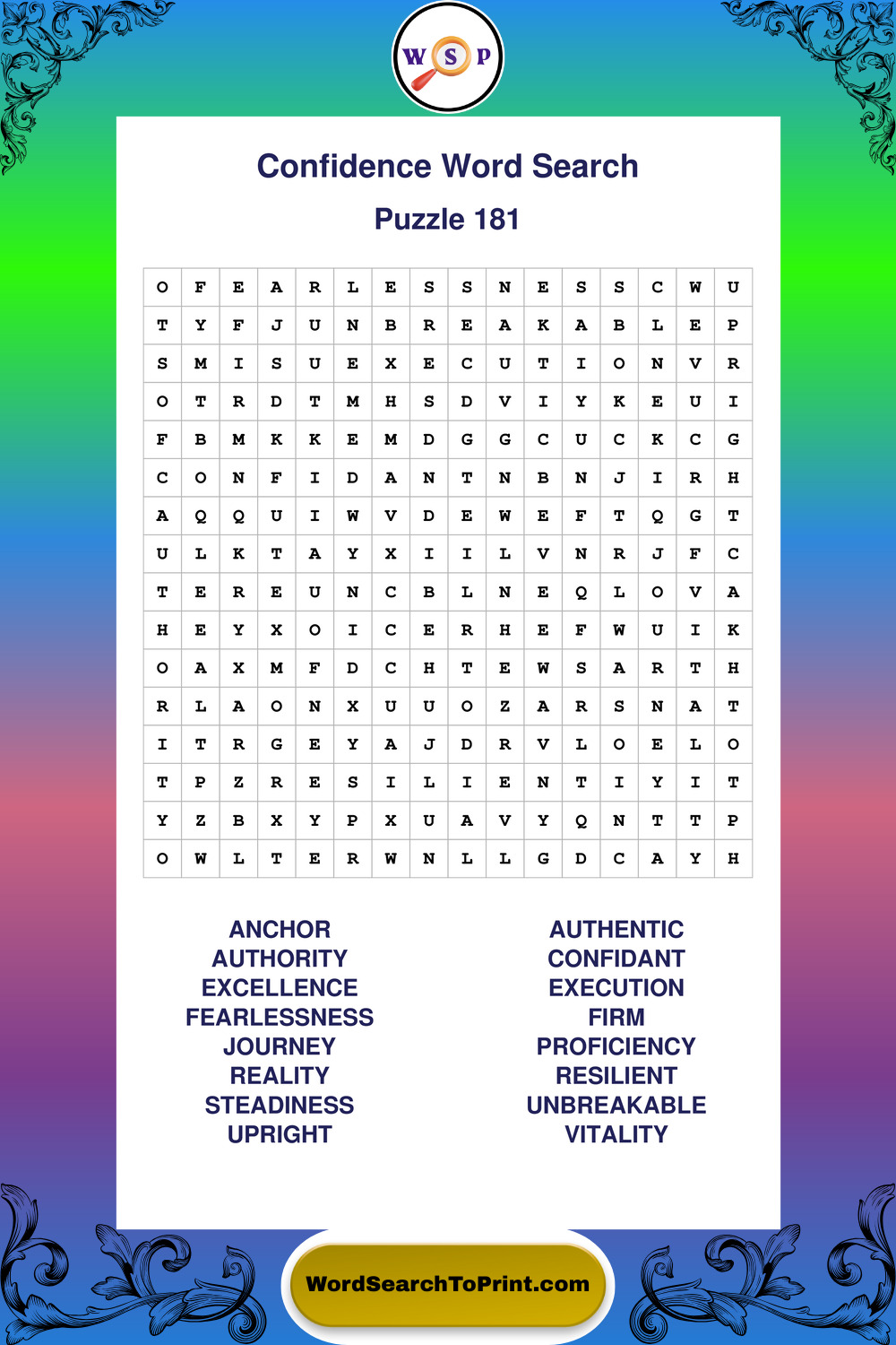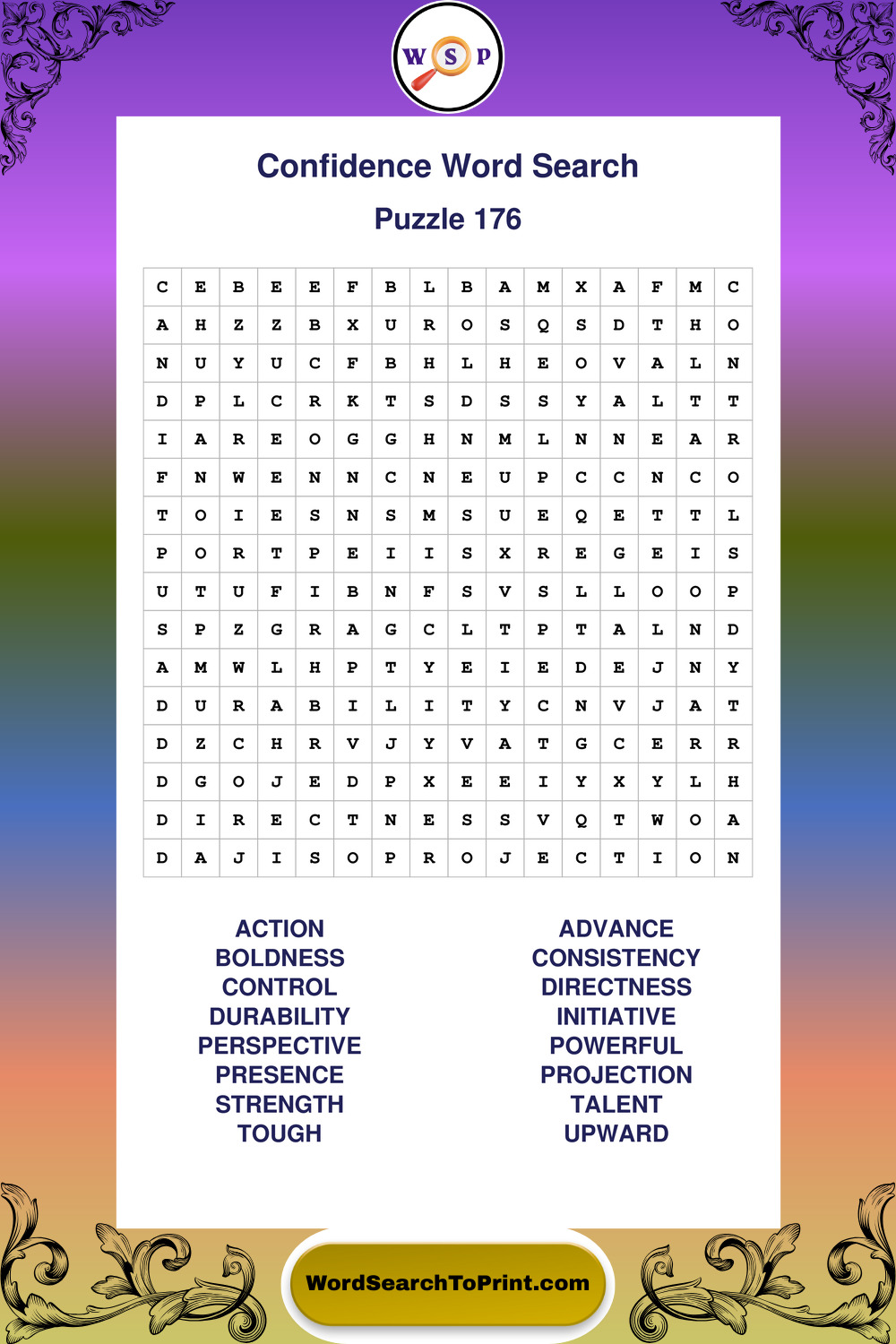 These large print Confidence wordsearches are ideal for calm focus, light mental exercise, and easy readability.
