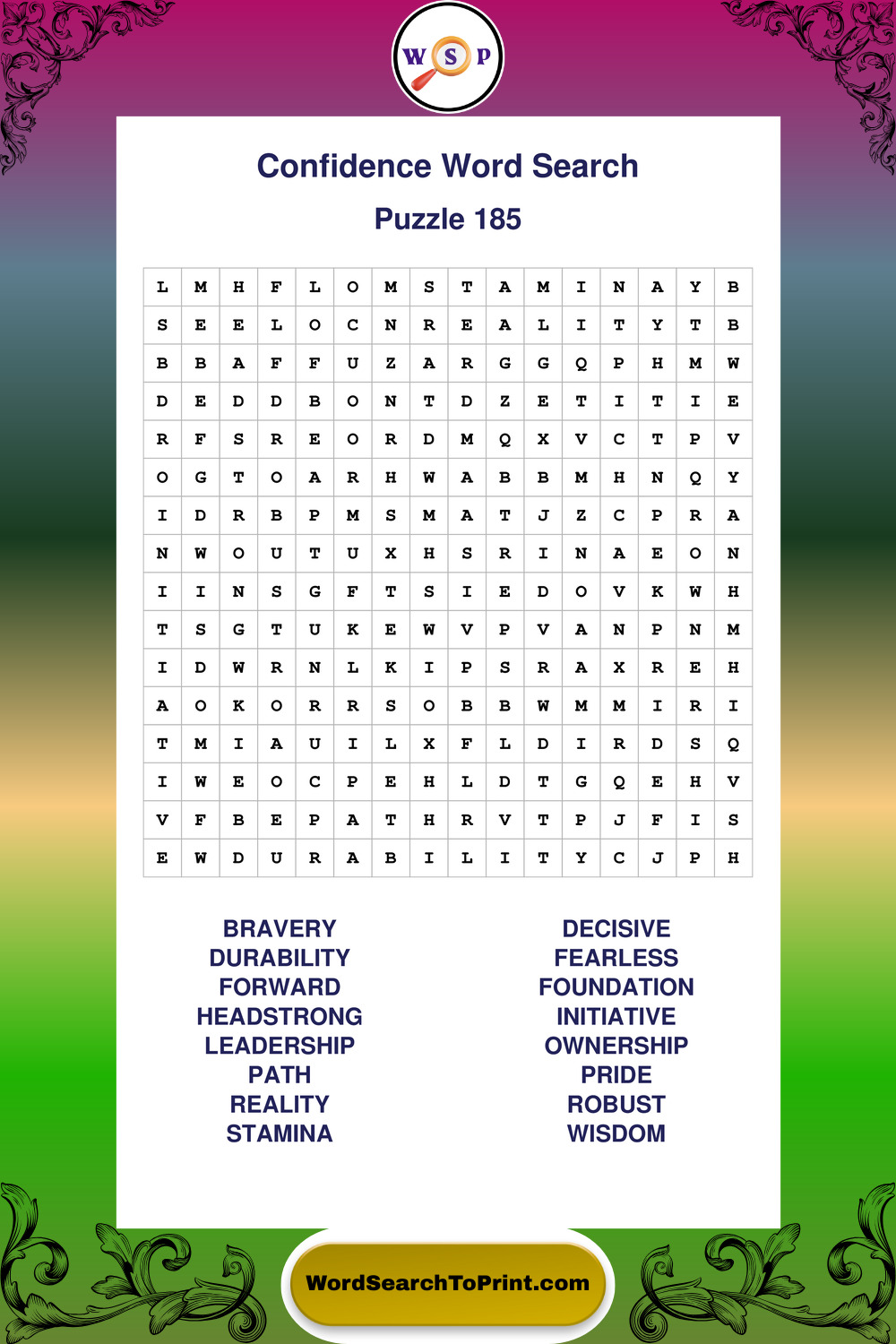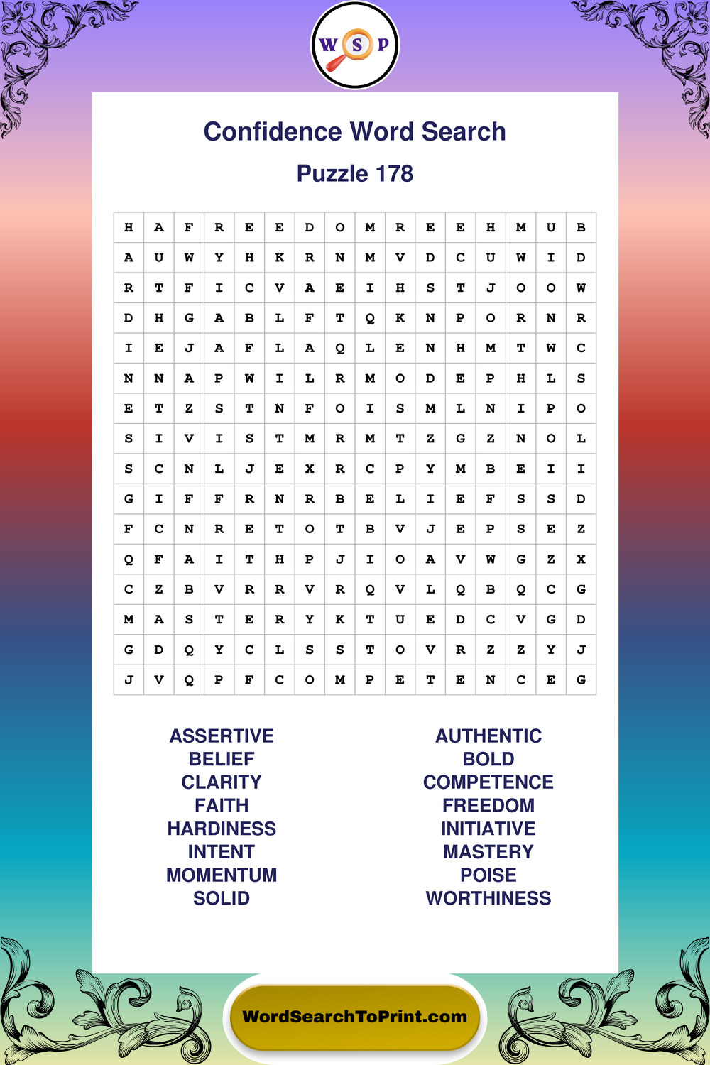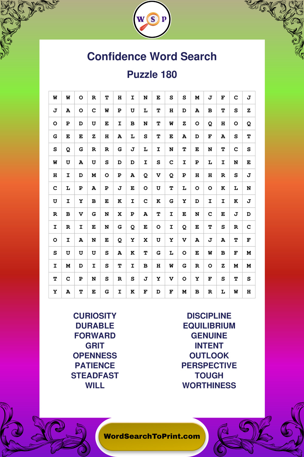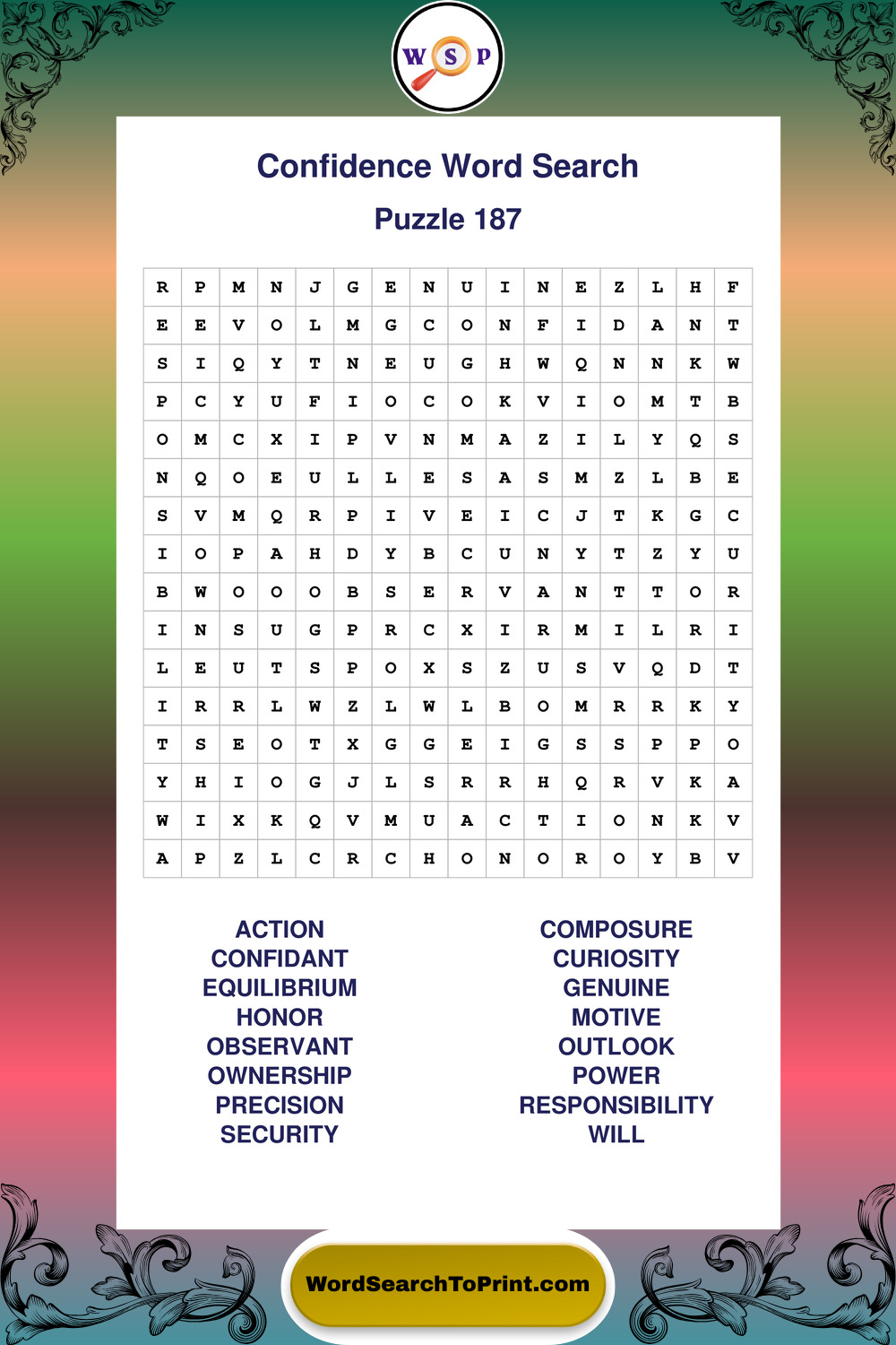 These large print Confidence wordsearches are ideal for calm focus, light mental exercise, and easy readability.